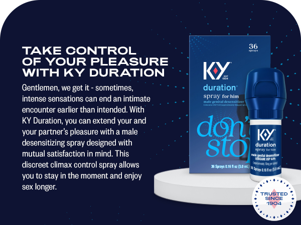- BOOSTS CONFIDENCE: Regain control of your sex life & increase sexual satisfaction for both you & your partner. Don't let fear & performance anxiety ruin those exciting romantic moments! Try KY Duration Spray & finish together, when you're both ready.