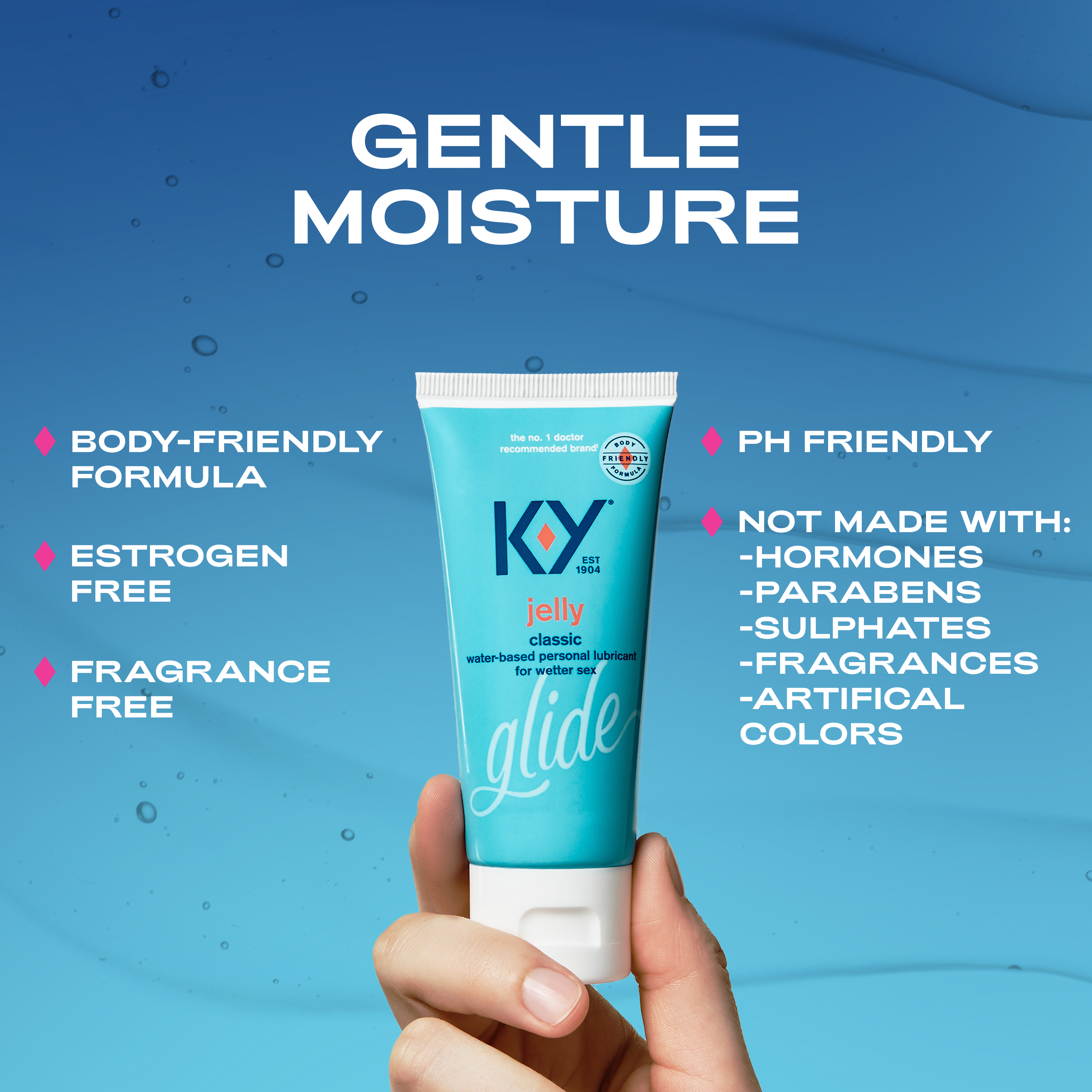 - PERSONAL LUBRICANT: Experience longer-lasting pleasure and comfort with K-Y, the leading brand in intimate lube. Our new body friendly formula provides longer* lasting pleasure that complements your natural lubrication. It’s also gentle, meaning it’s not made with sulphates, hormones, parabens, or artificial colorants or fragrances.