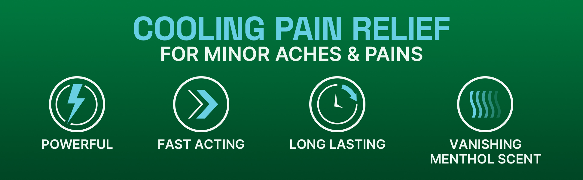 - Fast acting, cooling menthol formula delivers penetrating pain relief for minor aches and pains of muscles and joints associated with simple backache, arthritis, strains, bruises, and sprains