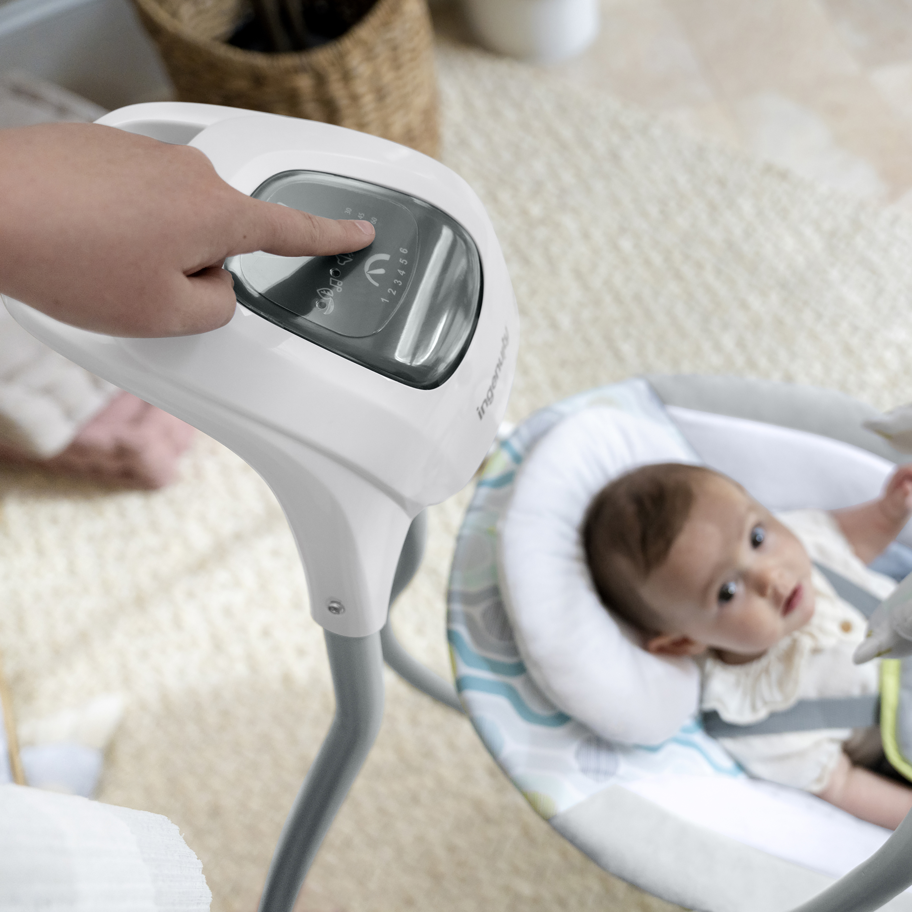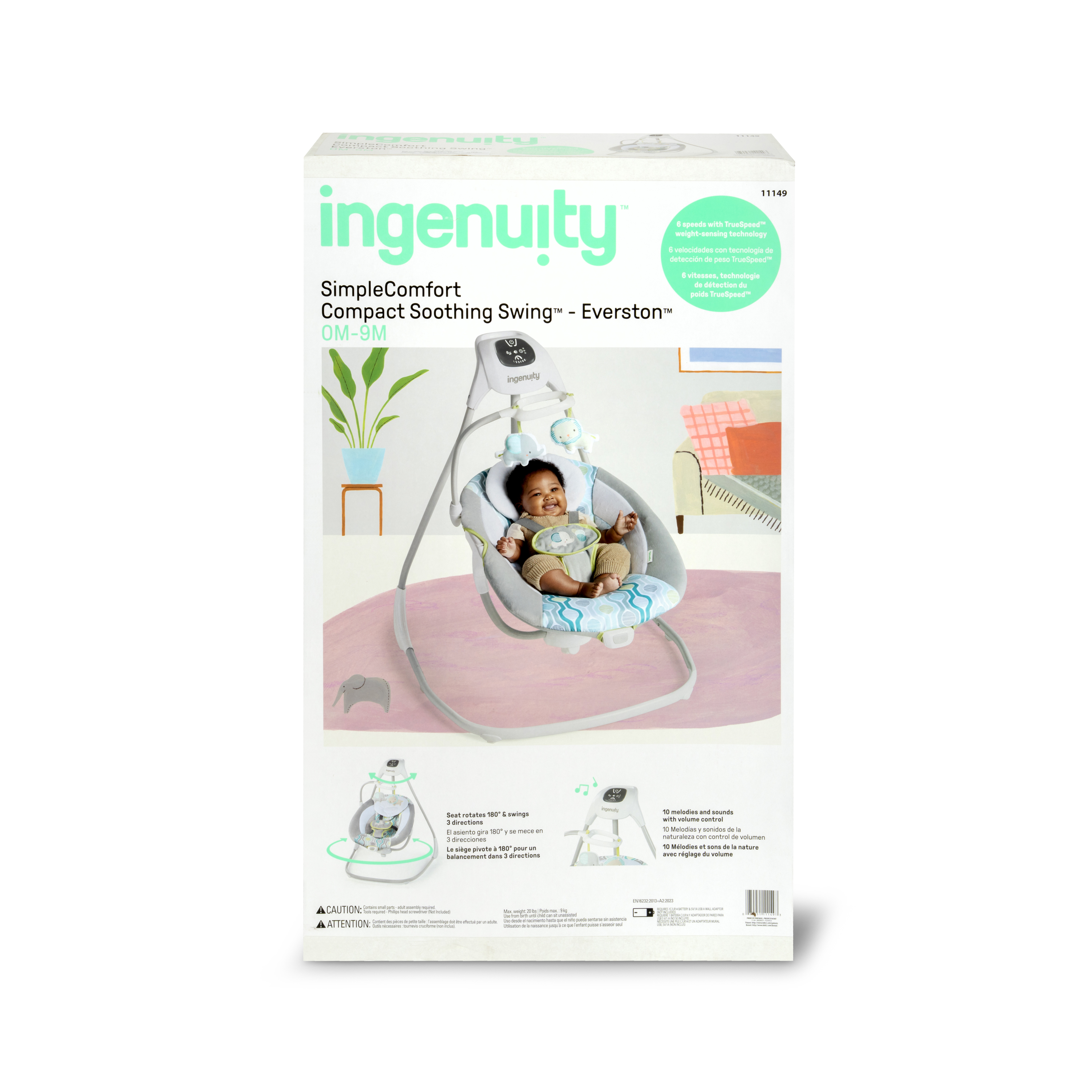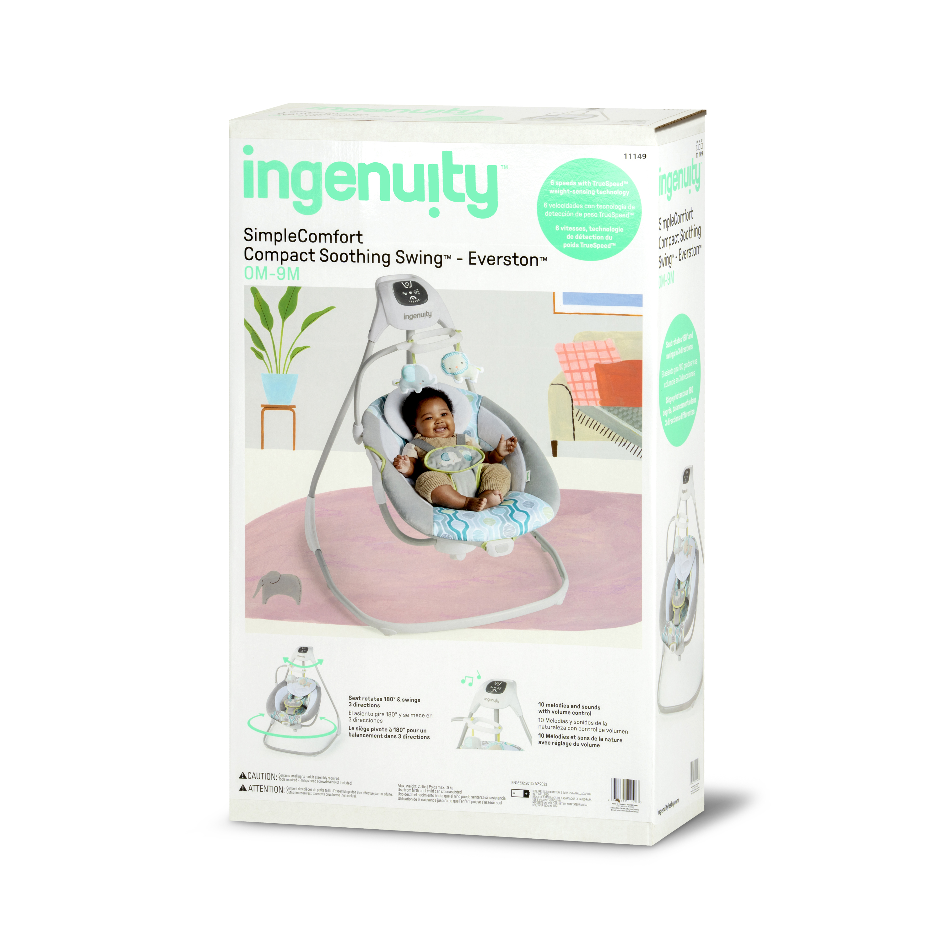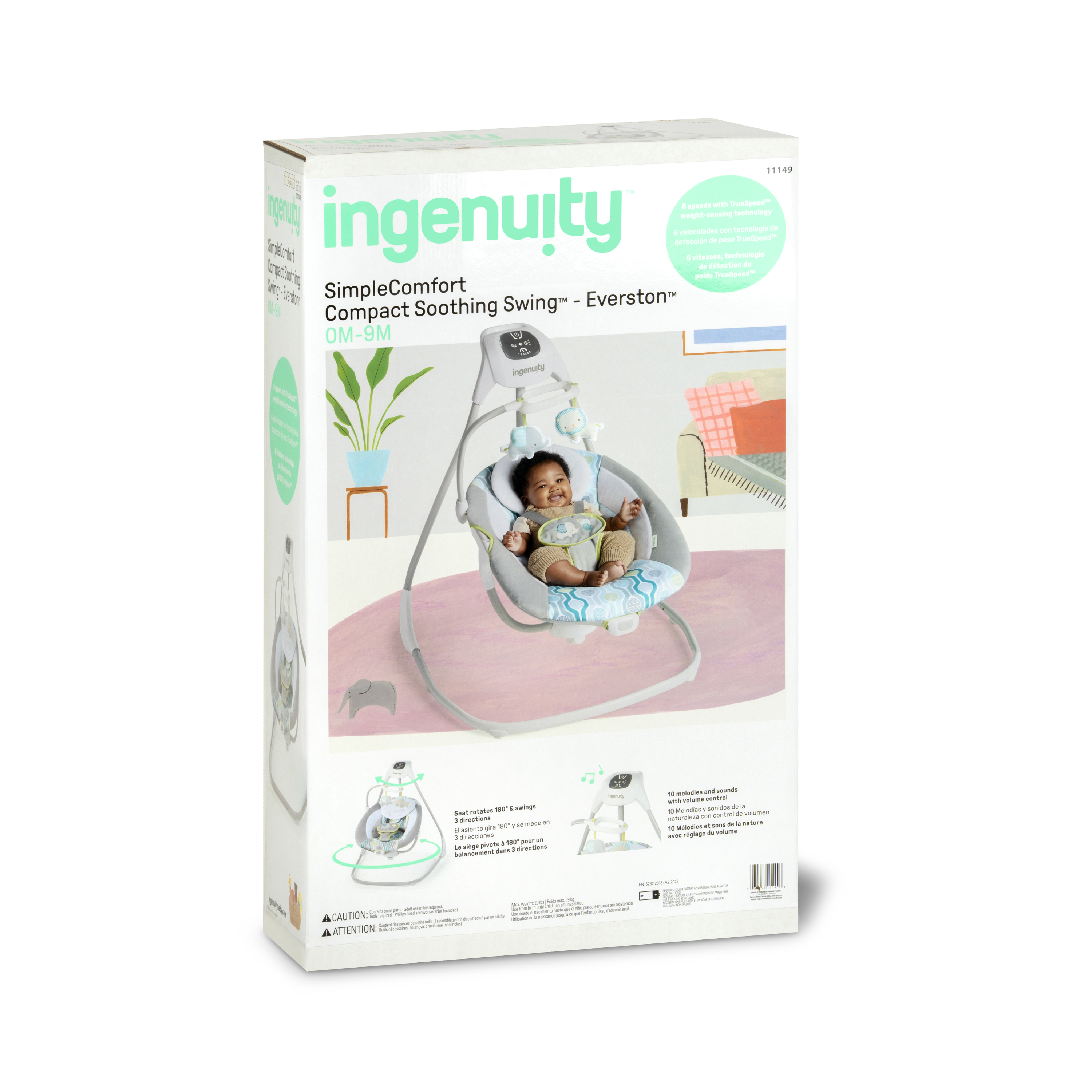 | Product Description | Ingenuity™ hat die SimpleComfort Cradling Swing™ speziell entworfen, um Eltern das Leben ein wenig zu erleichtern, ohne das Budget zu sprengen! Dieser innovative übergroße Sitz mit verstellbarer Rückenlehne lässt sich um 180 Grad drehen, sodass Eltern Ihr Kind besser im Blick behalten. Das Baby kann in 3 verschiedene Richtungen schaukeln! Der superleichte Rahmen hat Räder und einen einfach zu ziehenden Griff, mithilfe dessen sich diese tragbare Babyschaukel in Normalgröße bequem von Raum zu Raum transportieren lässt. Dank des mitgelieferten Netzteils muss nie wieder Geld für Batterien ausgegeben werden. Über das GentleTouch™-Bedienfeld können Sie das Erlebnis für Ihr Baby individuell anpassen. Mit beruhigenden Vibrationen, 8 Melodien, 3 Naturgeräuschen und Rauschgeräuschen. Der Schaukel-Timer kann auf 30, 45 und 60 Minuten eingestellt werden, sodass Ihnen ein paar Momente vergönnt sind, in denen Sie zur Abwechslung einmal beide Hände frei haben. Die Truespeed™-Technologie sorgt für 6 konstante Schaukelgeschwindigkeiten, auch dann, wenn das Baby wächst. Dank der WhisperQuiet™-Technologie kann das Baby ohne störende Geräusche schaukeln. Das Mobile ist mit zwei niedlichen 2 Plüschfiguren dekoriert, mit denen das Baby interagieren kann, während es weich und bequem gebettet ist. Wenn das Sitzpolster ein wenig schmutzig geworden ist, kann es einfach entfernt und in der Waschmaschine gewaschen werden. Das geschmackvolle Design passt zu jeder Wohnungseinrichtung und eignet sich perfekt für Jungen und Mädchen. |