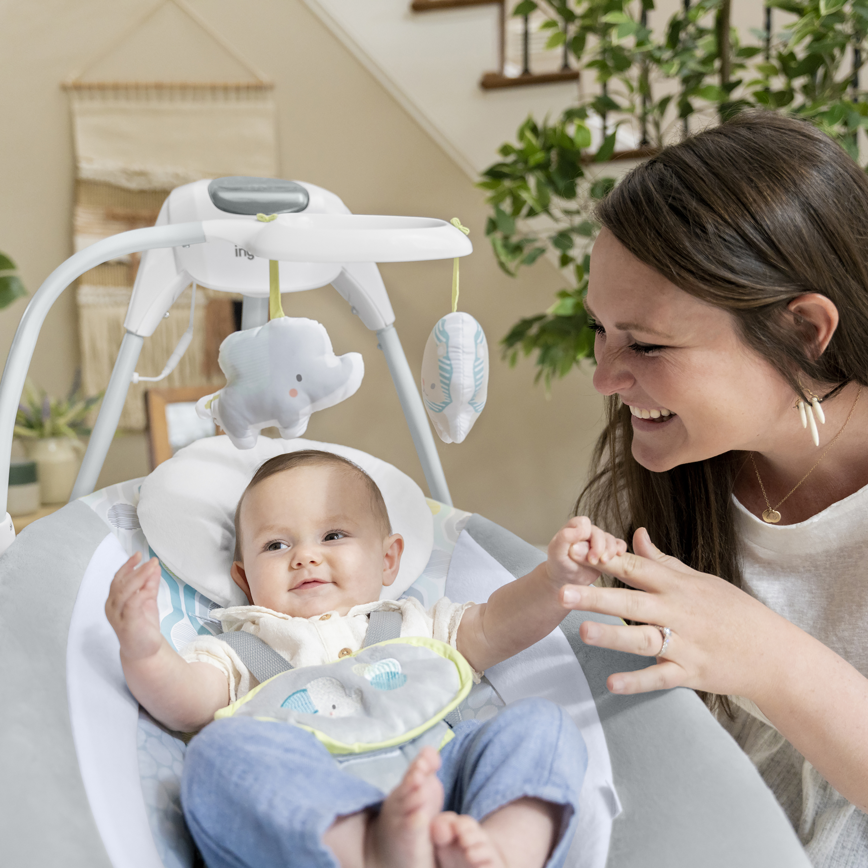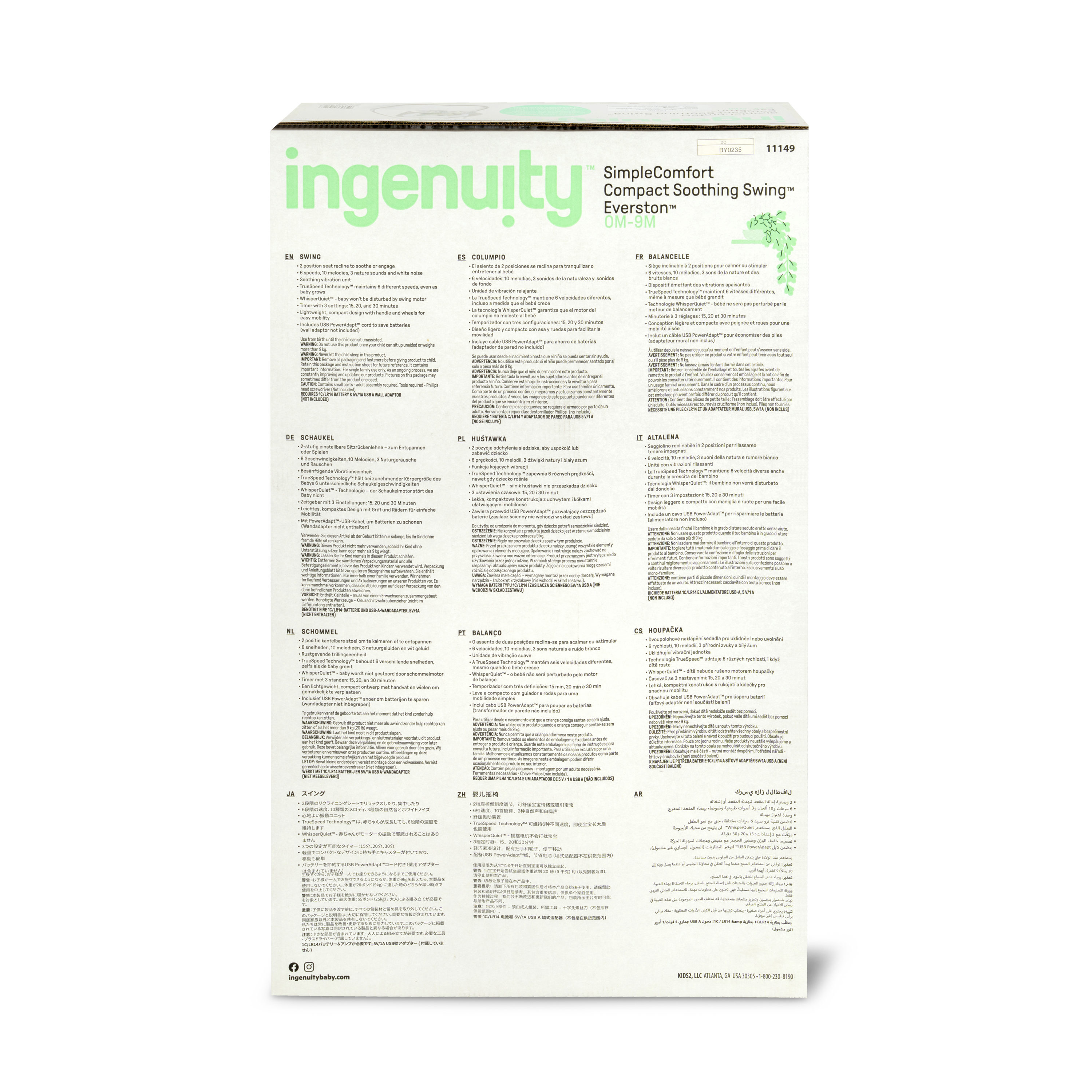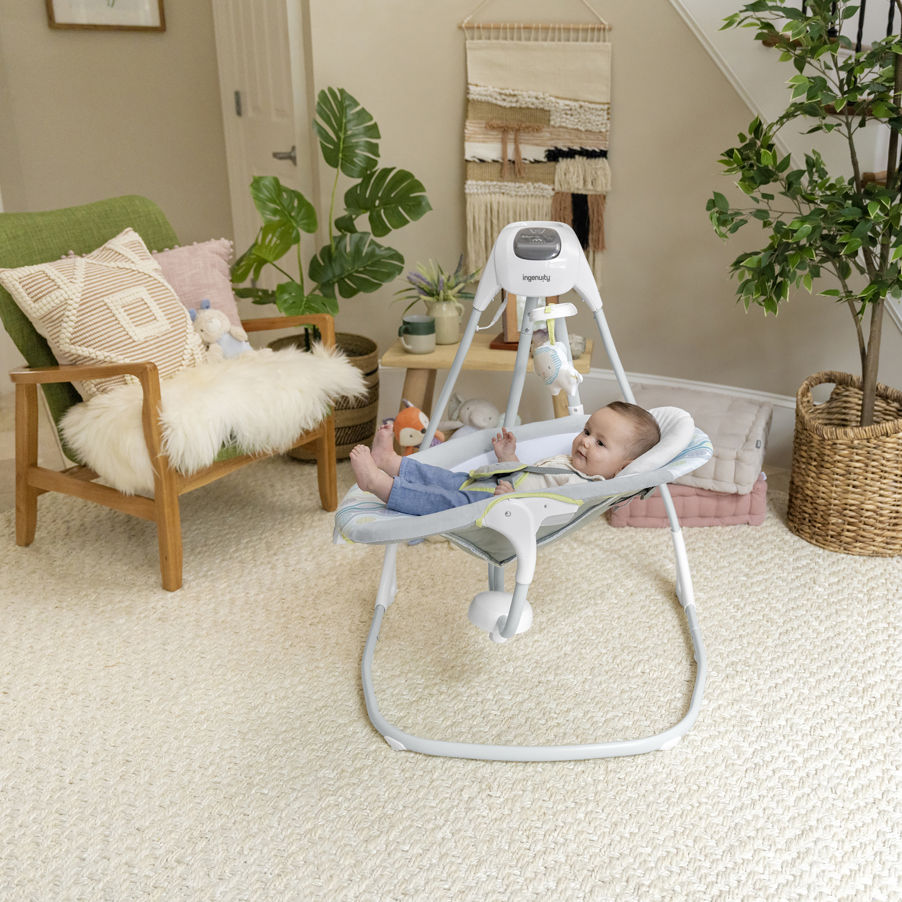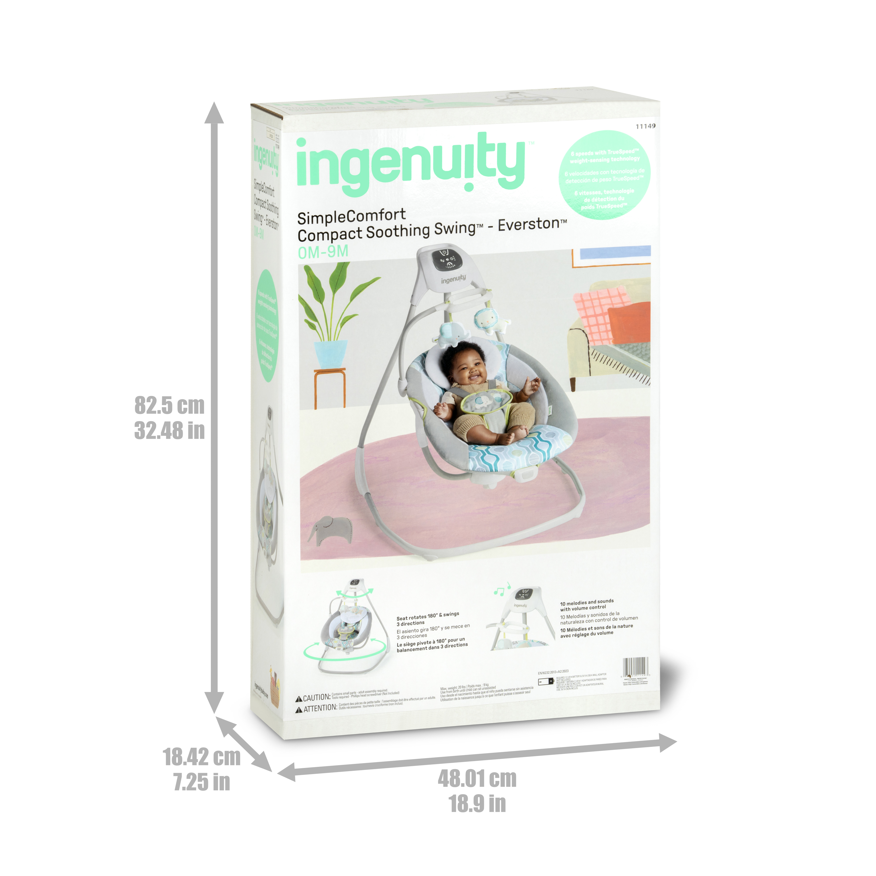 | Product Description | Ingenuity™ hat die SimpleComfort Cradling Swing™ speziell entworfen, um Eltern das Leben ein wenig zu erleichtern, ohne das Budget zu sprengen! Dieser innovative übergroße Sitz mit verstellbarer Rückenlehne lässt sich um 180 Grad drehen, sodass Eltern Ihr Kind besser im Blick behalten. Das Baby kann in 3 verschiedene Richtungen schaukeln! Der superleichte Rahmen hat Räder und einen einfach zu ziehenden Griff, mithilfe dessen sich diese tragbare Babyschaukel in Normalgröße bequem von Raum zu Raum transportieren lässt. Dank des mitgelieferten Netzteils muss nie wieder Geld für Batterien ausgegeben werden. Über das GentleTouch™-Bedienfeld können Sie das Erlebnis für Ihr Baby individuell anpassen. Mit beruhigenden Vibrationen, 8 Melodien, 3 Naturgeräuschen und Rauschgeräuschen. Der Schaukel-Timer kann auf 30, 45 und 60 Minuten eingestellt werden, sodass Ihnen ein paar Momente vergönnt sind, in denen Sie zur Abwechslung einmal beide Hände frei haben. Die Truespeed™-Technologie sorgt für 6 konstante Schaukelgeschwindigkeiten, auch dann, wenn das Baby wächst. Dank der WhisperQuiet™-Technologie kann das Baby ohne störende Geräusche schaukeln. Das Mobile ist mit zwei niedlichen 2 Plüschfiguren dekoriert, mit denen das Baby interagieren kann, während es weich und bequem gebettet ist. Wenn das Sitzpolster ein wenig schmutzig geworden ist, kann es einfach entfernt und in der Waschmaschine gewaschen werden. Das geschmackvolle Design passt zu jeder Wohnungseinrichtung und eignet sich perfekt für Jungen und Mädchen. |
