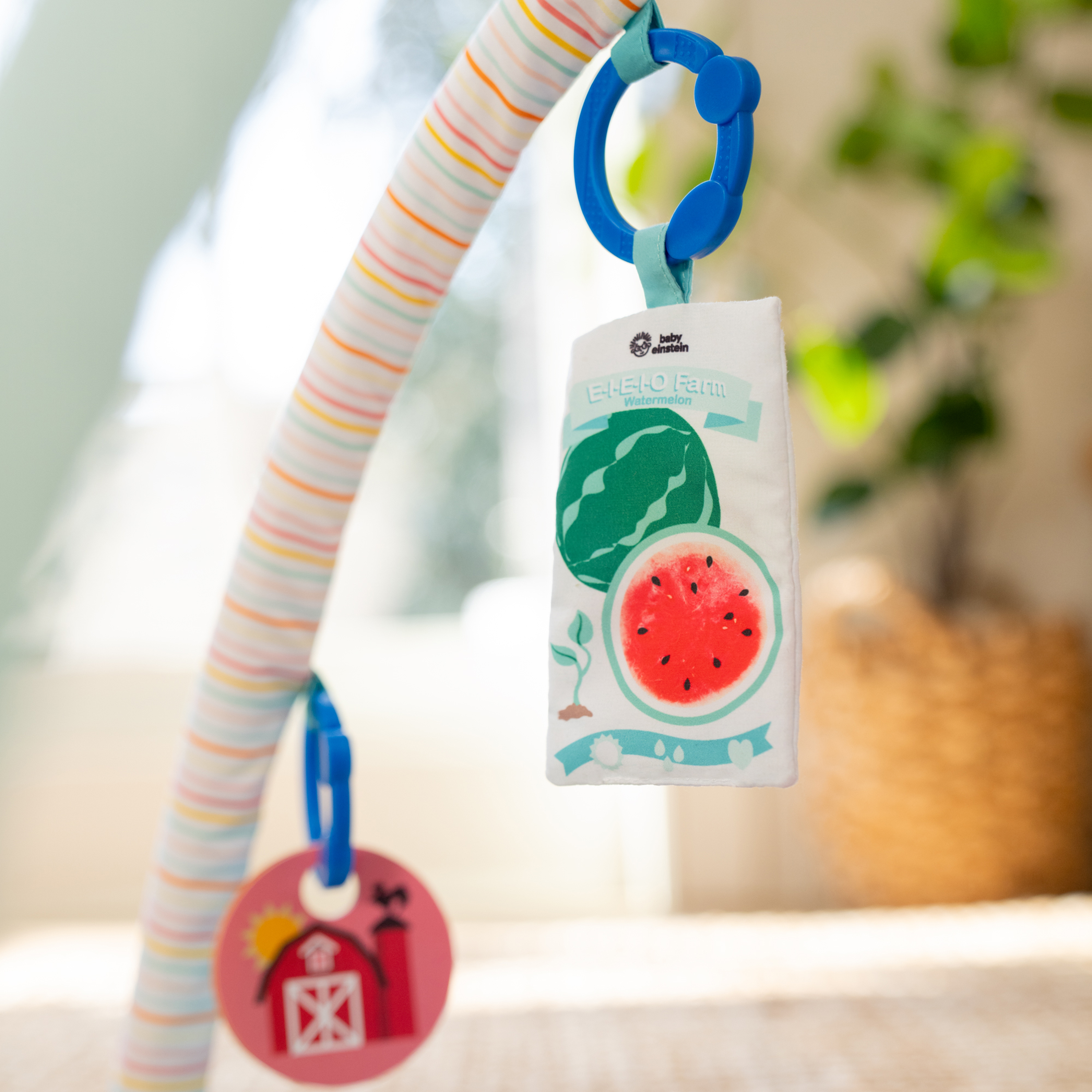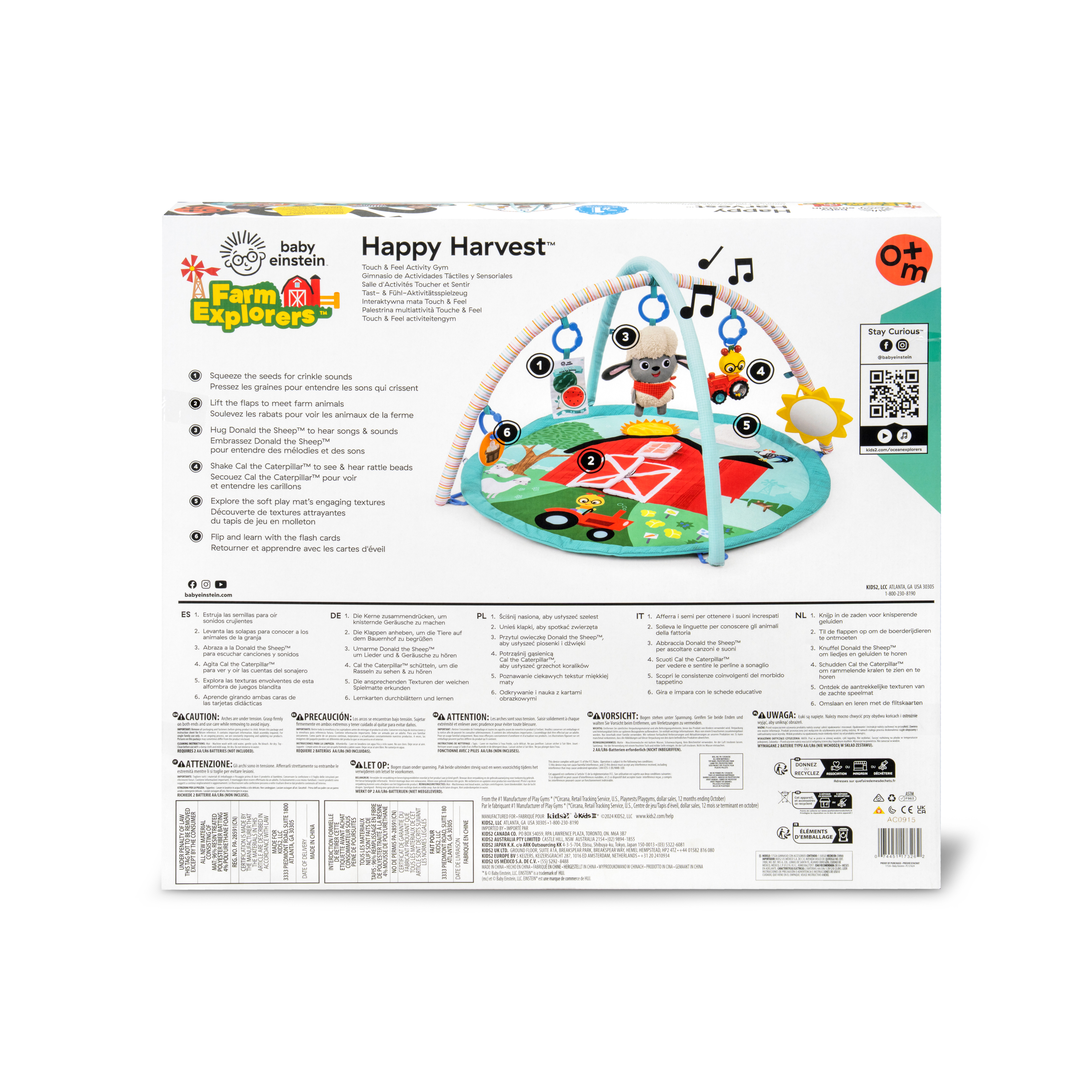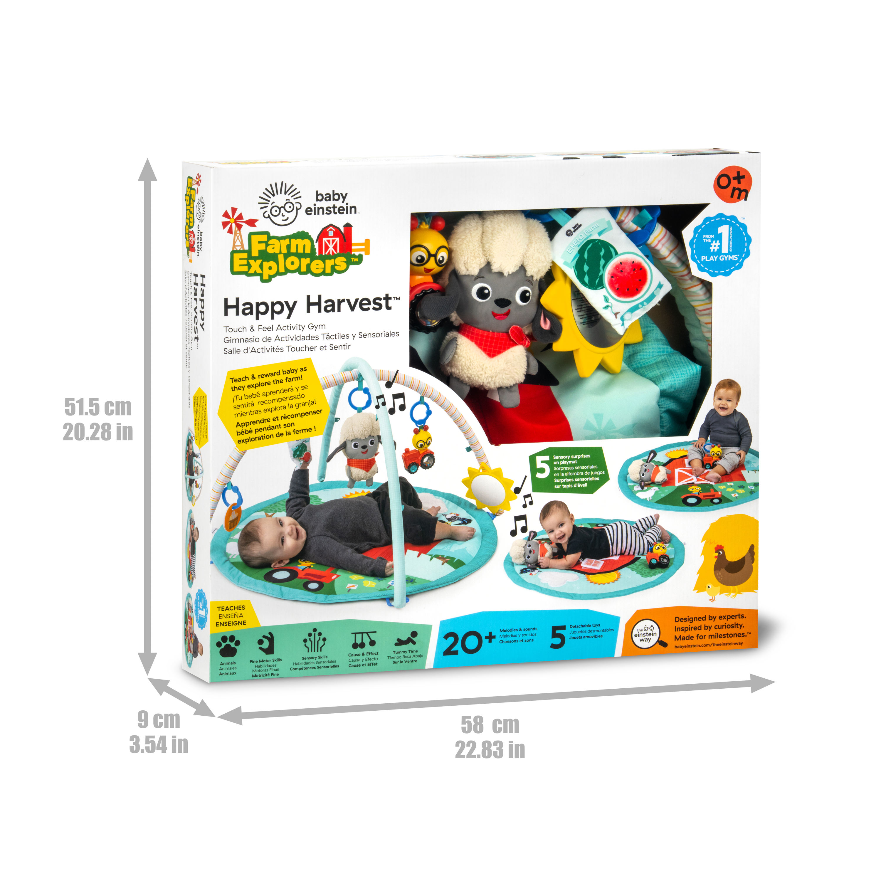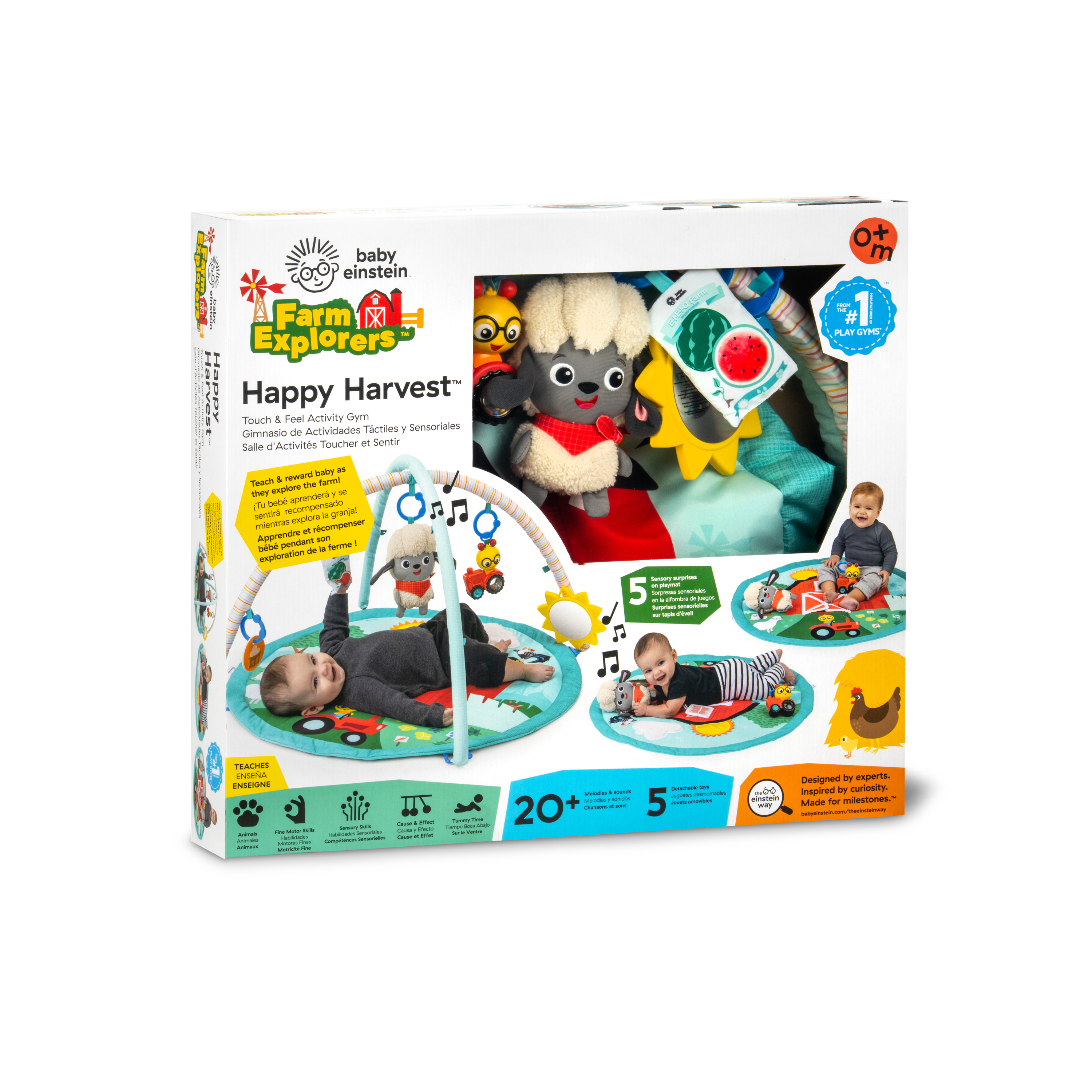 - Das Baby Einstein Farm Explorer Happy Harvest Touch & Feel Aktivitätsspielzeug bietet drei Spielmöglichkeiten und einzigartige sensorische Funktionen, die die multisensorische Entdeckung und die Entwicklung motorischer Fähigkeiten fördern.
