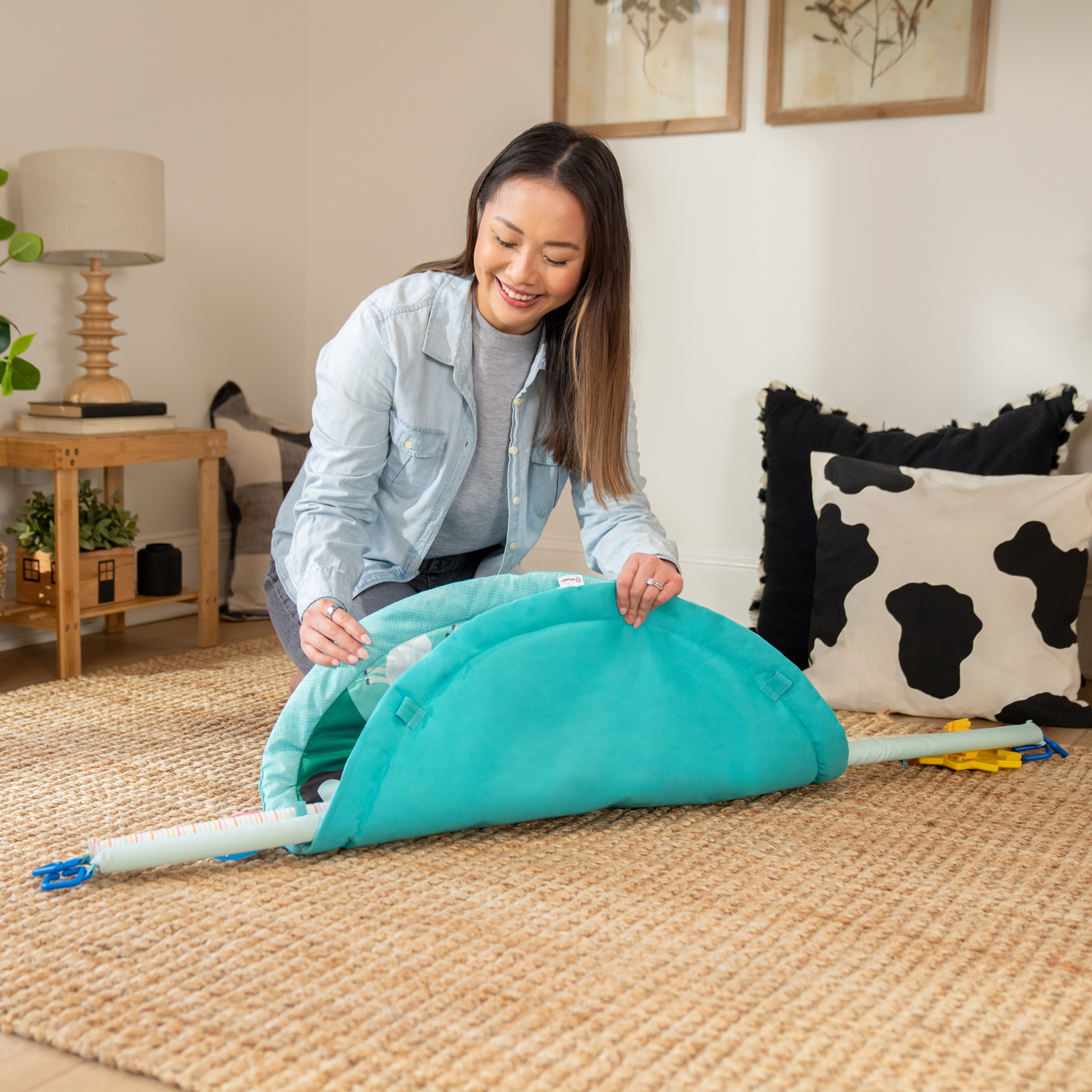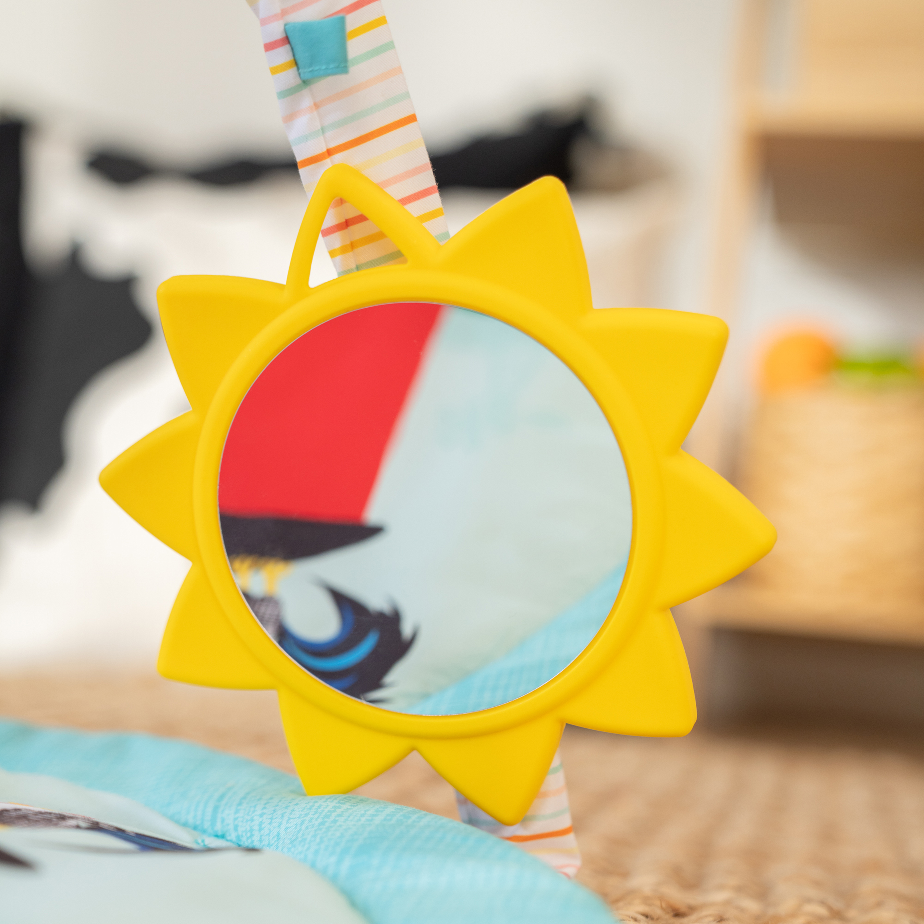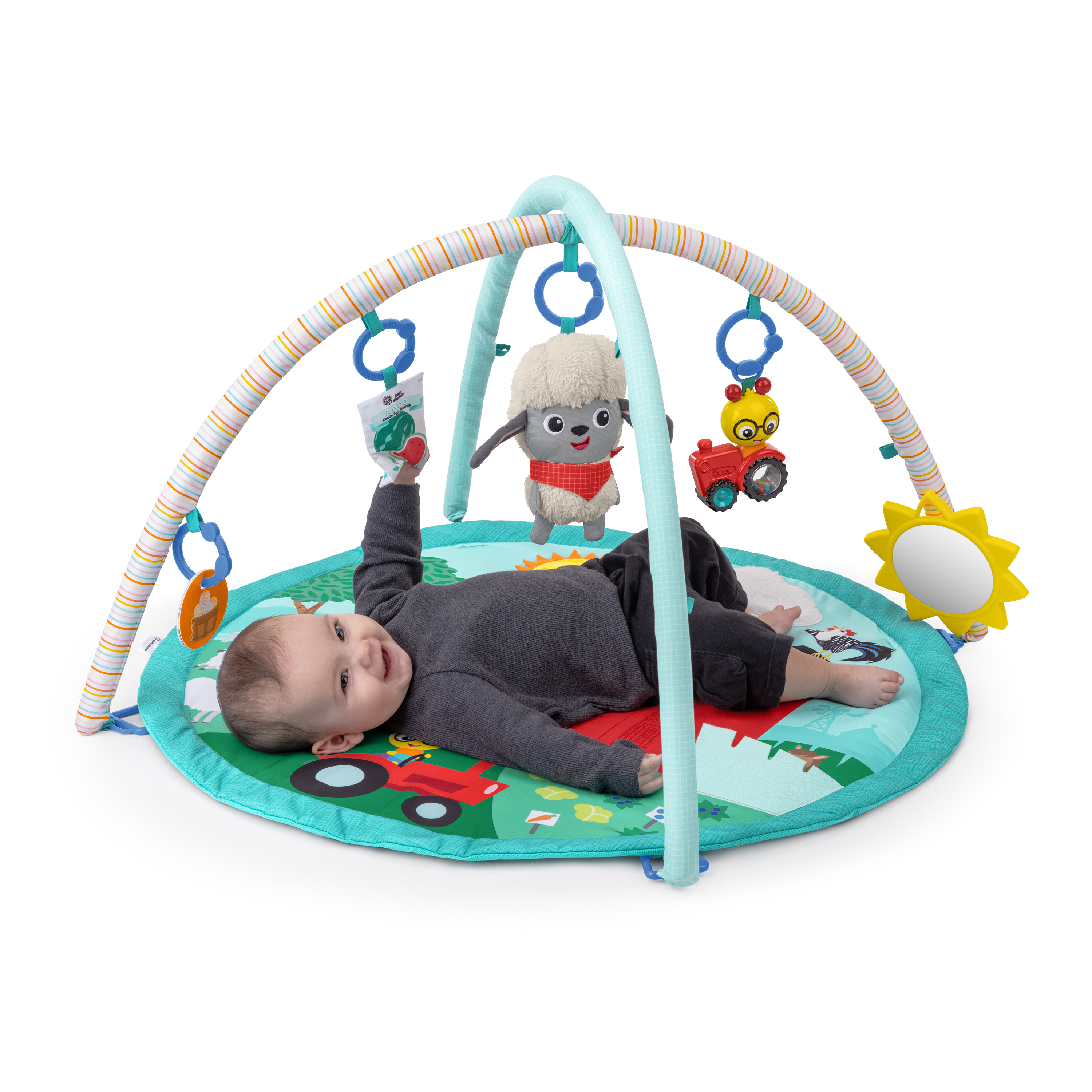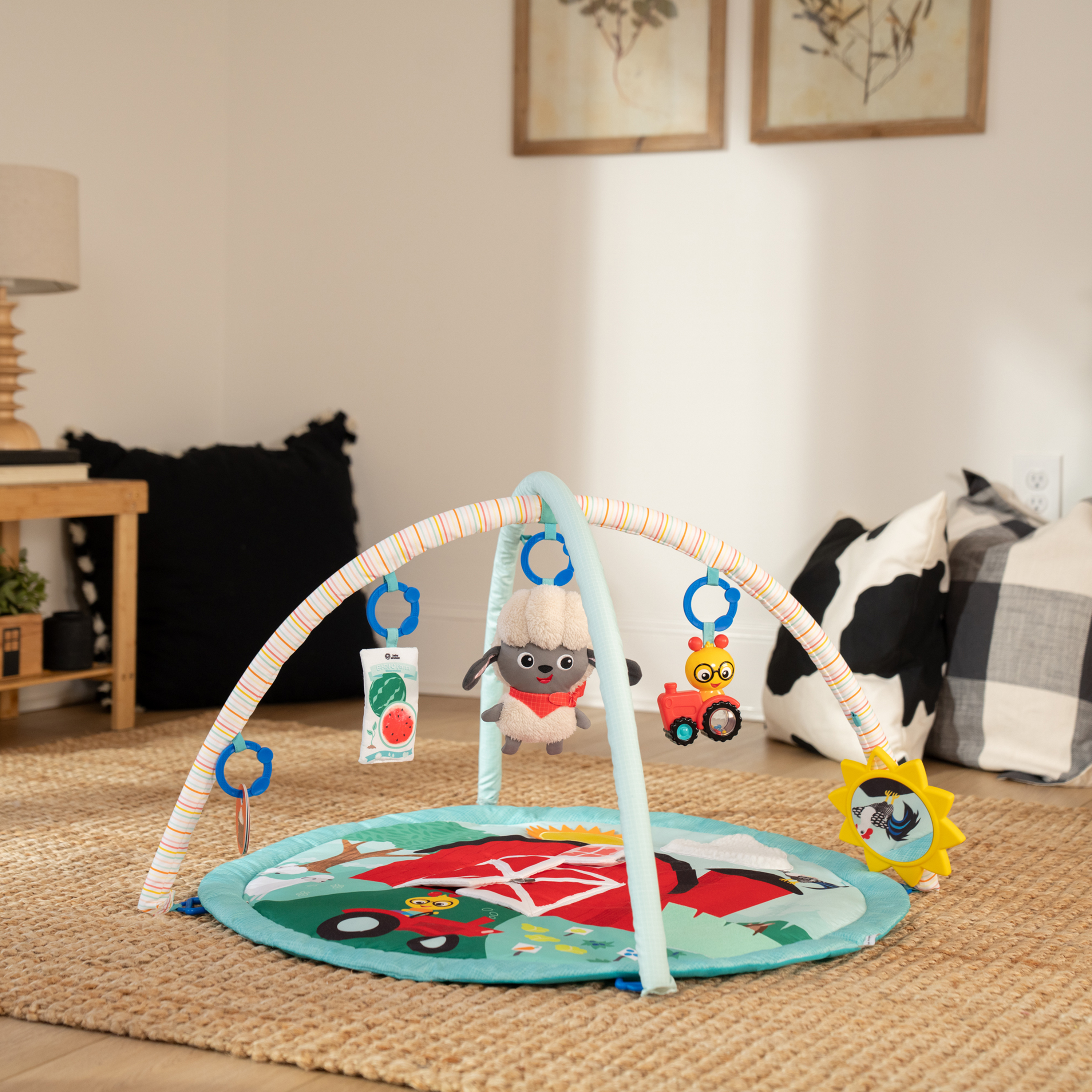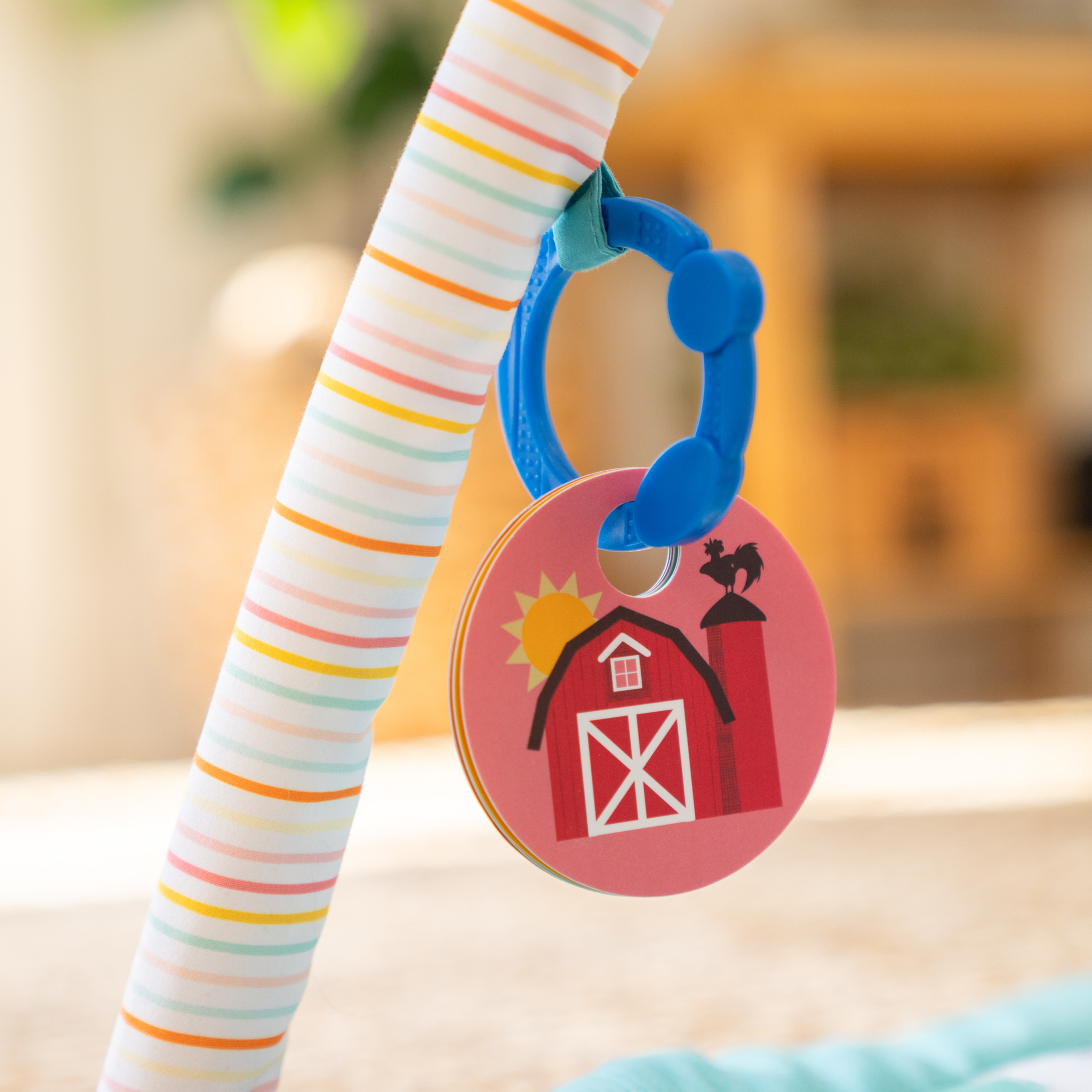- Ideal für die Bauchlage, zum Spielen und Sitzen; die weiche, bequeme Matte lässt sich leicht zusammenfalten und verfügt über eine strukturierte Oberfläche mit Sonne, Wolken, einem Pferd, das sich hinter dem Gras versteckt, und aufklappbaren Scheunentoren.