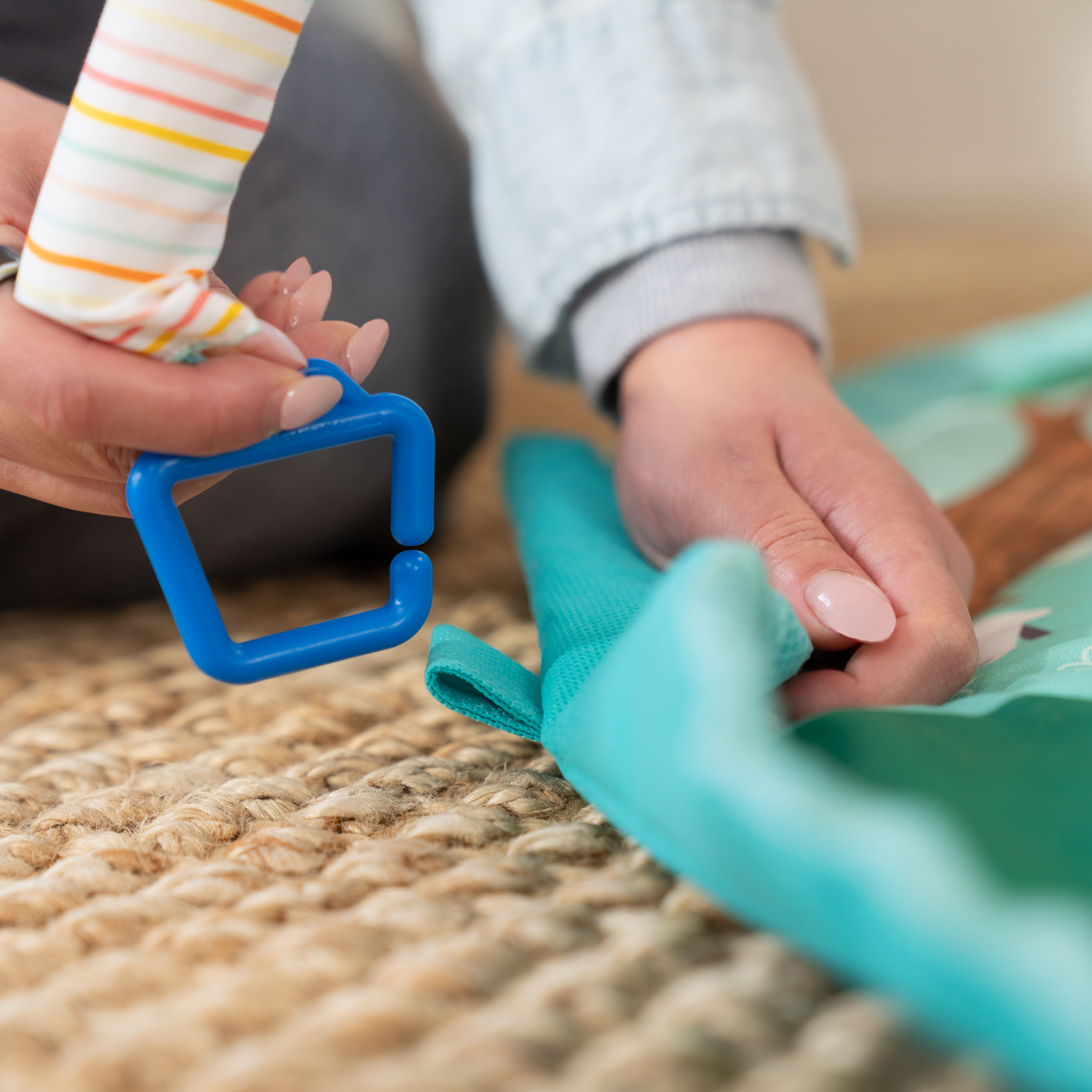 - Spielzeug fördert die Feinmotorik und das Lernen von Ursache und Wirkung, wenn das Baby nach Spielzeug greift, es festhält und schüttelt.