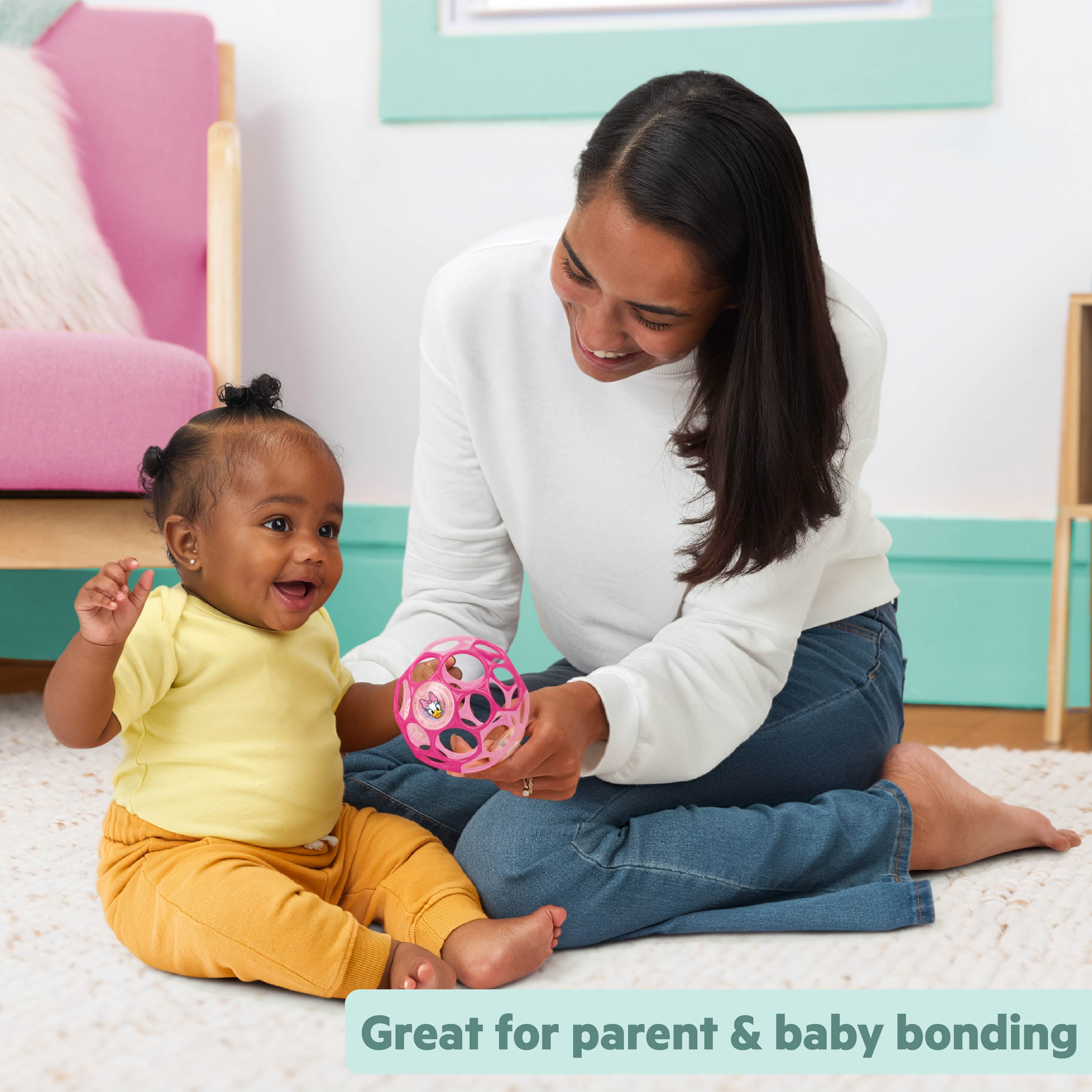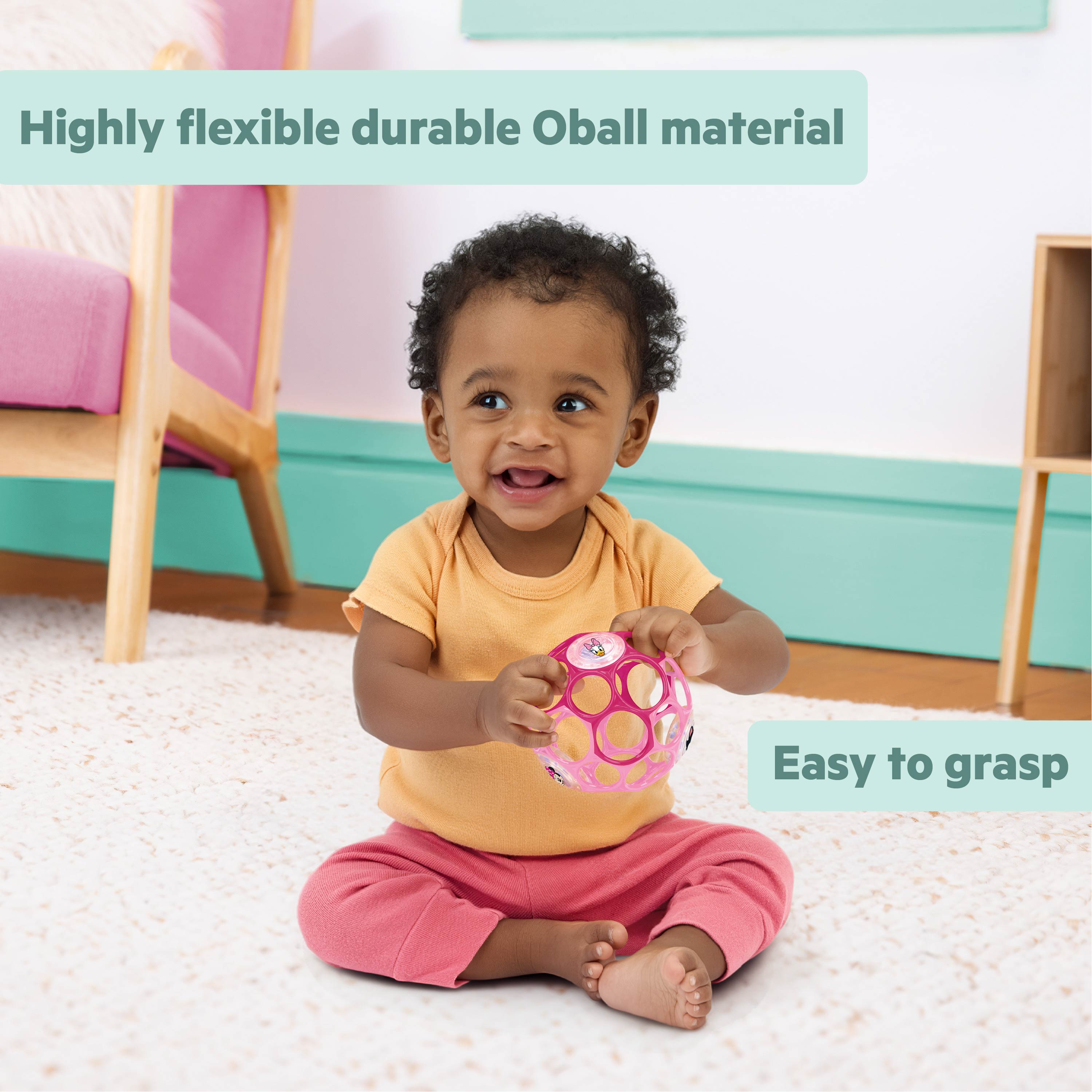 - Grasp the flexible Oball for fine motor skill development and tactile stimulation; shake the ball to engage auditory senses and engage in exciting cause-and-effect play