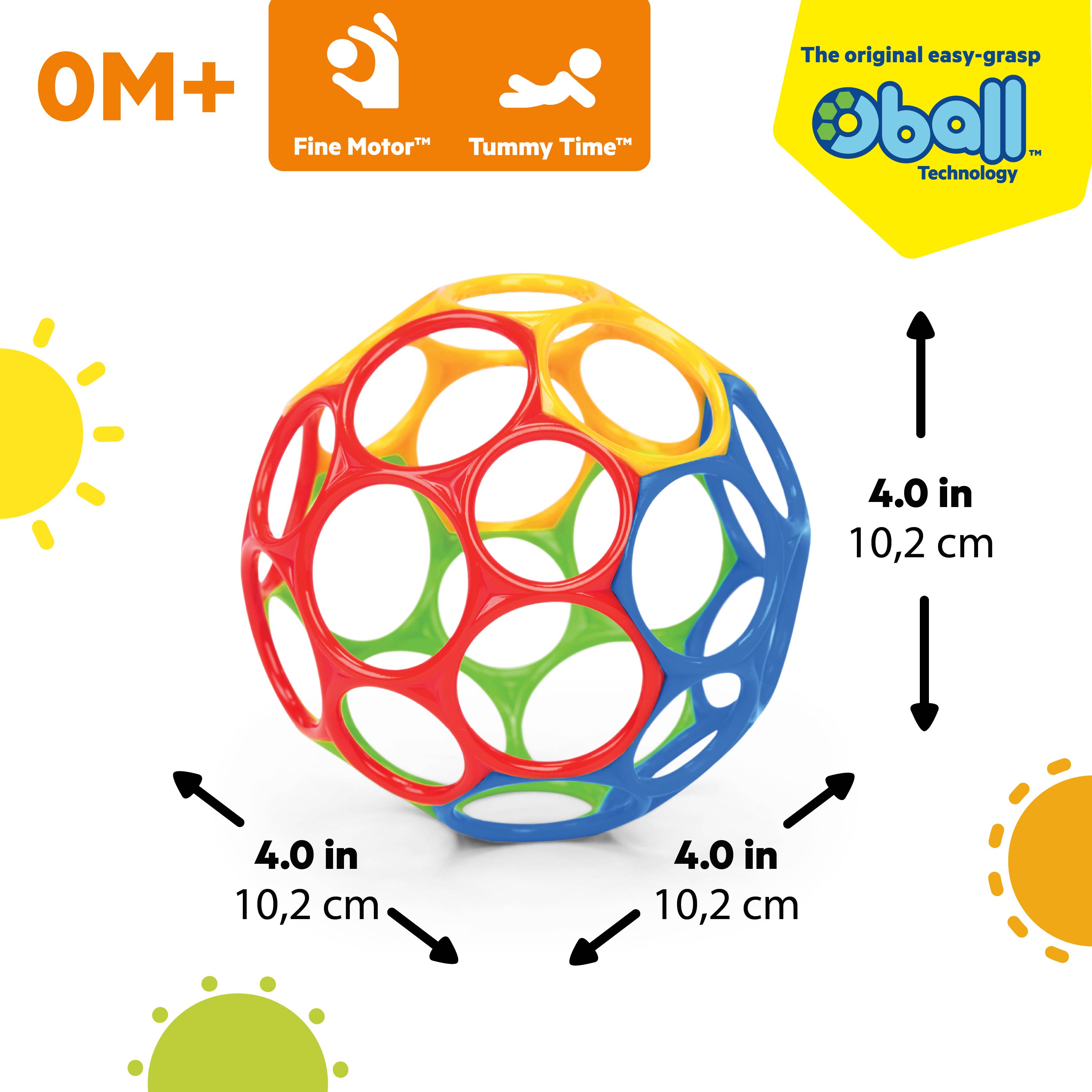 - Bright Starts Oball is a fan-favorite toy ball that has been engaging tiny fingers for over 25 years; flexible design features large finger holes to help baby easily grip and explore