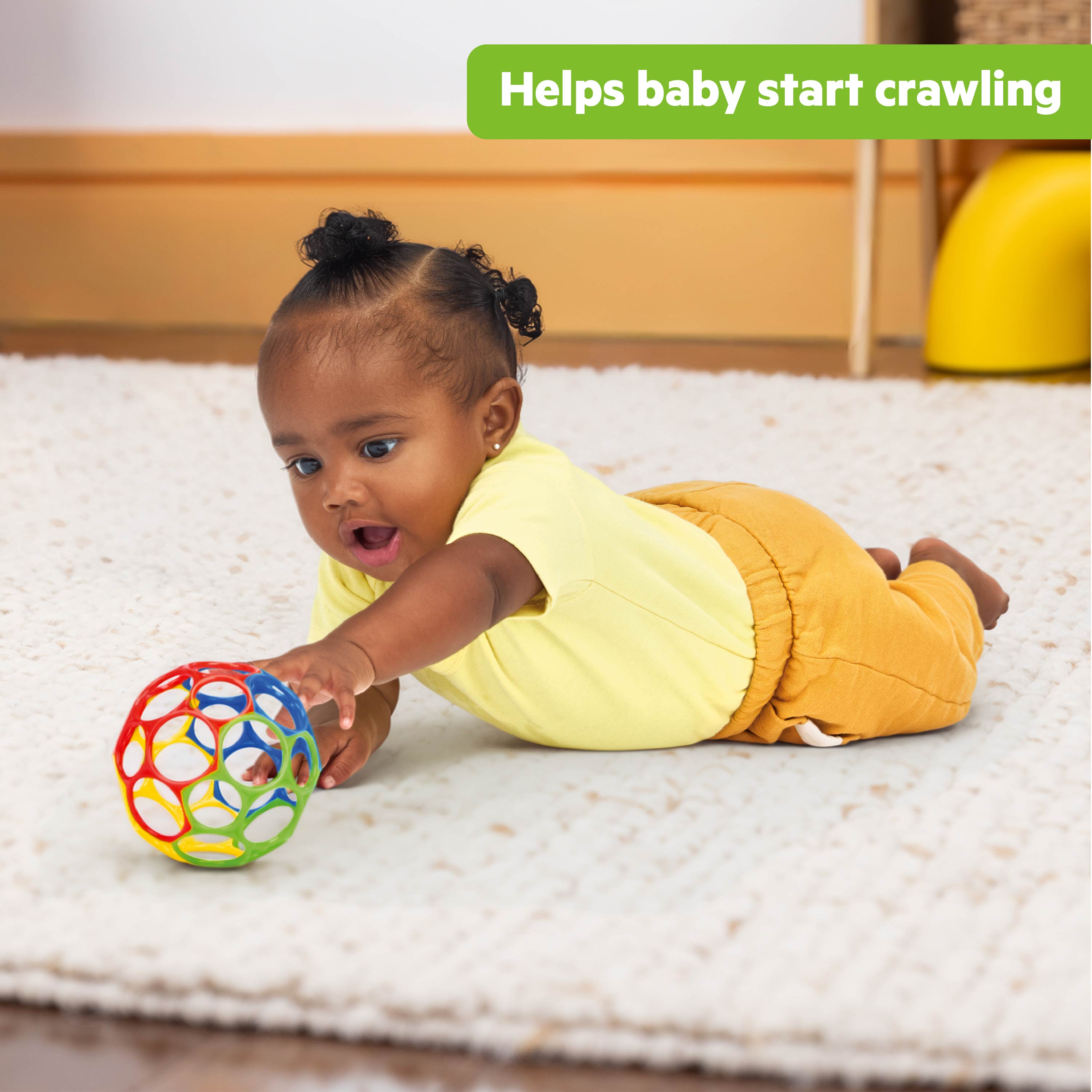 - Get baby moving with this crawl-worthy toy; little ones can’t resist chasing after the classic Oball toy, practicing their gross motor skills while they play