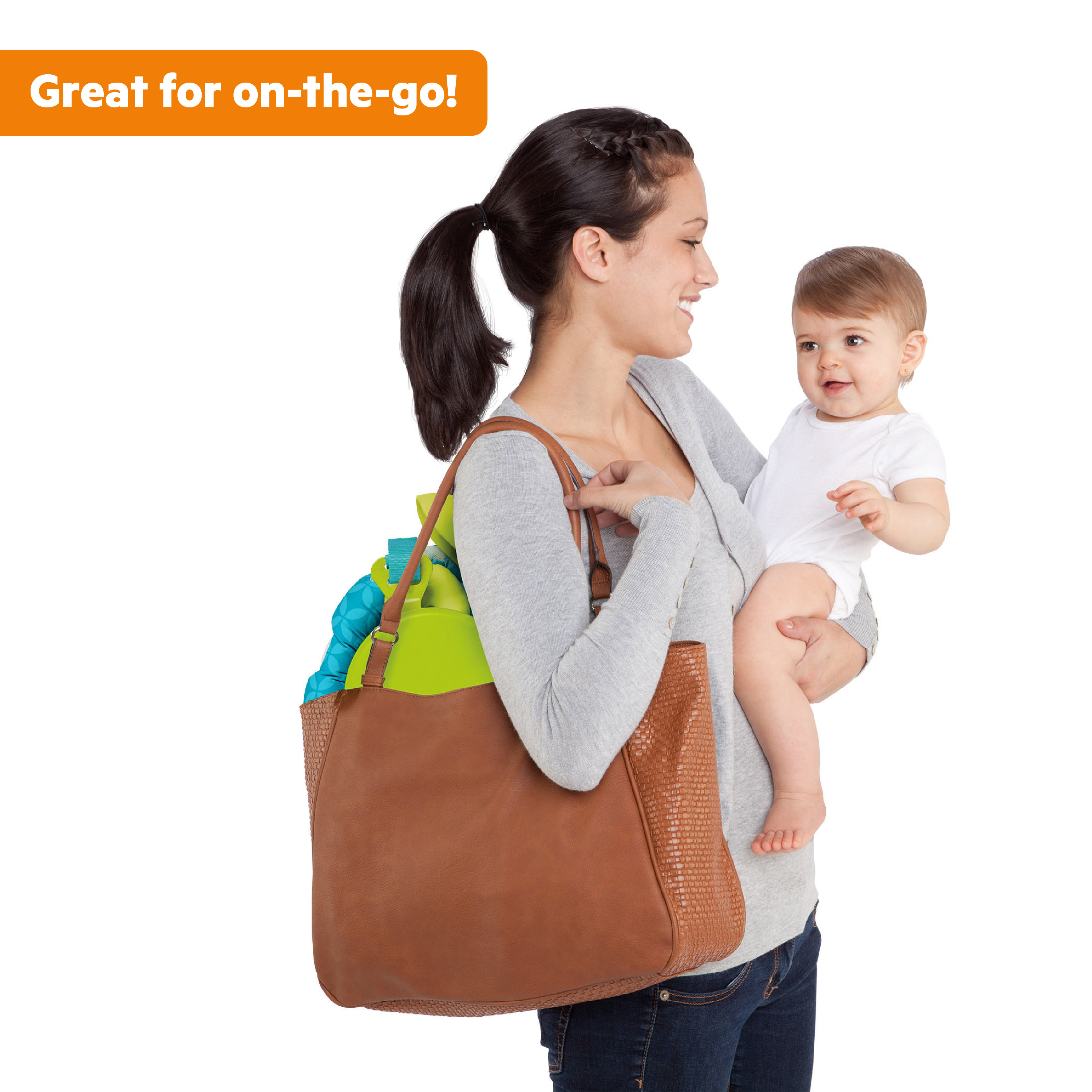 - Easy to use when baby can sit up by himself or herself (approximately 6 months old); baby must weigh less than 26 lbs