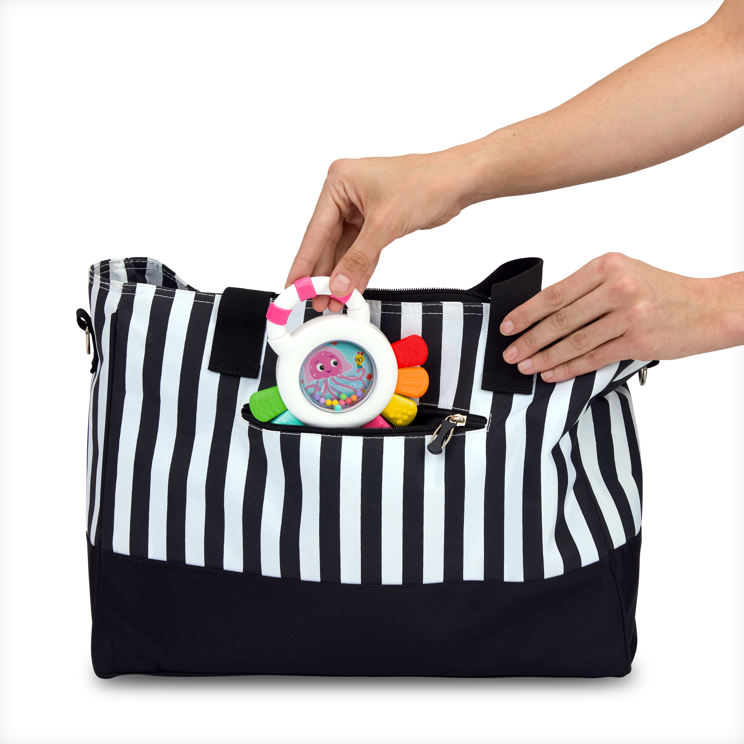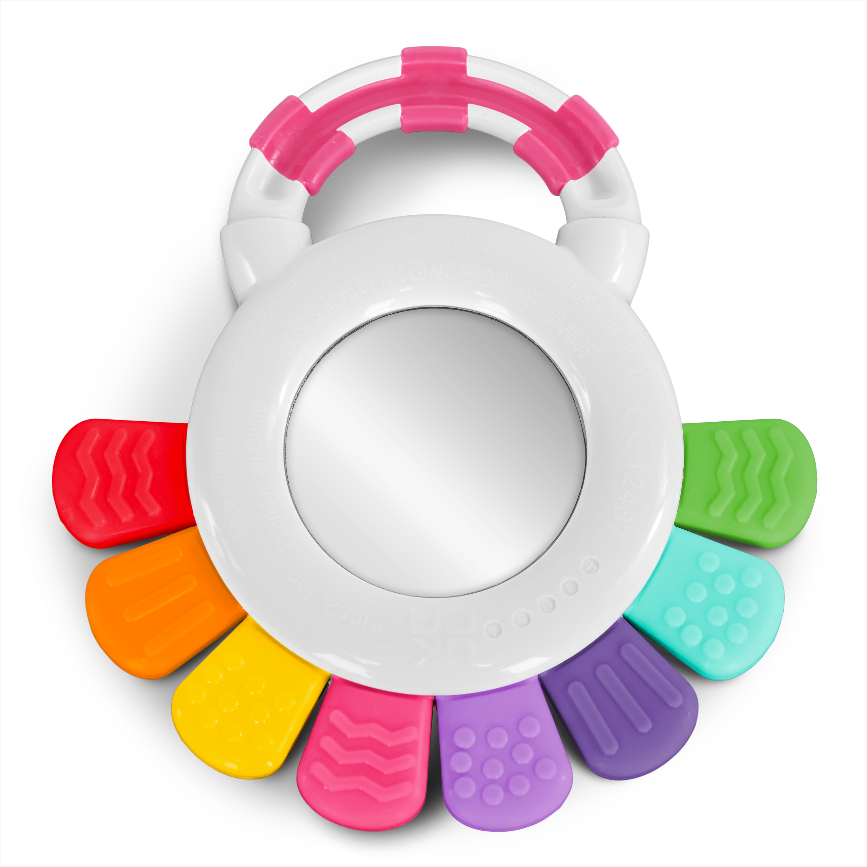 - Made for little hands – The pink and white handle is easy for baby to grip, so they can take their favorite teether with them on the go; Dimensions: 1.1 x 5.2 x 5.3 inches