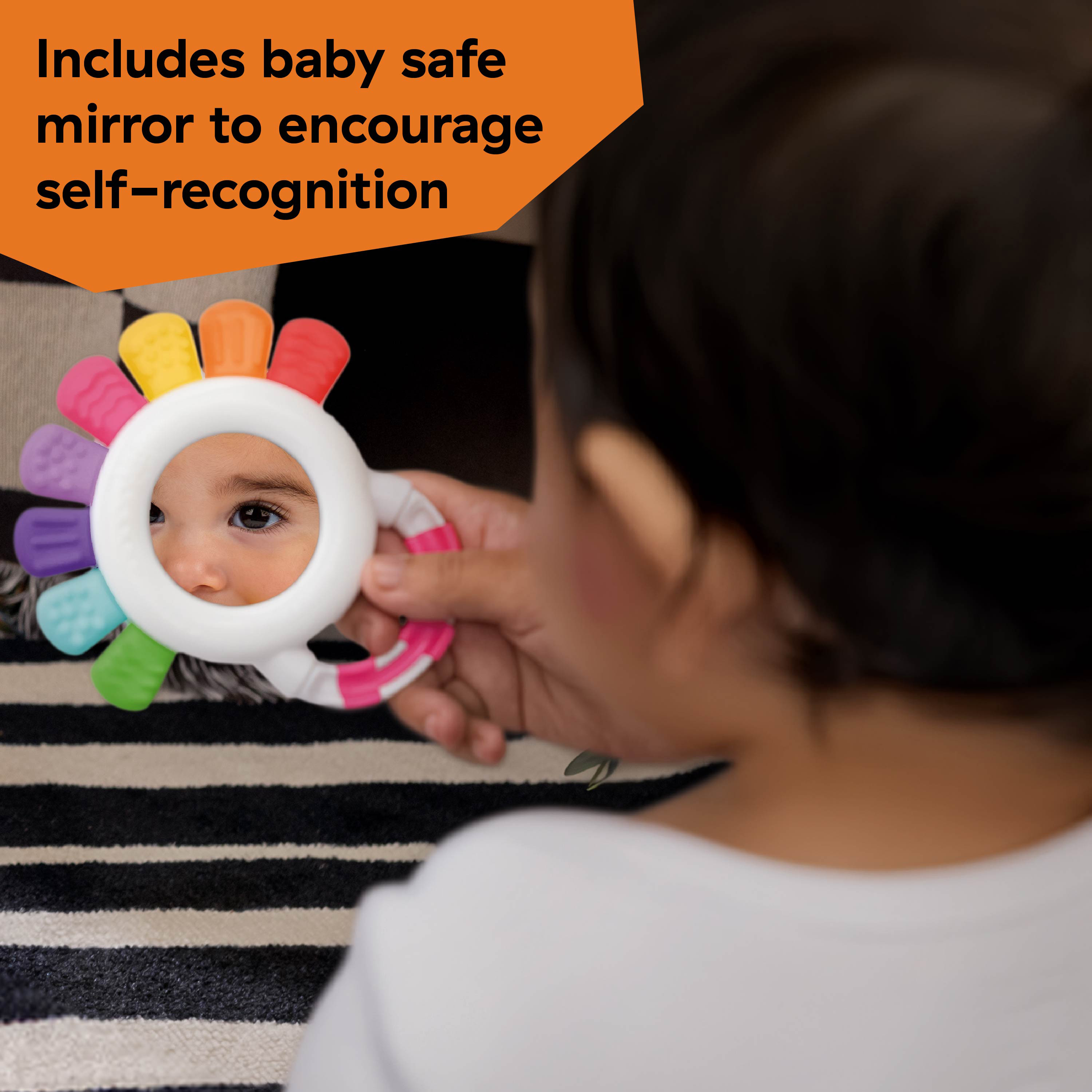 - Self-discovery mirror promotes self-recognition and engagement; Appropriate for children ages 3 months and up; Unisex