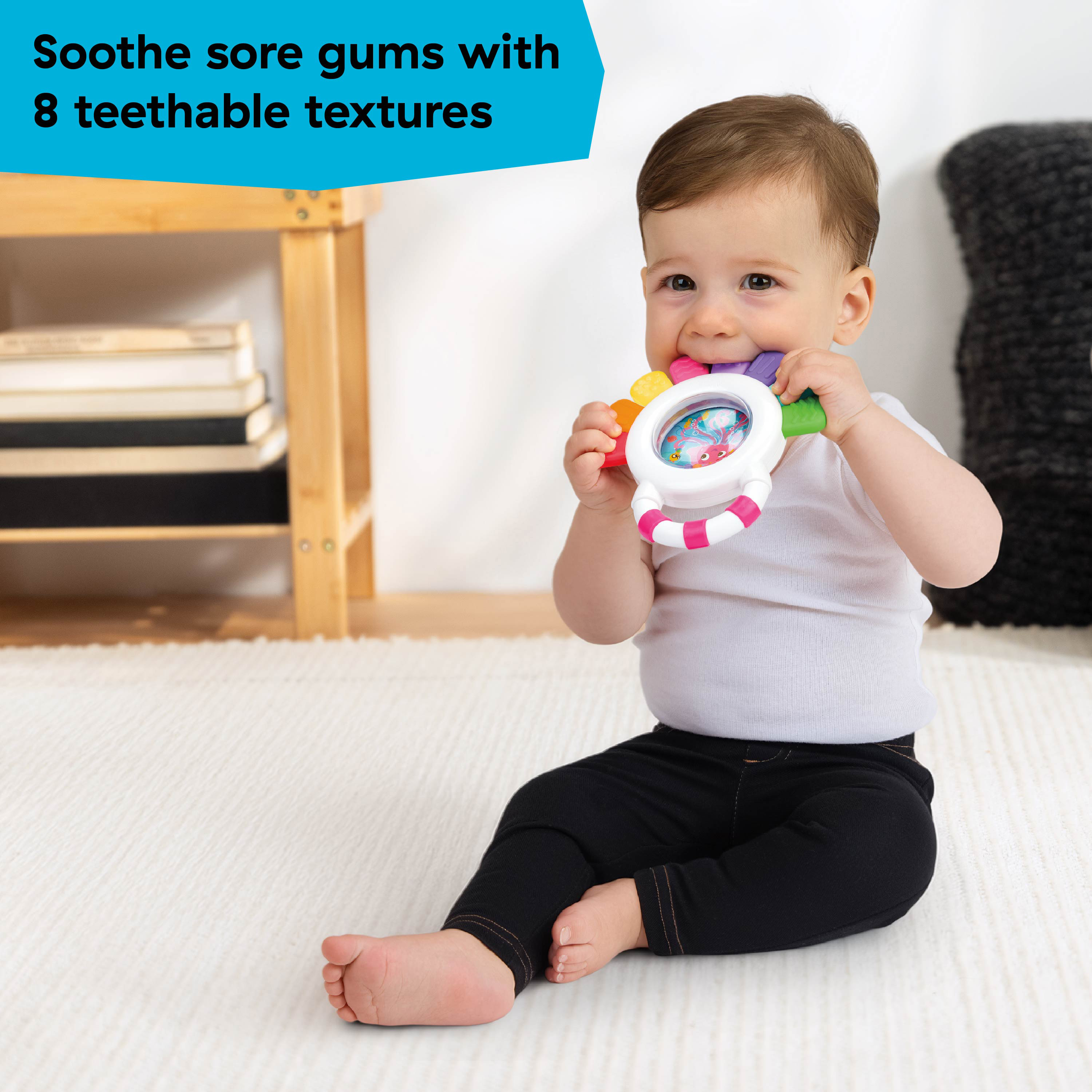 - Sparks curiosity – There’s plenty here to keep baby curious and engaged while they get some soothing relief for their sore gums; Includes expert-developed Play Tips to inspire curiosity and foster purposeful parent-baby playtime