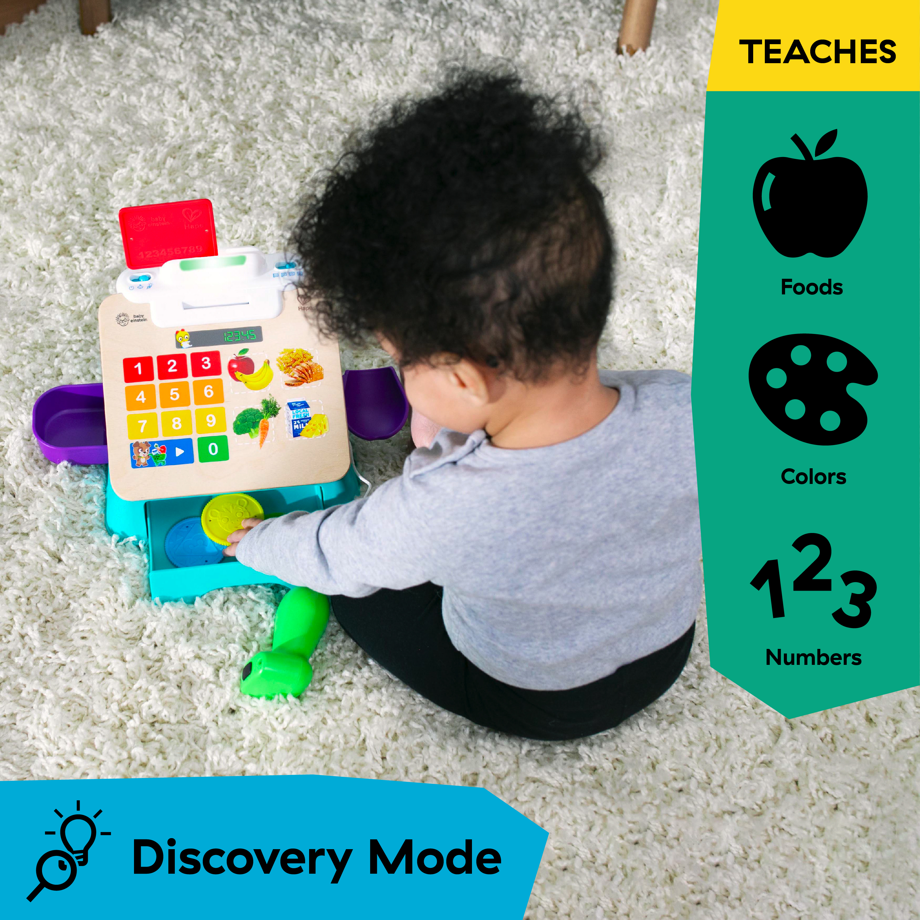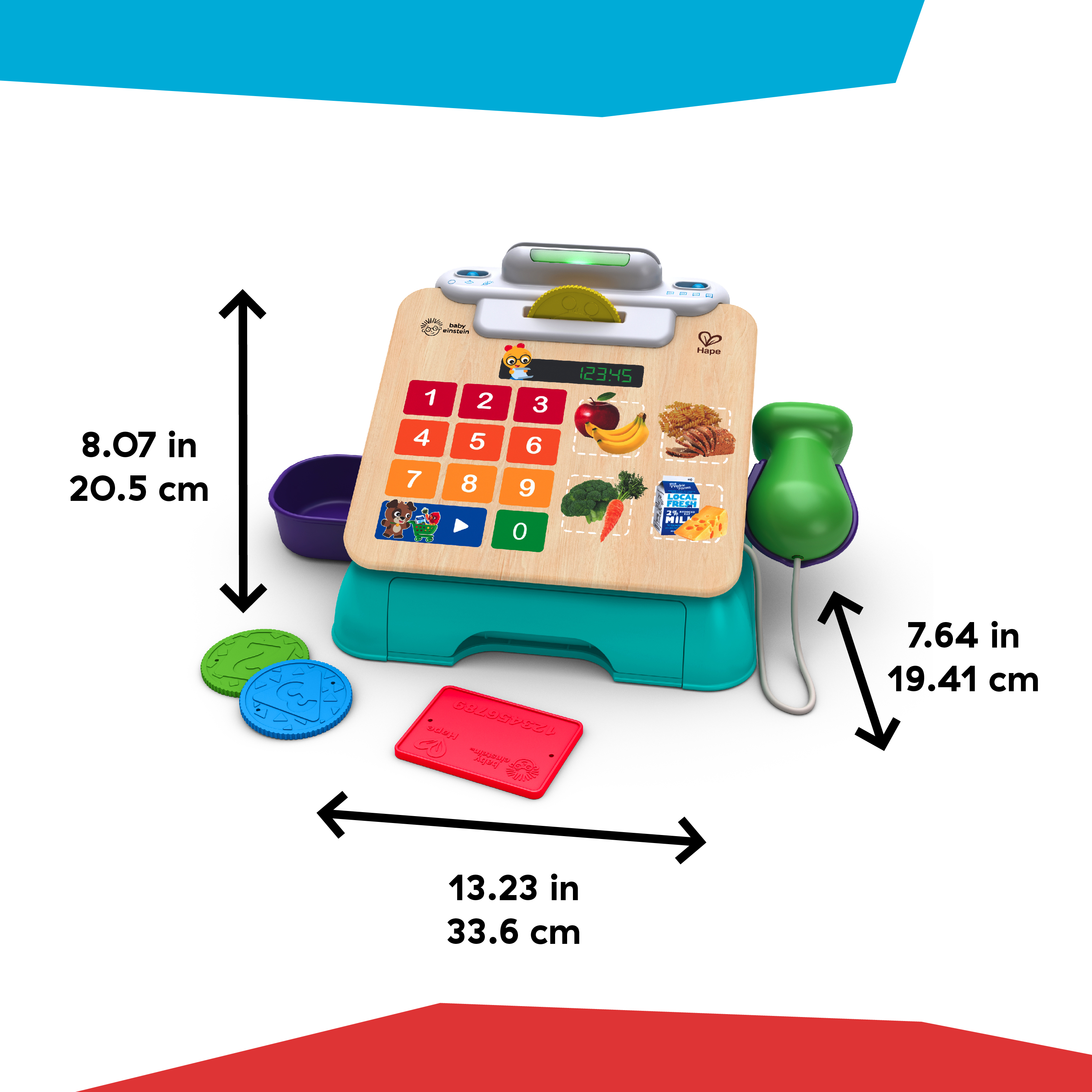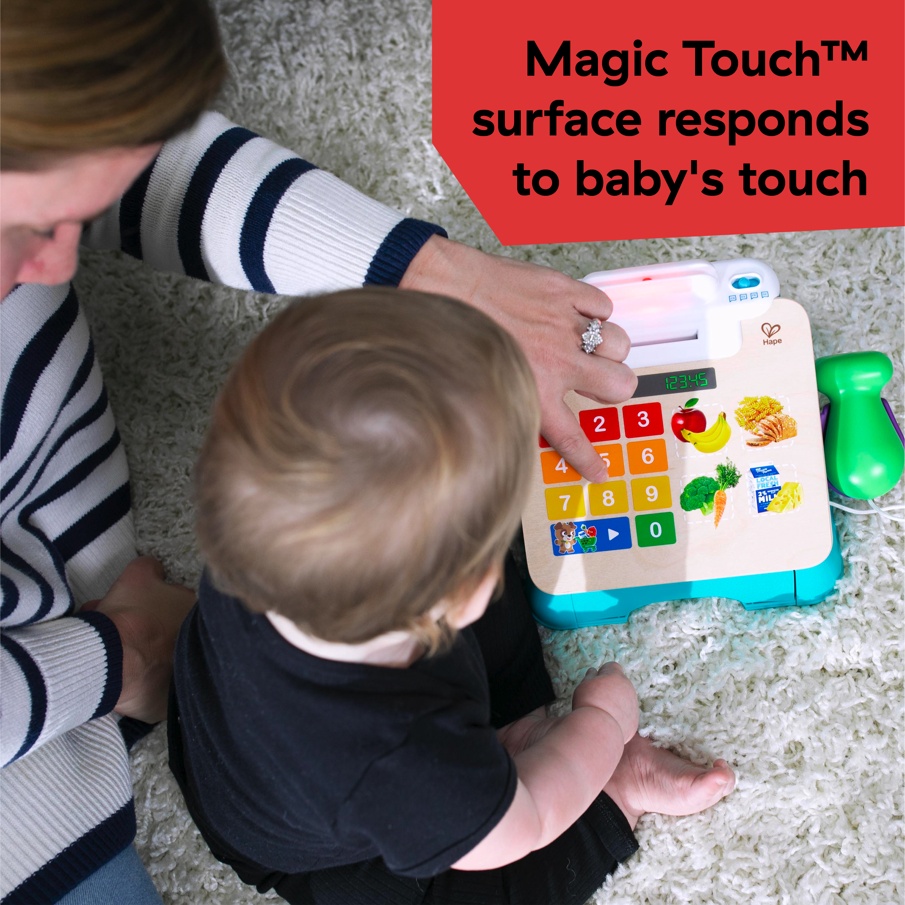 - The Baby Einstein Magic Touch Cash Register is a pretend toy with lights, music, shopping sounds, & phrases that promote real-world learning and fine motor skill development from 9 months to 4 years.