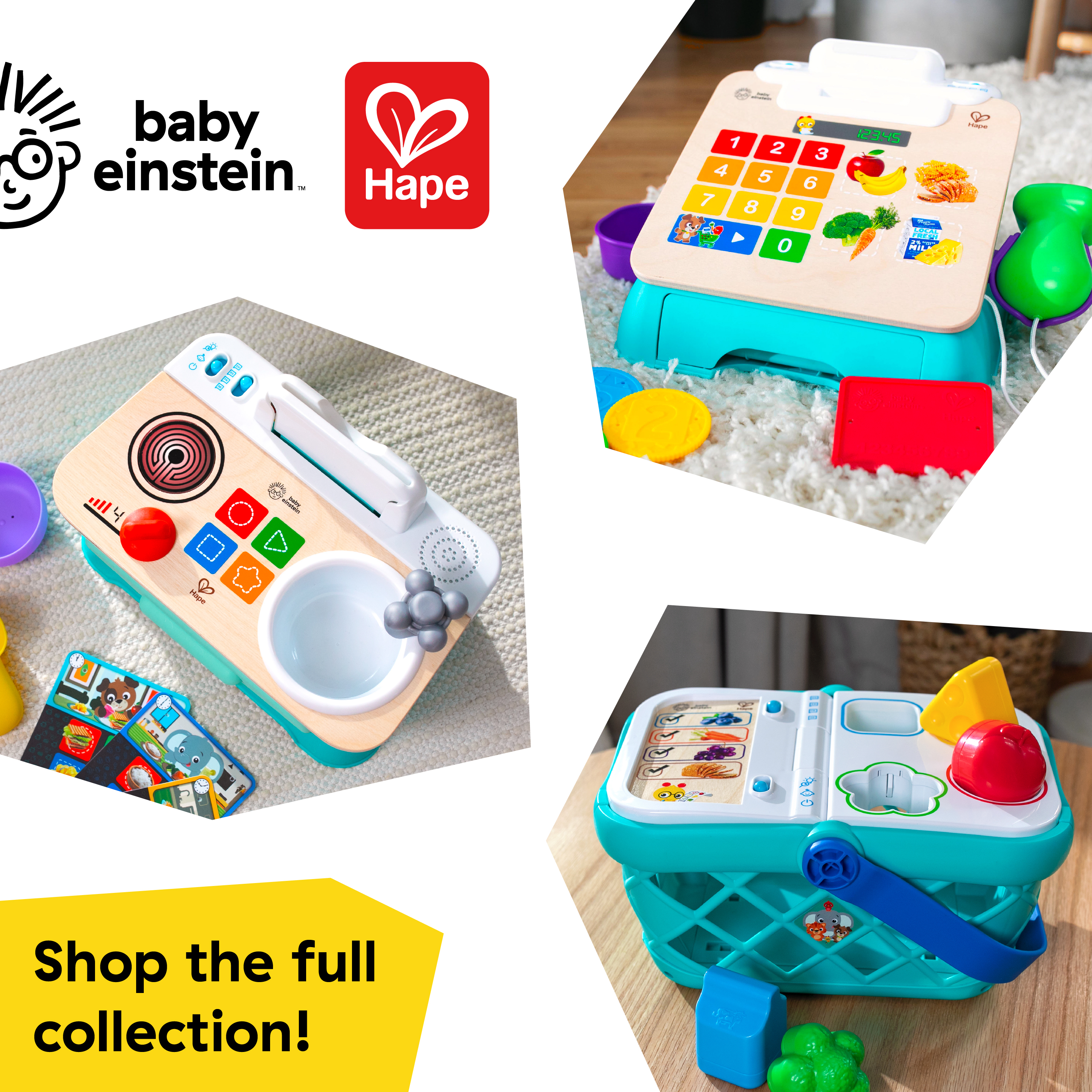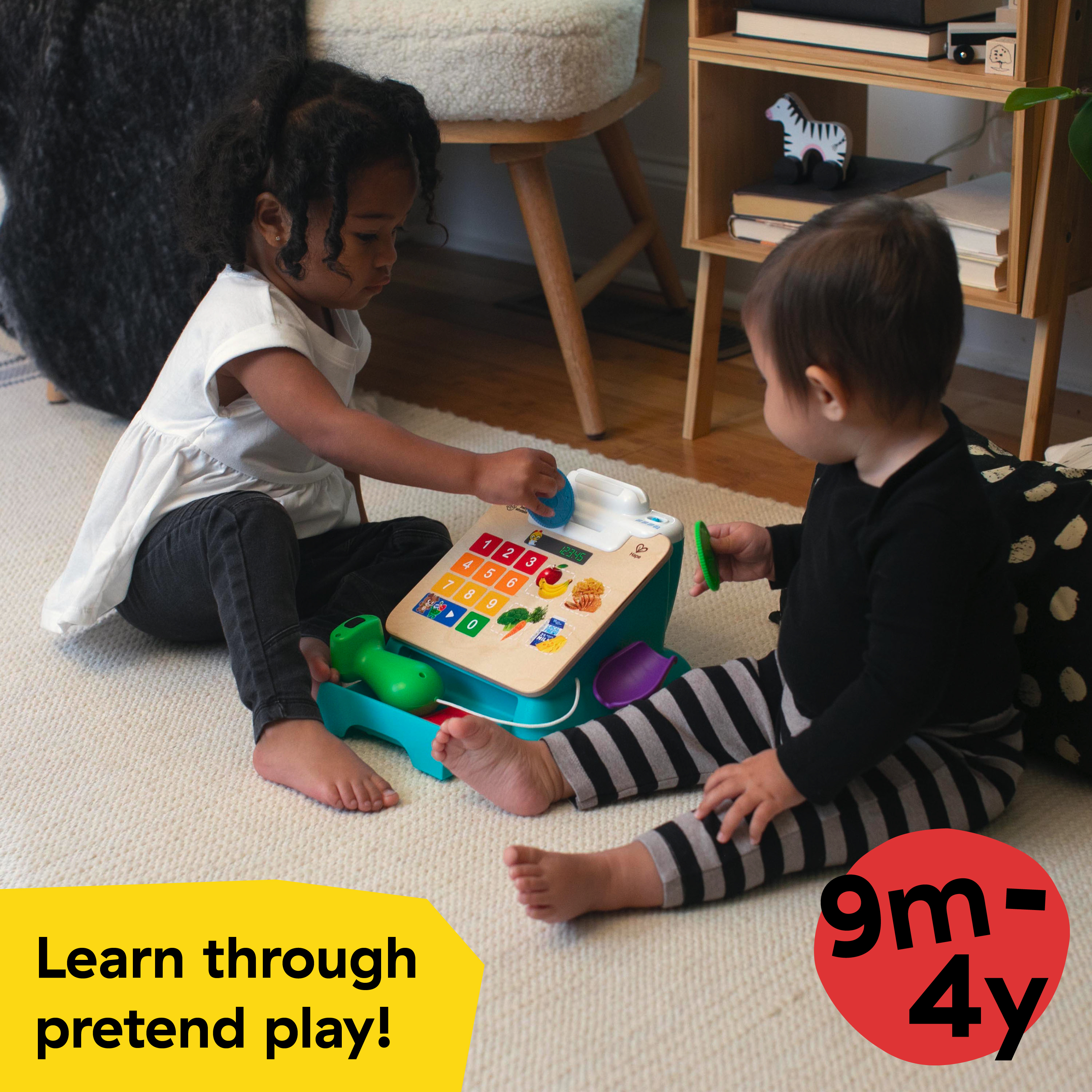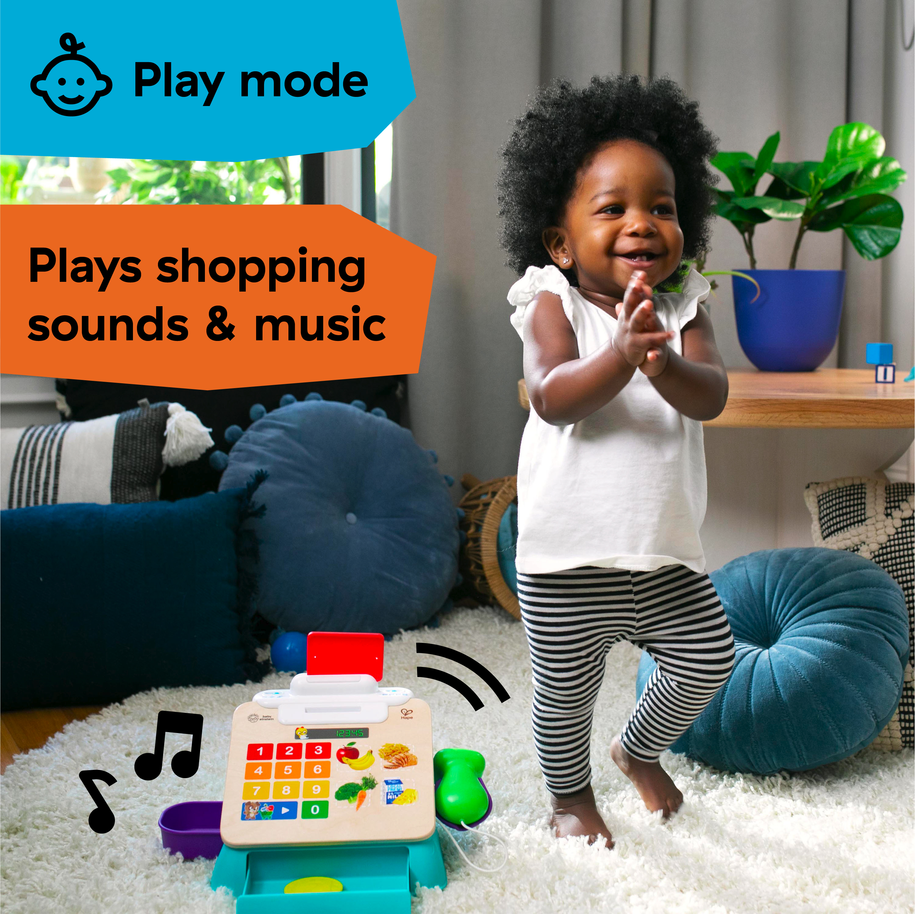 - The Baby Einstein Magic Touch Cash Register is a pretend toy with lights, music, shopping sounds, & phrases that promote real-world learning and fine motor skill development from 9 months to 4 years.