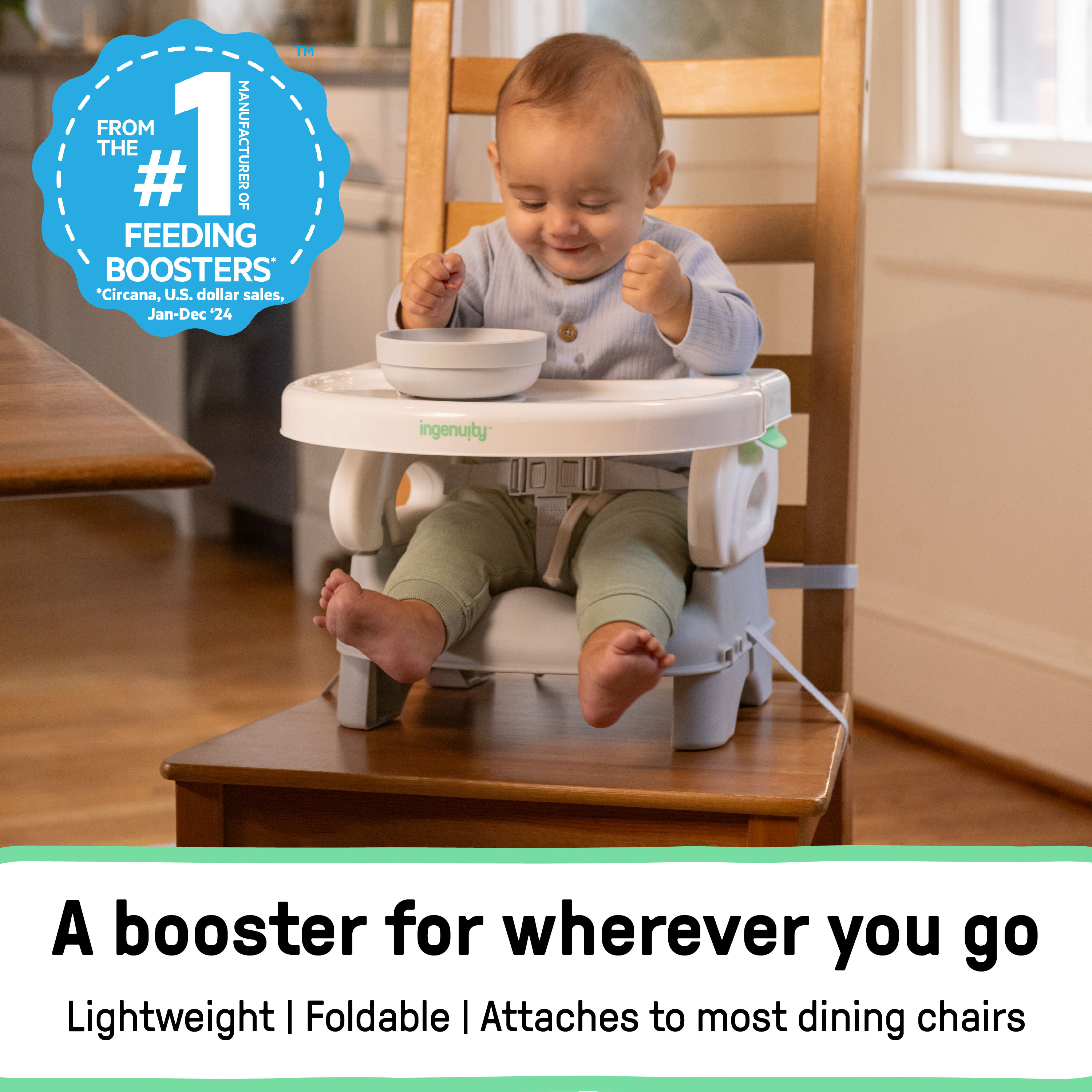- Your little one is ready for their own seat at the table! Wherever you go, this lightweight and foldable booster brings consistency, ease, and comfort to mealtime
