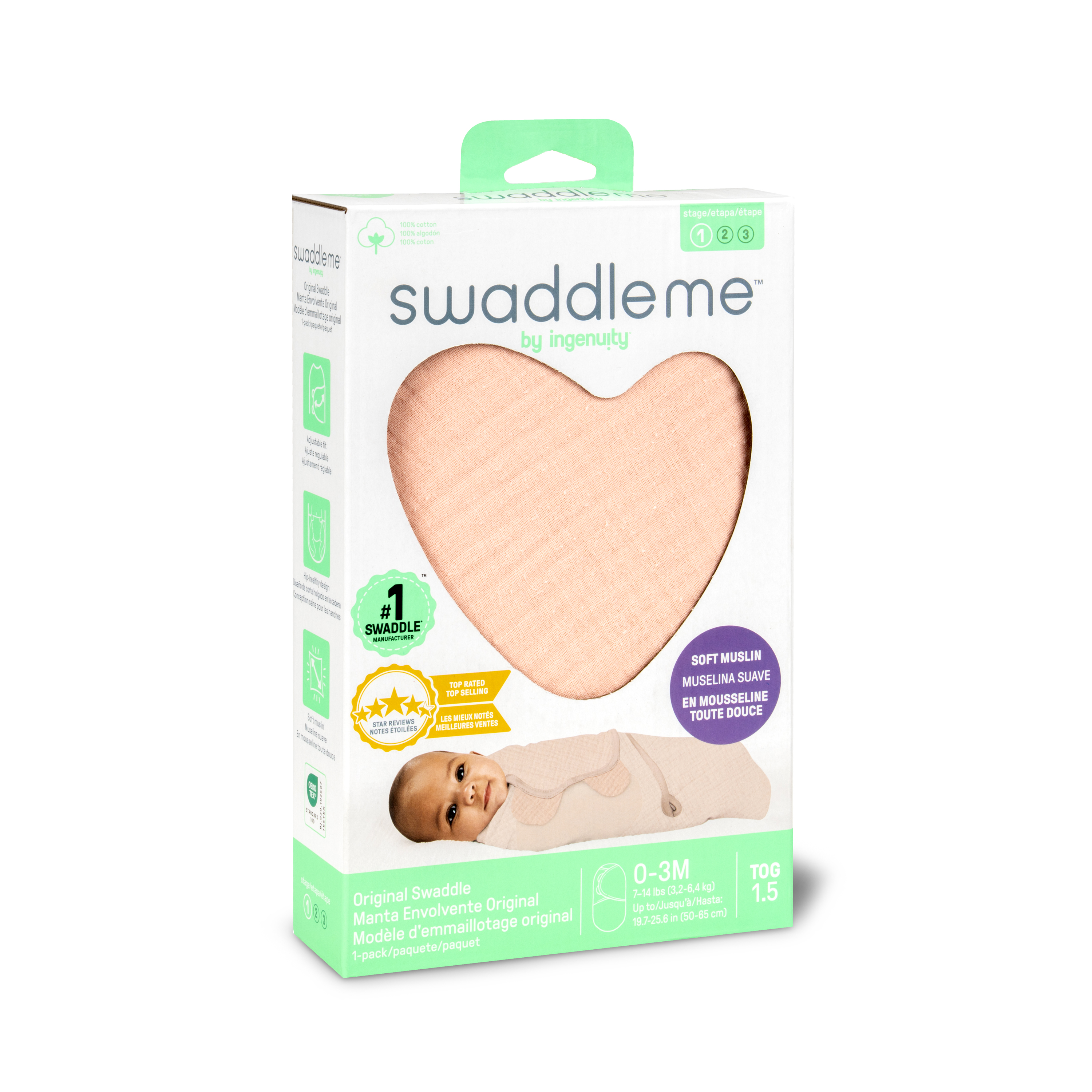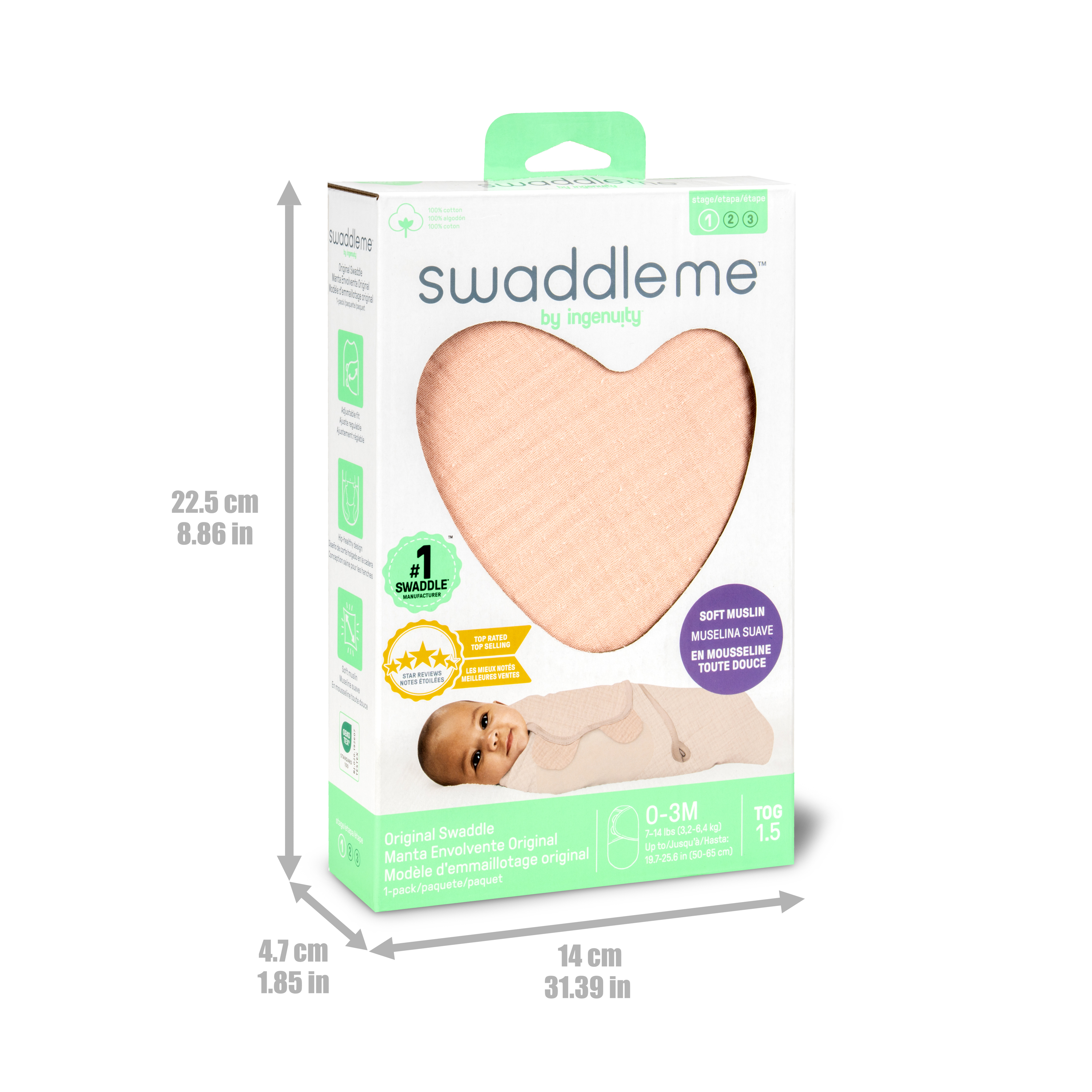 - Keep your baby calm and comforted with the SwaddleMe by Ingenuity Muslin Original Swaddle in small/medium. This swaddle fits babies ages 0-3 months, 7-14 pounds, and up to 26 inches long; 1.5 TOG