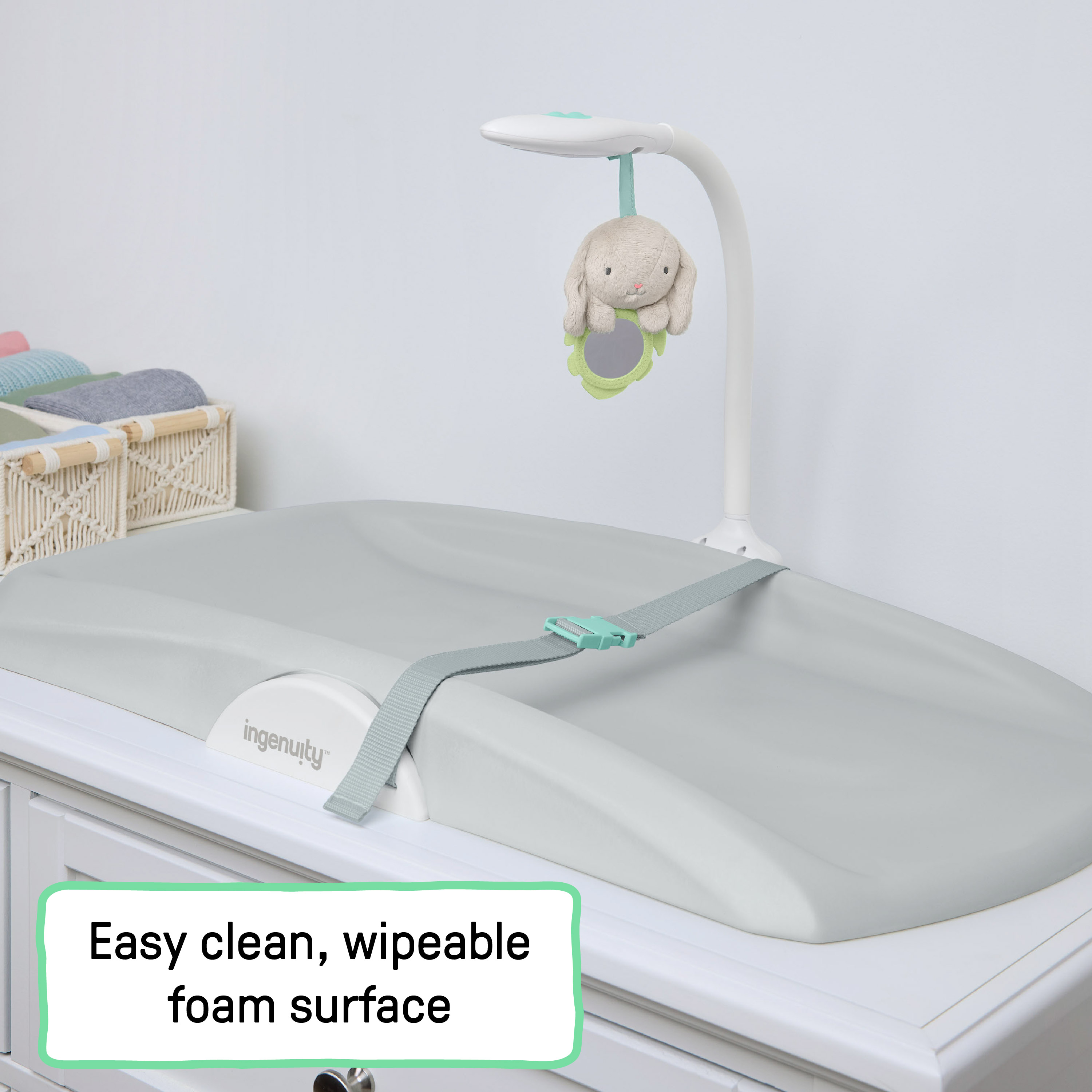 - We designed this foam surface with both parents and baby in mind. It's easy to wipe yet cozy enough to relax on, making changes more comfortable for baby and easier to clean for mom and dad.