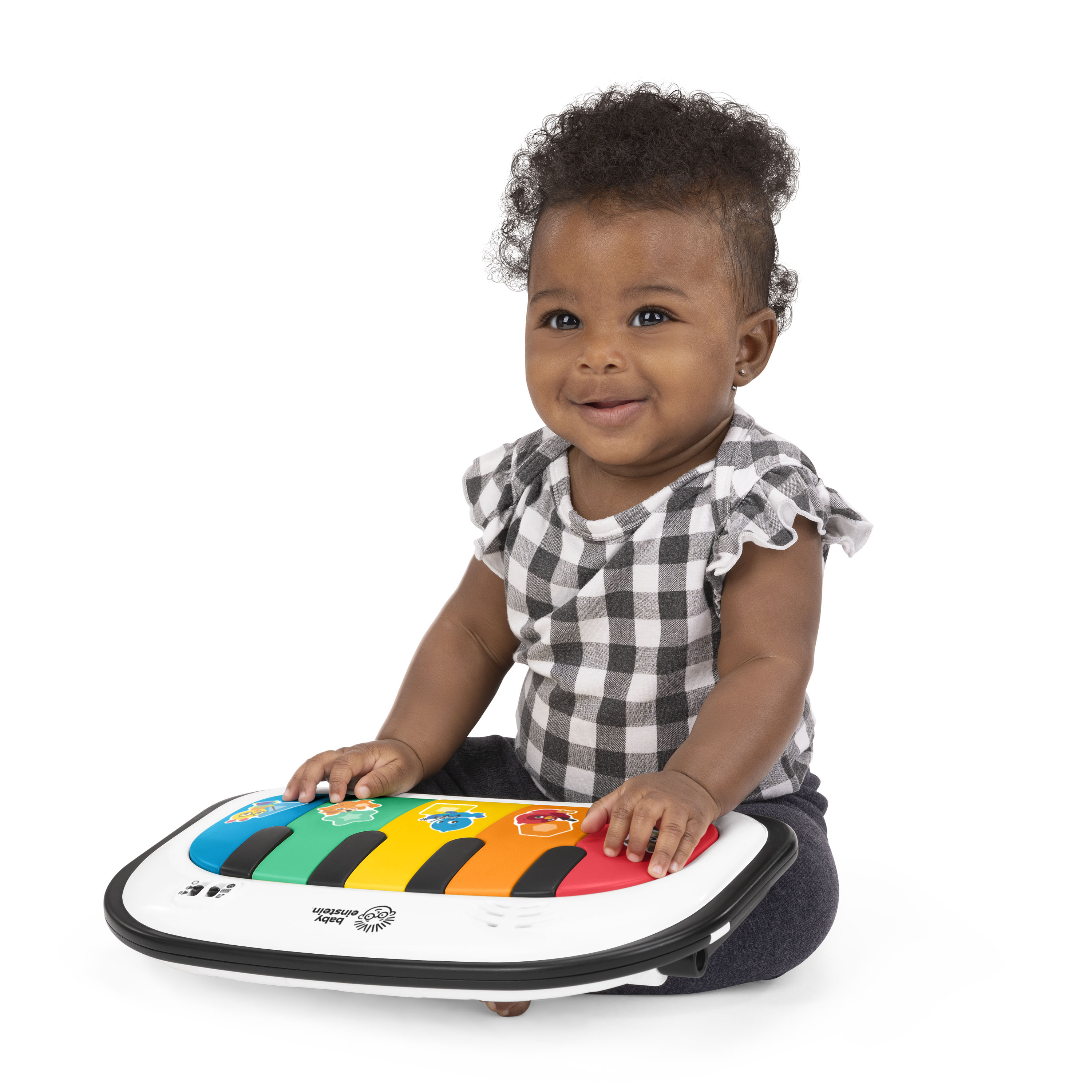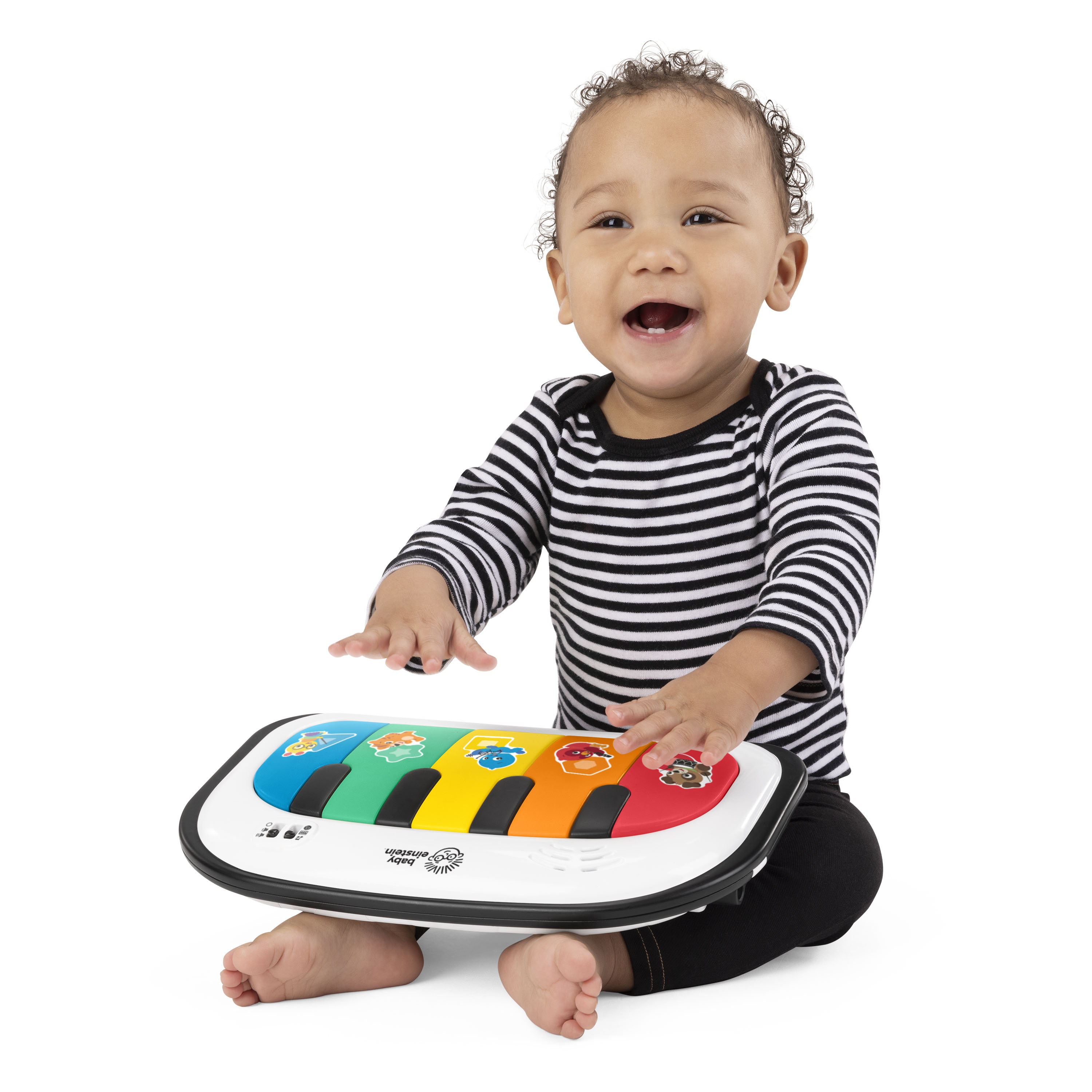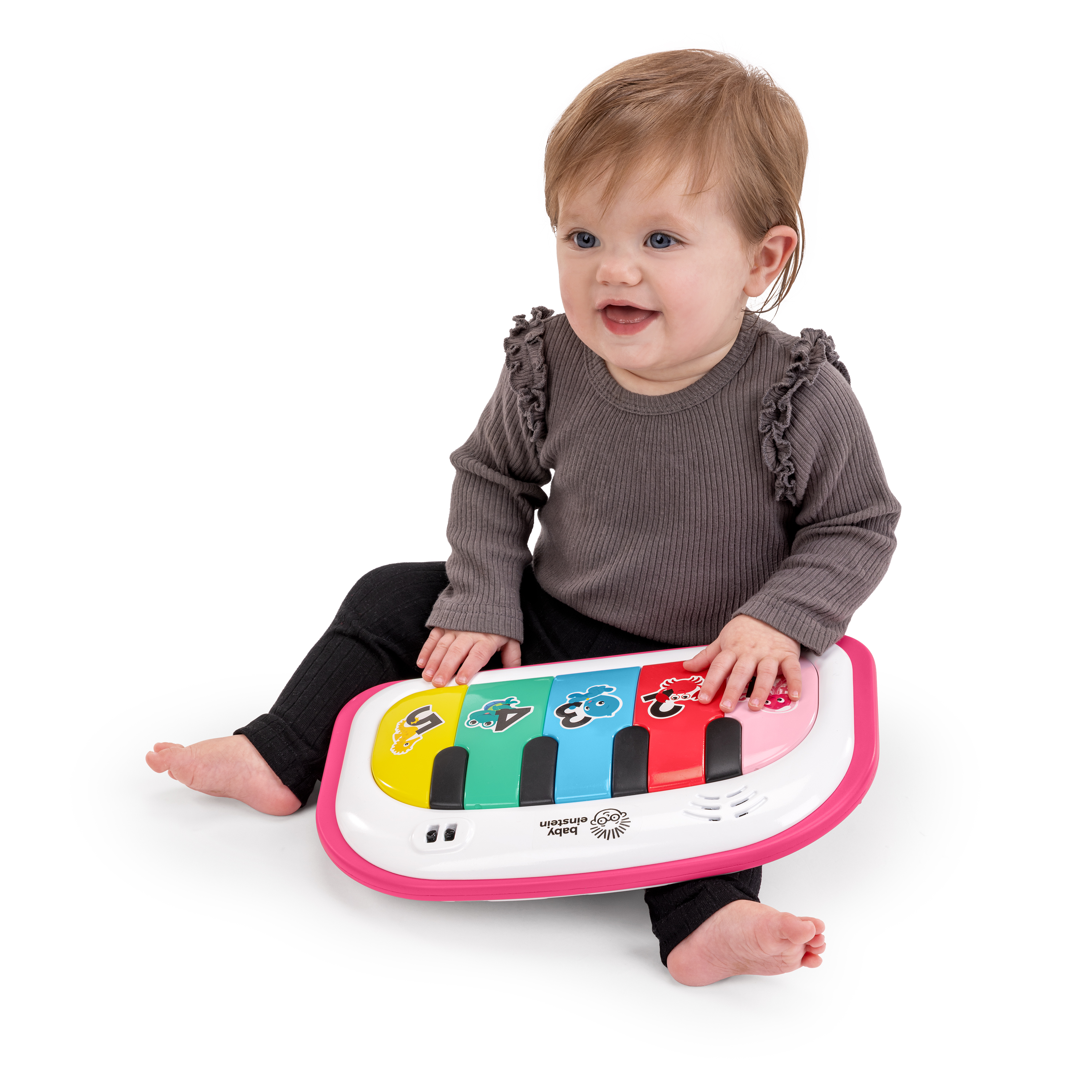 - Kick piano features 50+ songs, sounds, and phrases; as baby grows, piano can also be placed on the dining tray or detached for on the go or floor play; Piano requires 3 AA batteries