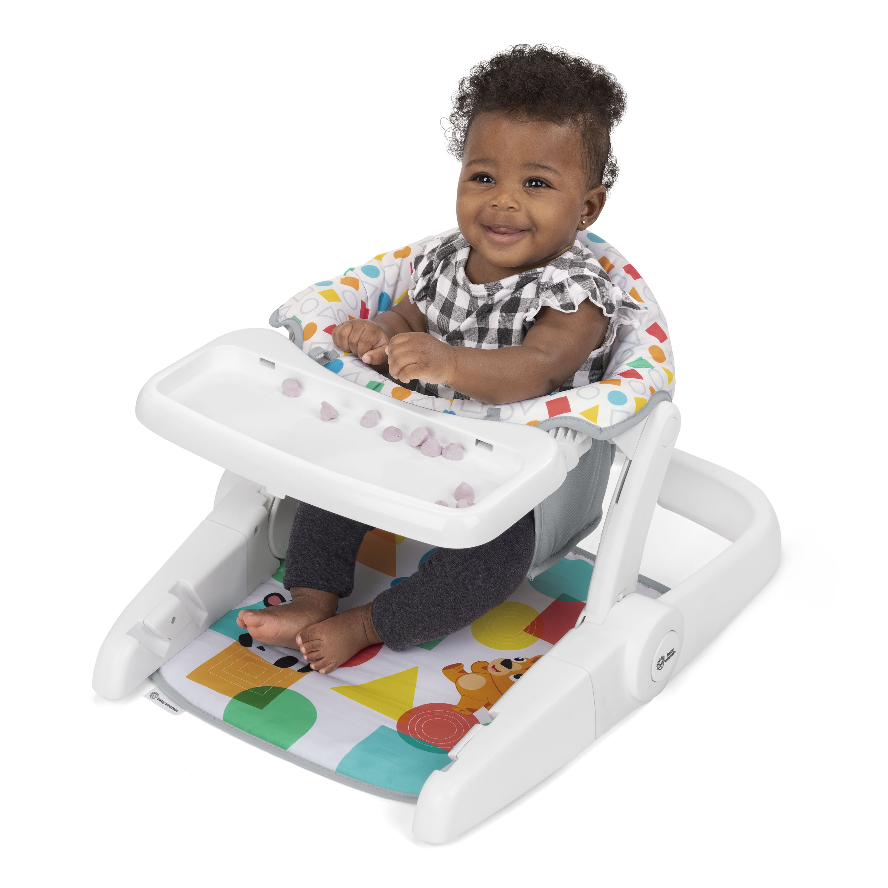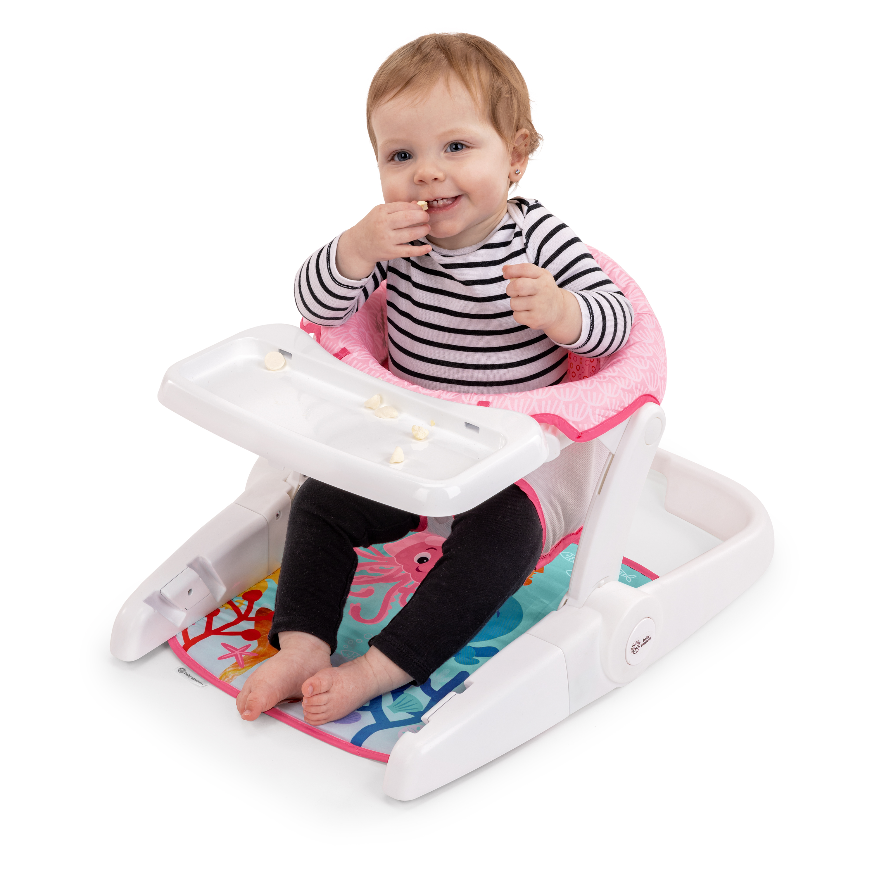 - 3-position recline for smaller and larger babies; 4 modes: kick and play, sit and play, snack time, and on the go; grows with baby from infant to toddler; Machine washable seat pad