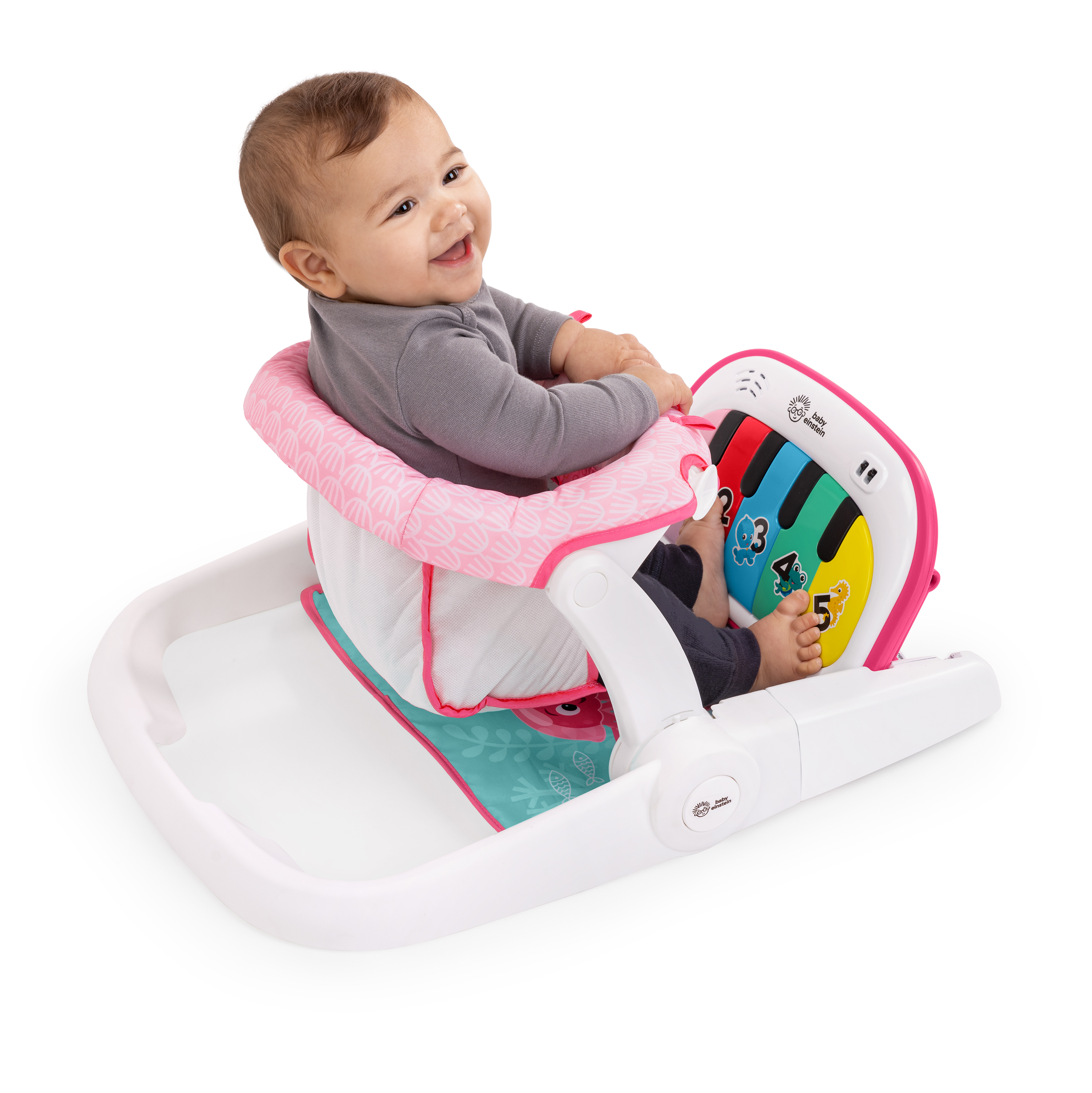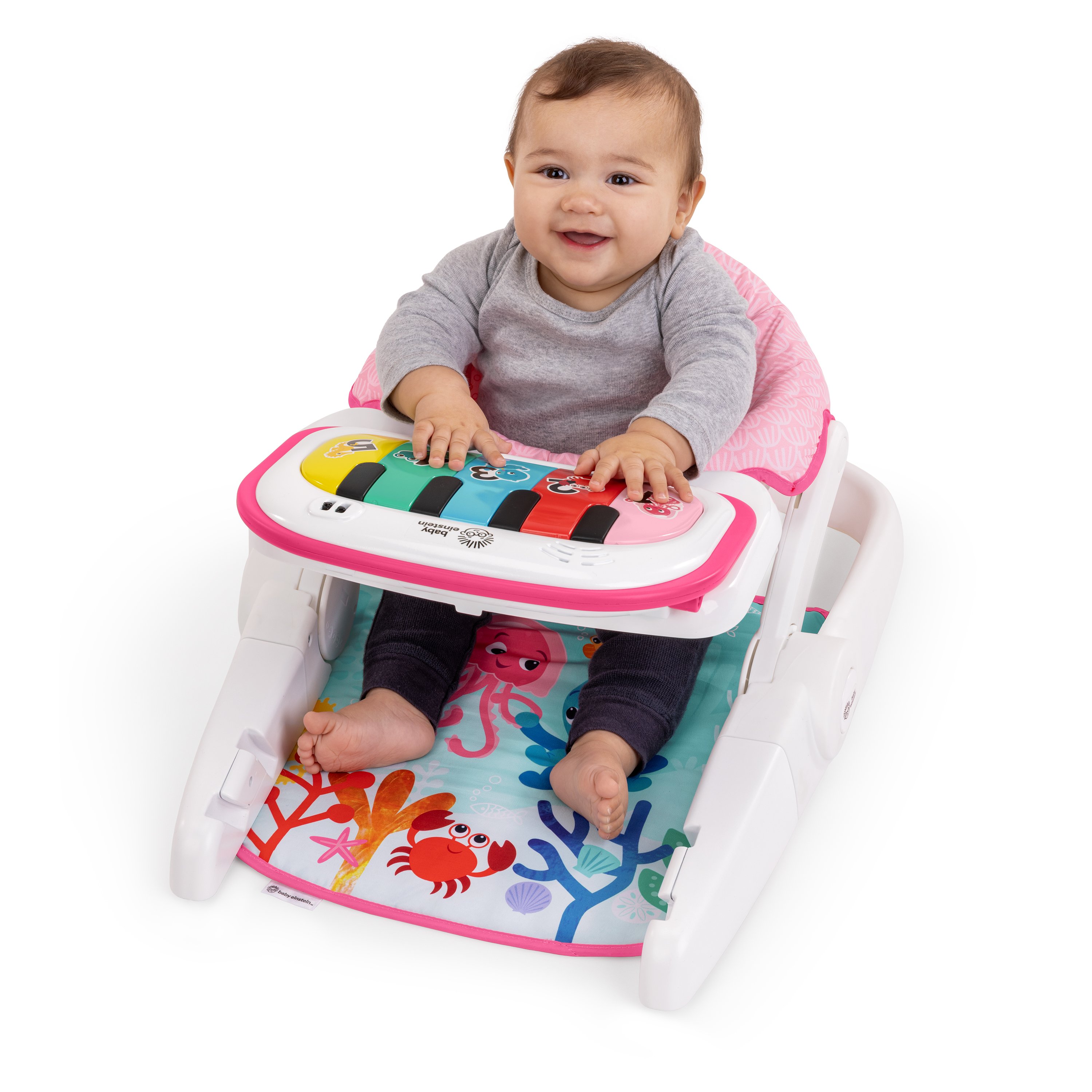 - The Baby Einstein 4-in-1 Kickin' Tunes Learn-to-Sit Music & Language Floor Seat in Pink supports baby as they learn to sit independently; removeable toy helps encourage development