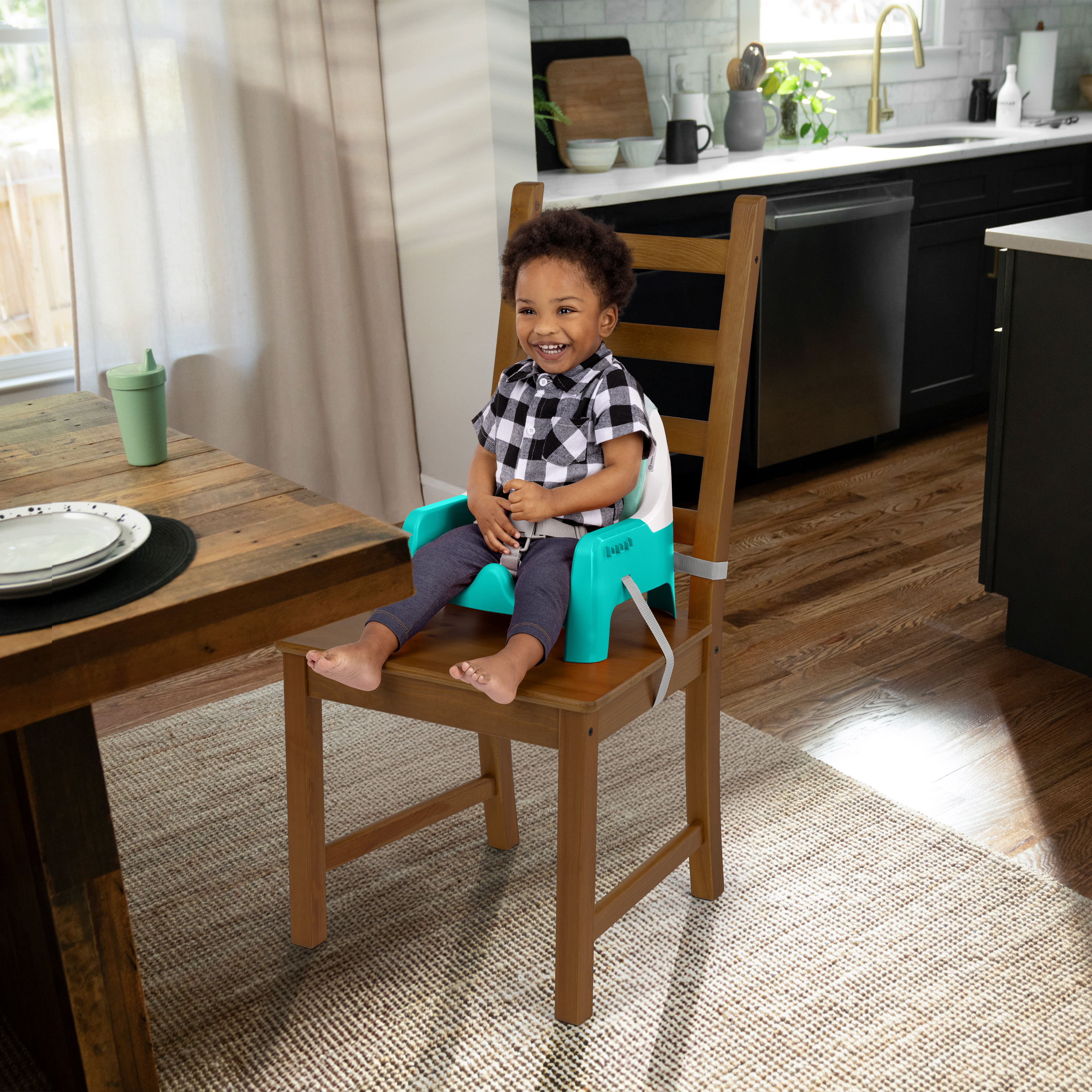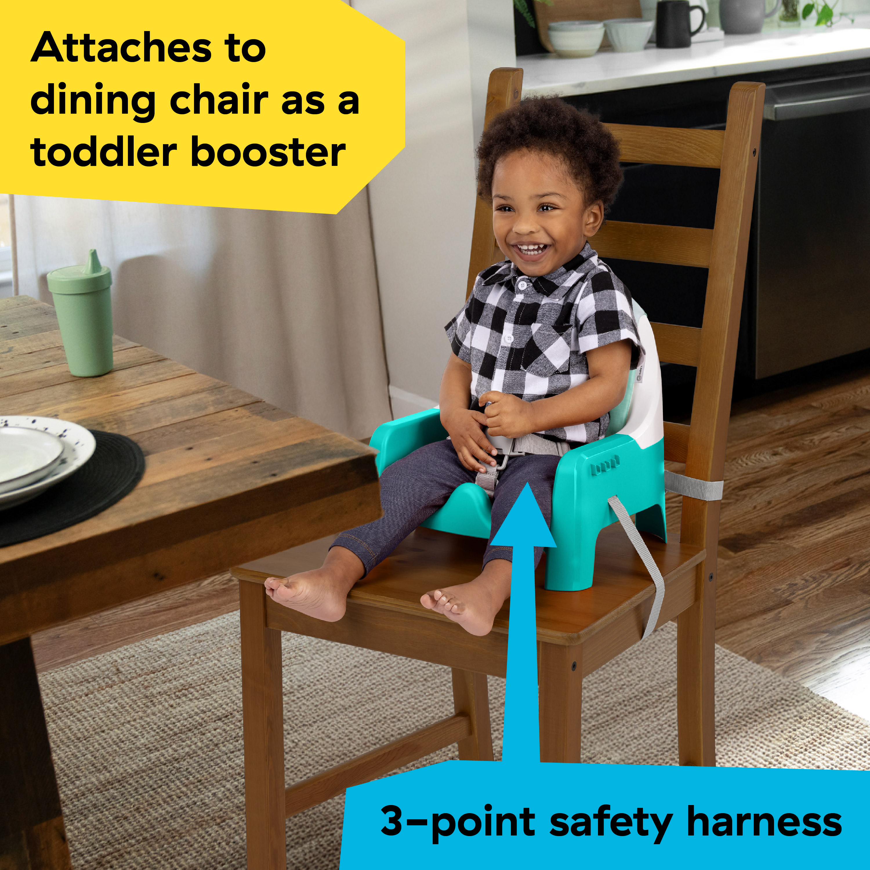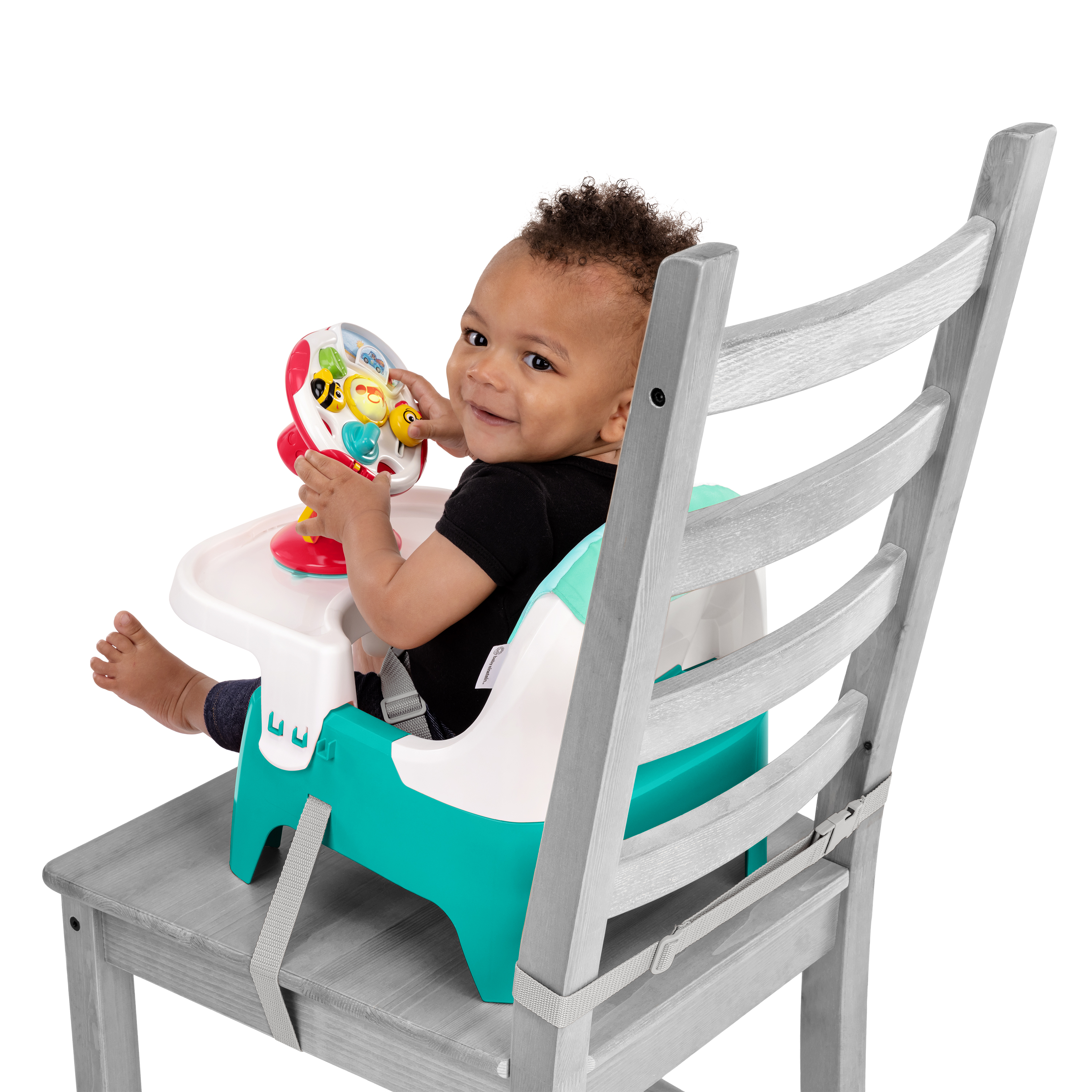 - Use as an infant feeding seat or detach tray to use as a toddler booster that attaches to most dining chairs; Twist & Dine plate locks into tray to prevent baby from tossing plate to the floor