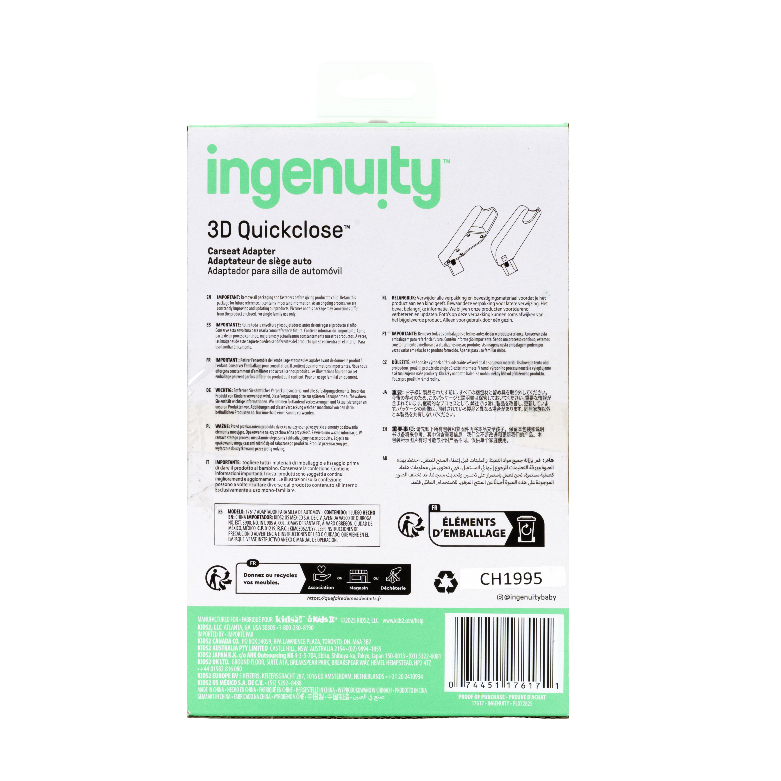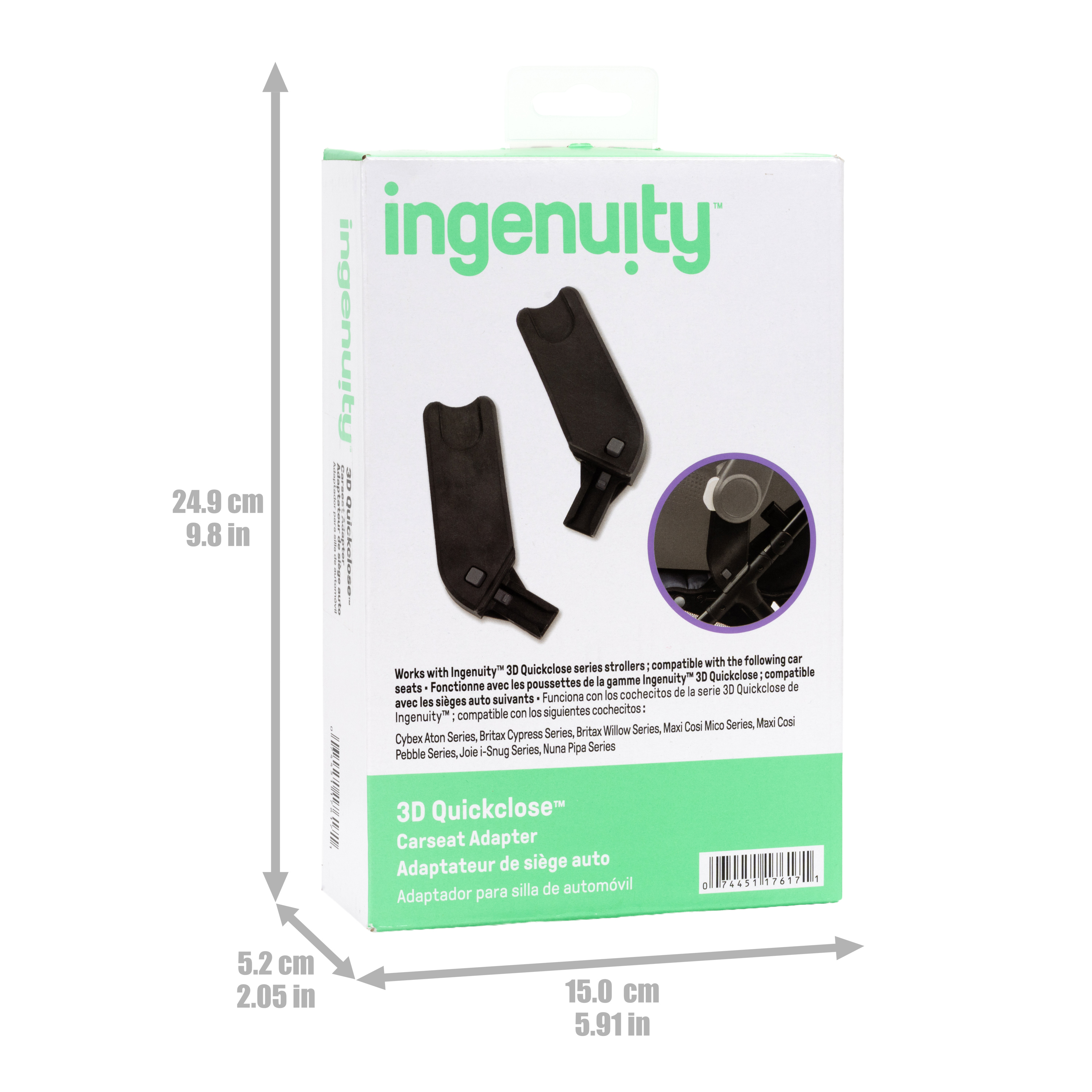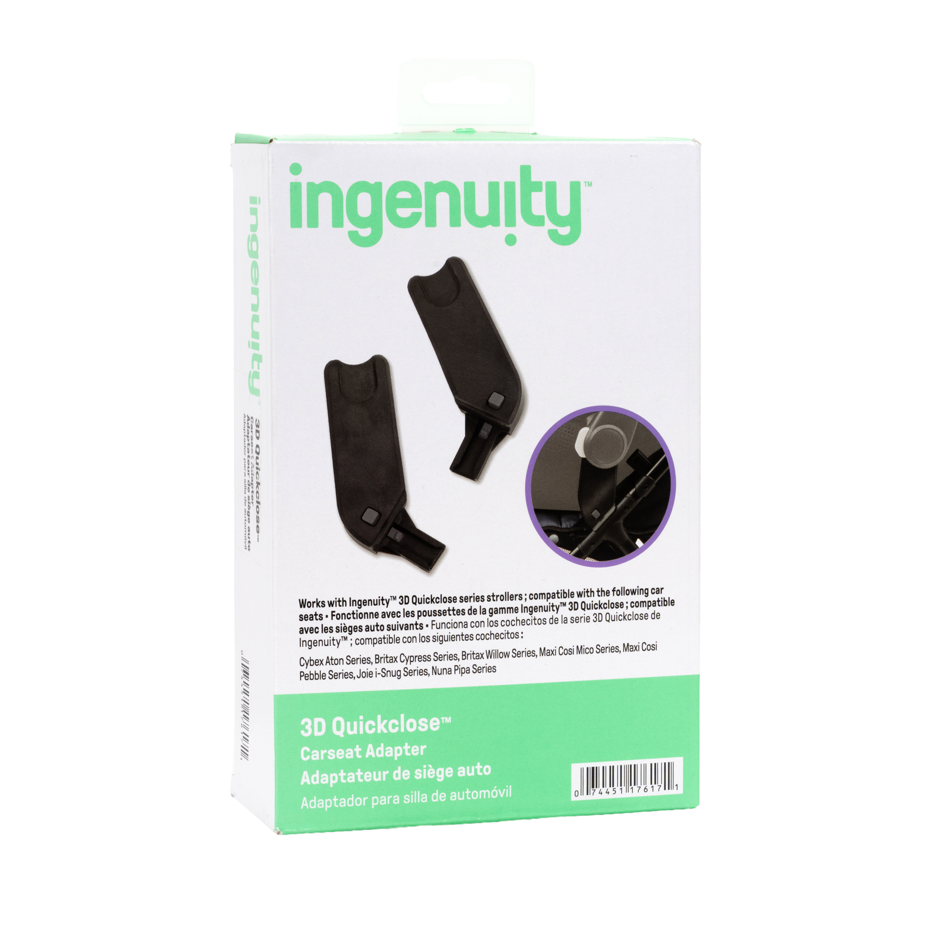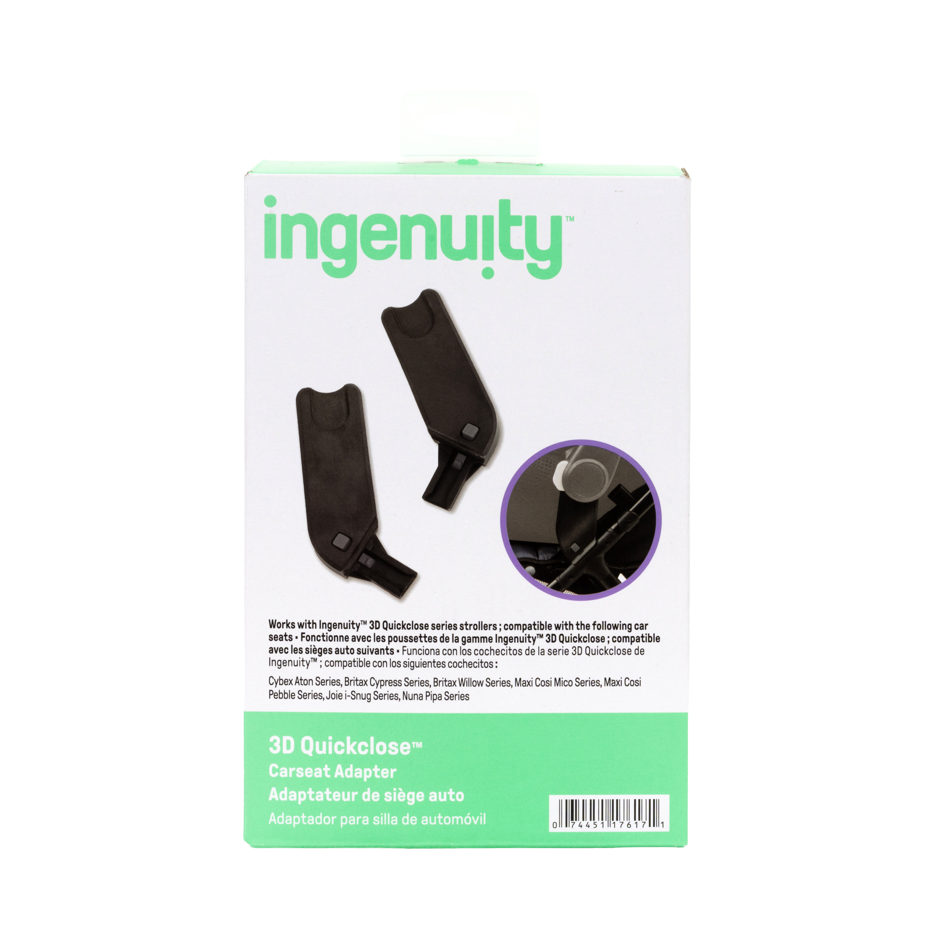 | Product Description | Turn your 3D Quickclose™ Series Stroller into a convenient travel system with the Ingenuity 3D Quickclose™ Carseat Adapter. Designed specifically for the 3D Quickclose™ Stroller Series, these tower-style adapters provide a secure, easy way to attach compatible infant car seats, helping you move seamlessly from car to stroller without disturbing your little one. The tower adapter design offers a stable connection point for many leading infant car seat brands. Installation is simple and tool-free, so you can click in and head out with confidence. Whether you’re navigating busy streets, airports, or everyday errands, the 3D Quickclose™ Carseat Adapter helps create a travel-ready solution that feels like a complete travel system—without the bulk. Compatible with Ingenuity 3D Quickclose™ Stroller Series.