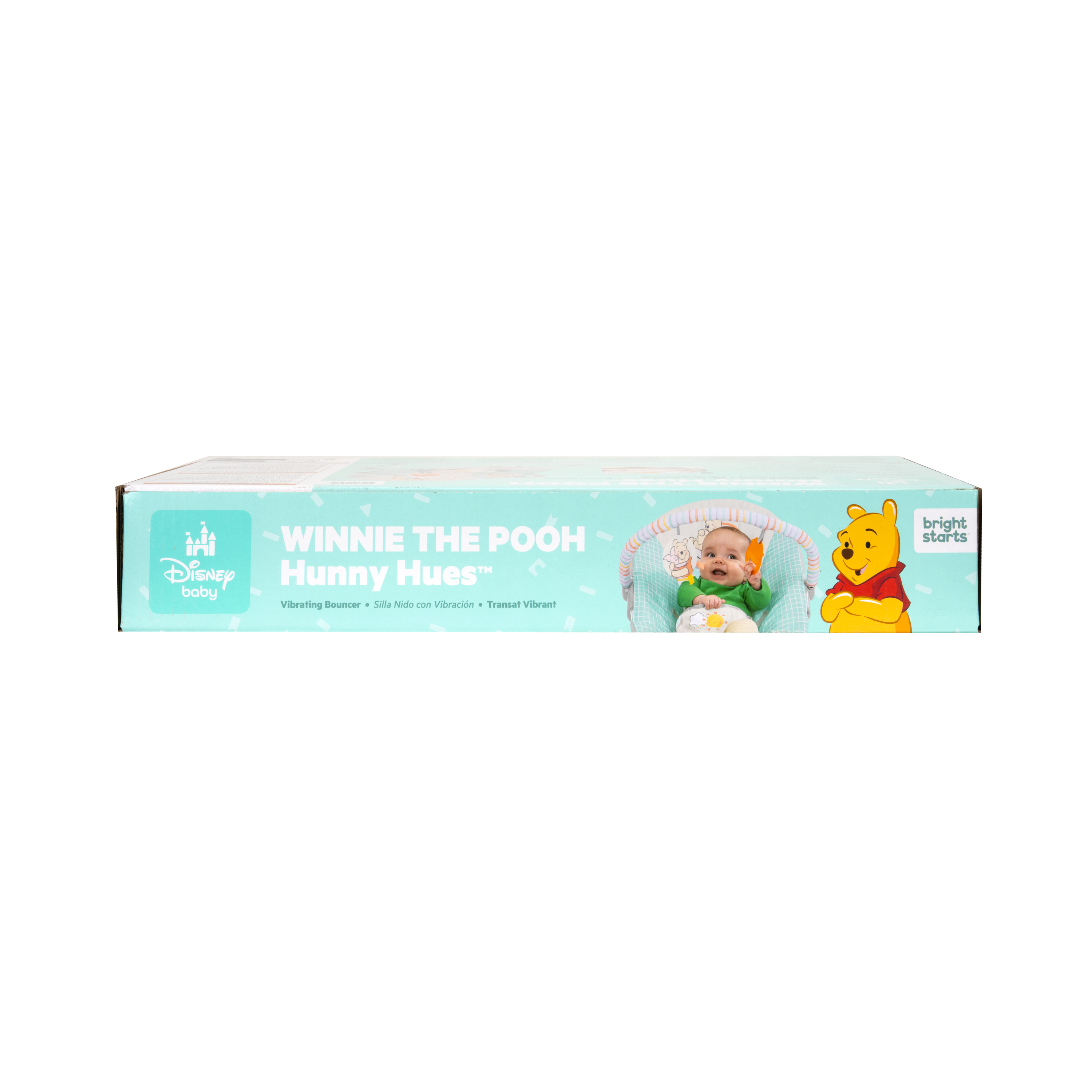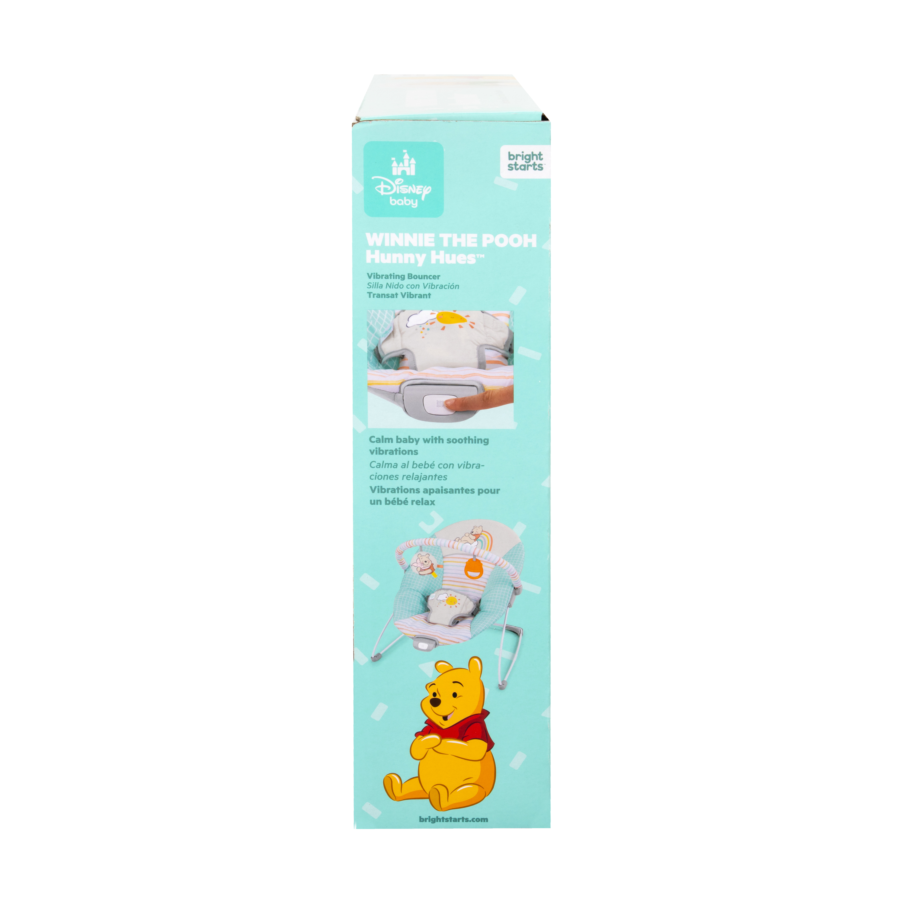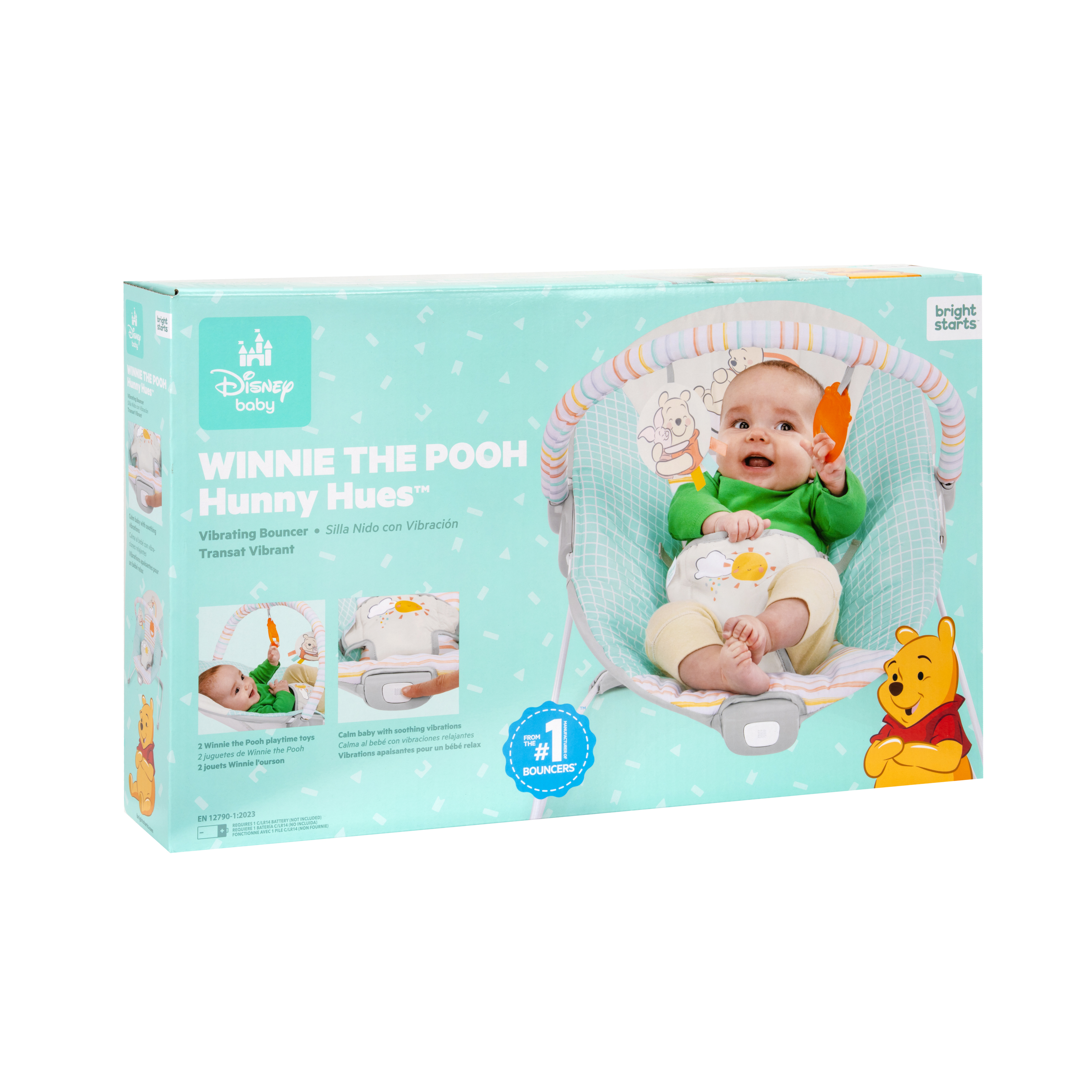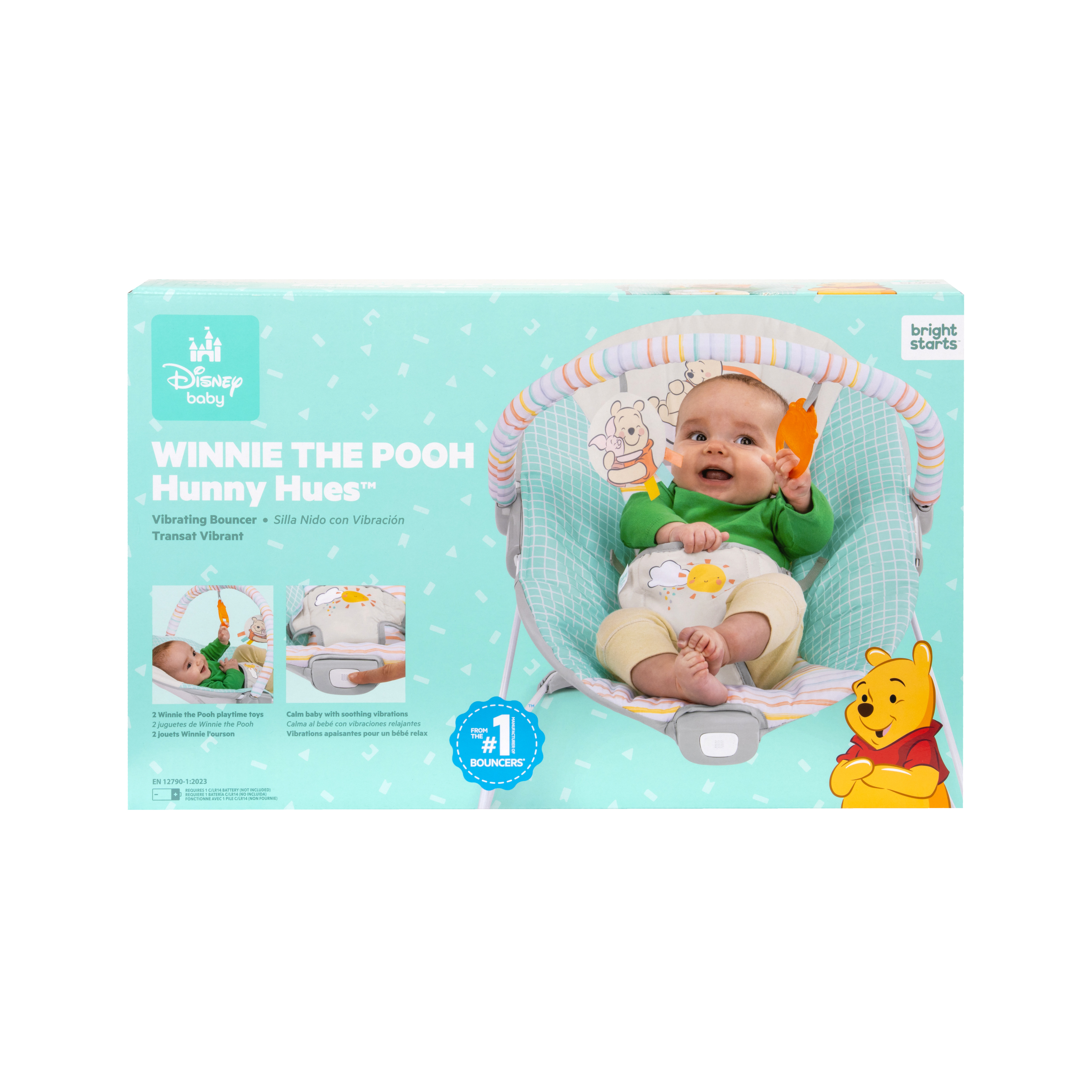 - Disney Baby Winnie the Pooh Hunny Hues Bouncer by Bright Starts invites baby into a world of Pooh’s classic charm, with two engaging Pooh-themed hanging toys