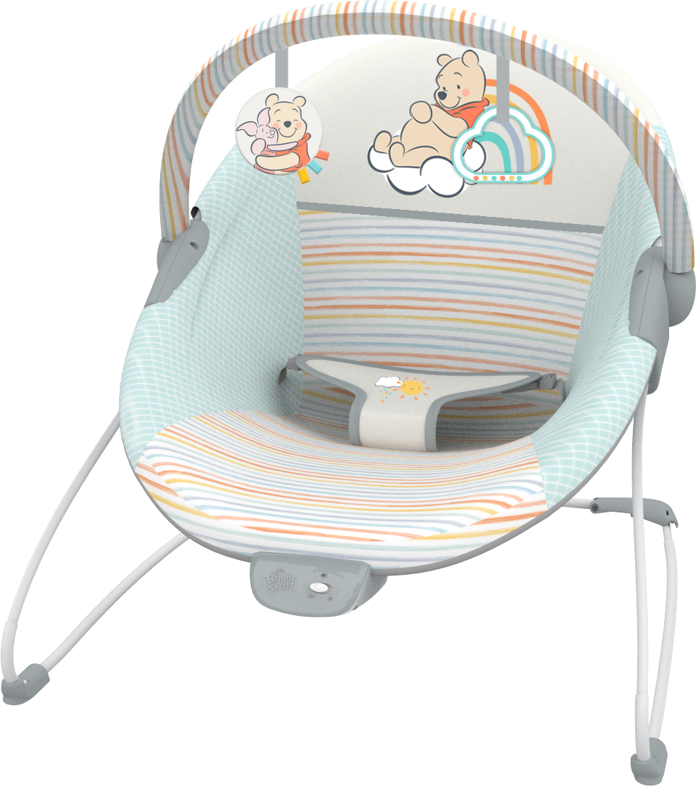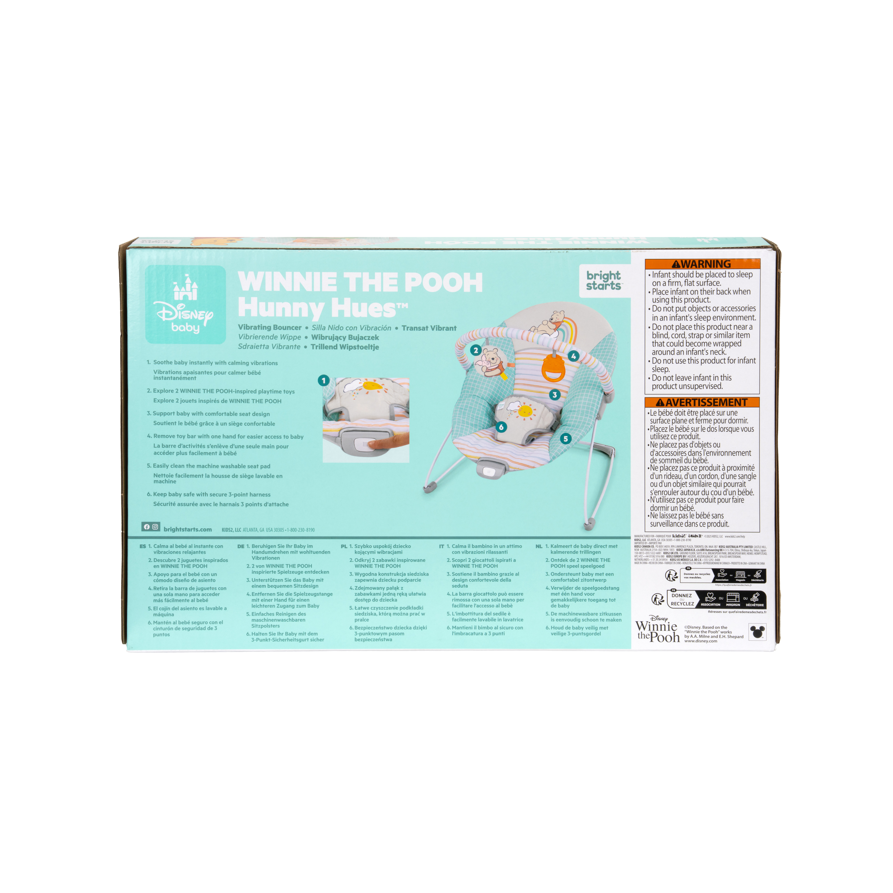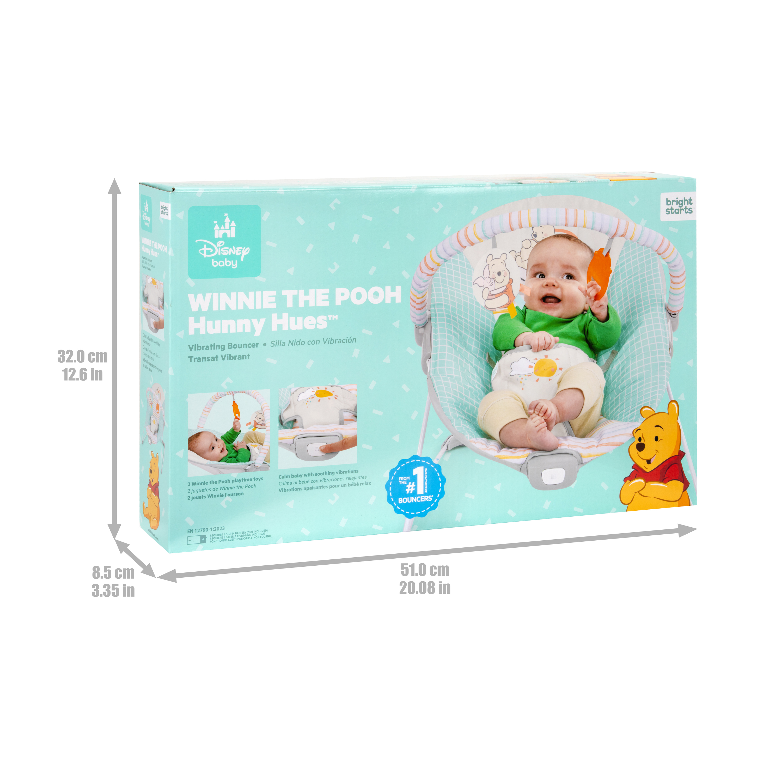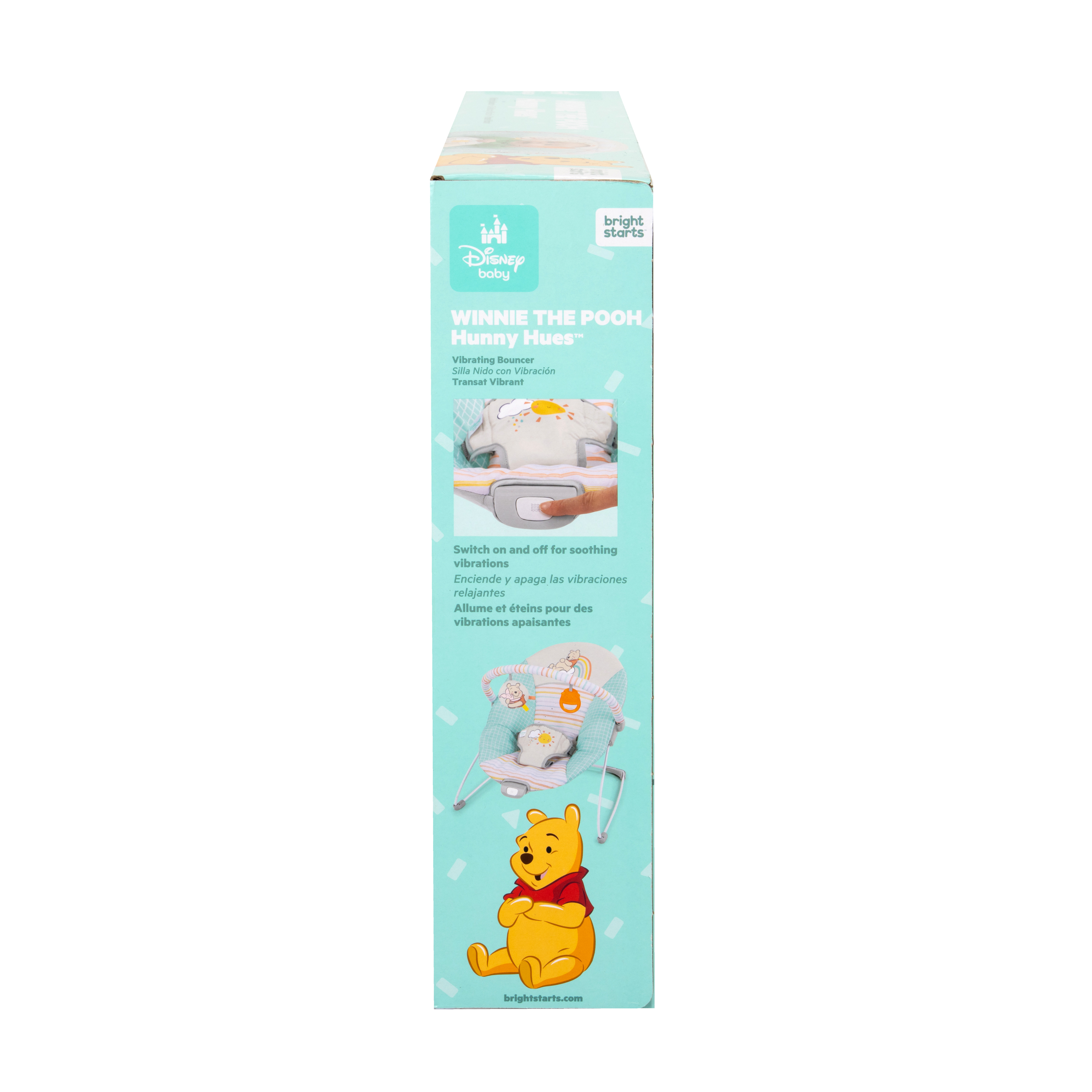 - Disney Baby Winnie the Pooh Hunny Hues Bouncer by Bright Starts invites baby into a world of Pooh’s classic charm, with two engaging Pooh-themed hanging toys