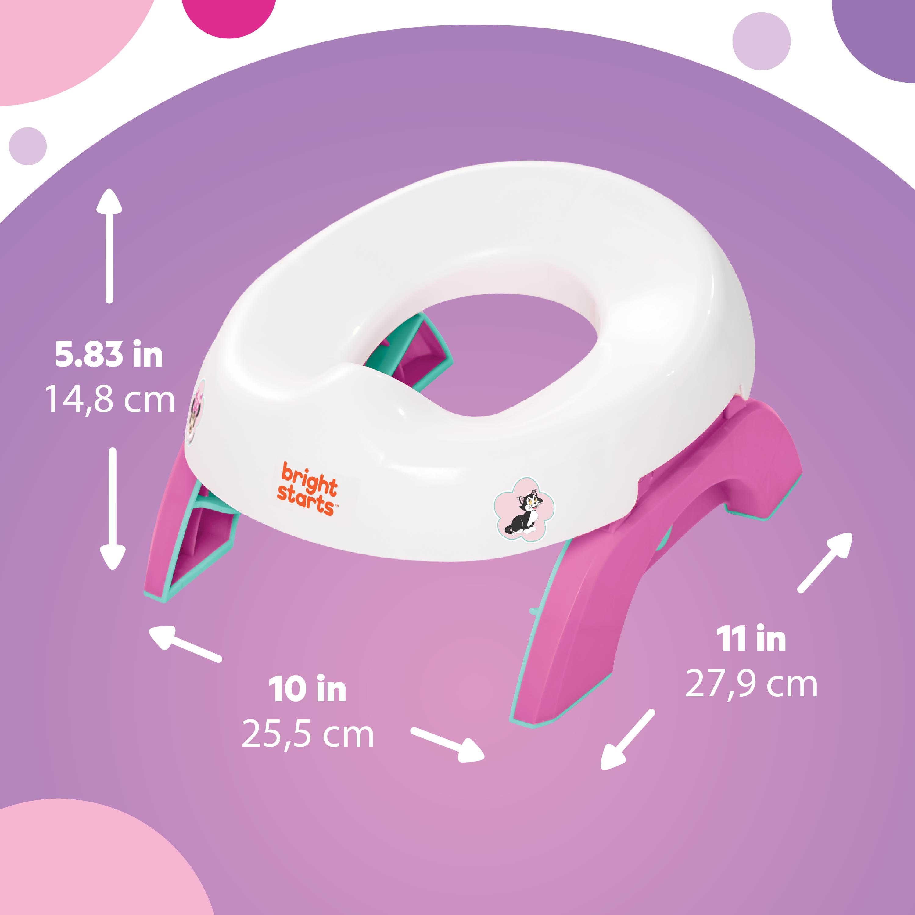 - Folds flat and fits easily into the included storage bag for hassle-free travel and storage; lightweight design weighs under a pound; perfect for potty training anywhere