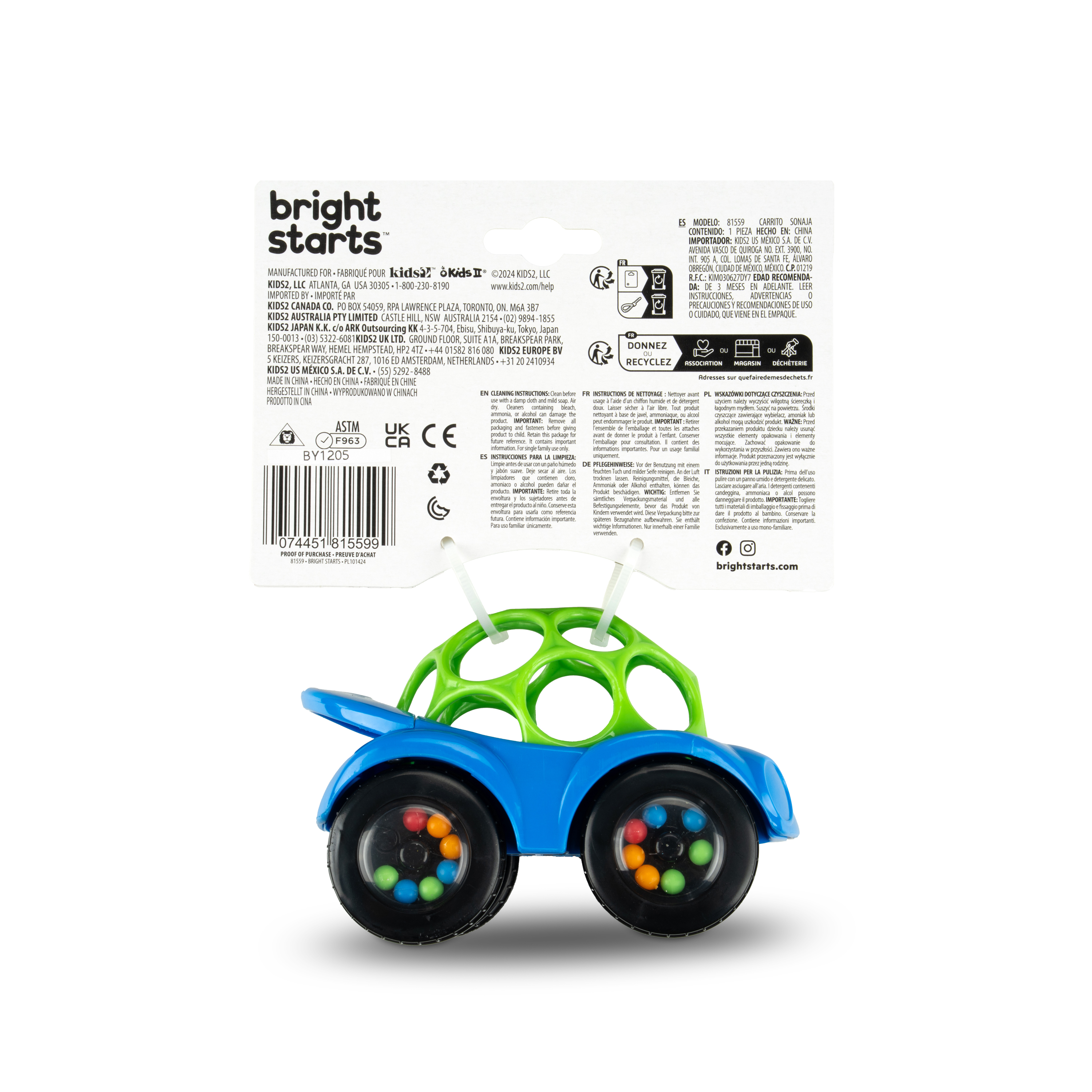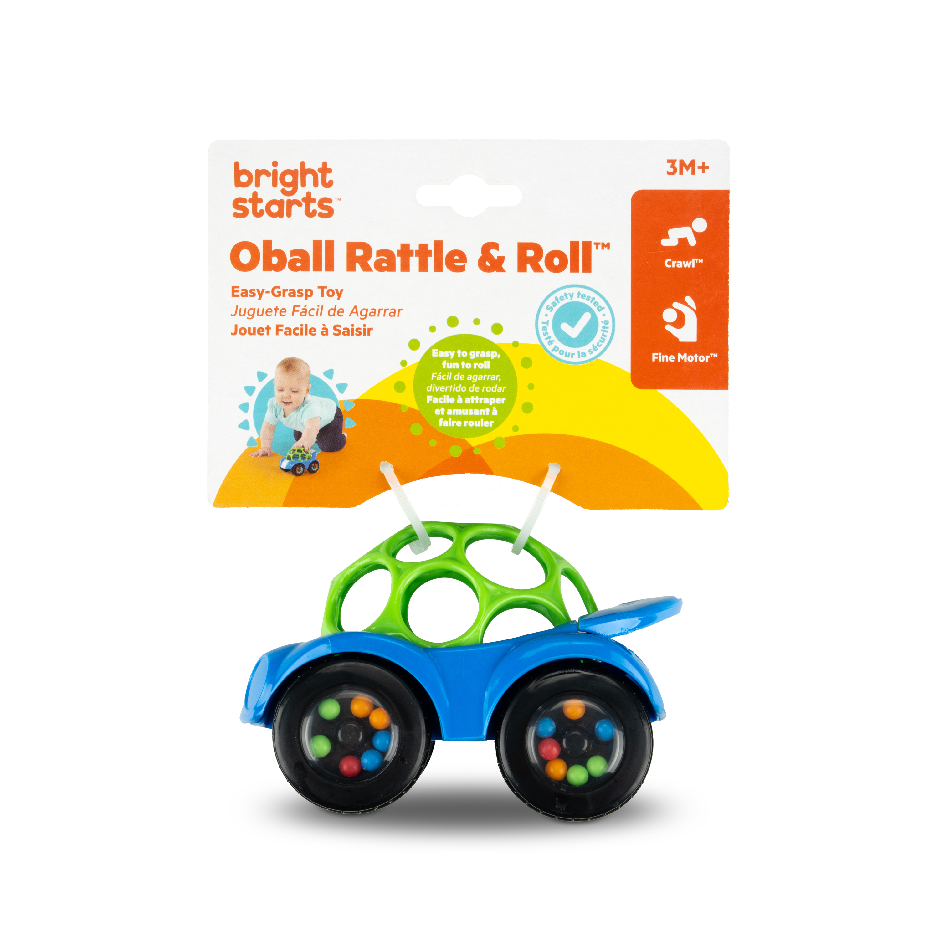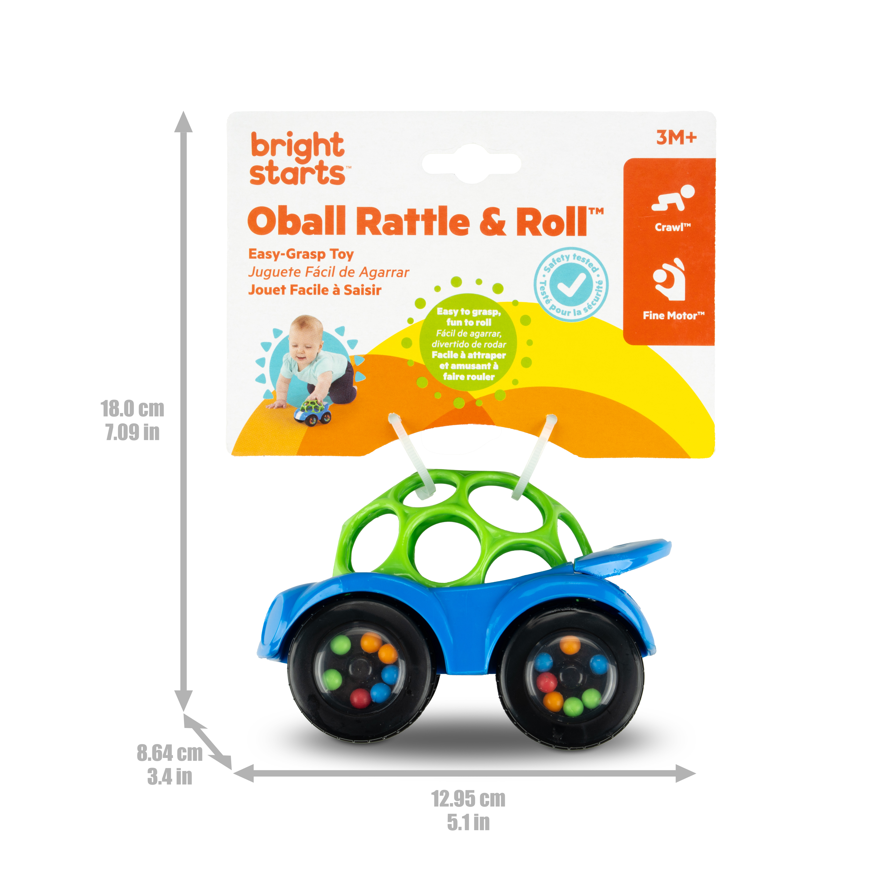 | Product Description | On your marks, get set… crawl! The Oball Rattle & Roll car will transform the living room into baby’s personal highway of fun. No need for gas, this race car toy is fueled by baby’s imagination as he vrooms and zooms all over the place! With soft, flexible holes, the unique design encourages the development of fine motor skills by making it easy for baby to push and go. As your little speed racer crawls along with his vehicle, he’ll love the clickity-clack of the bead-filled tires. This virtually indestructible car is made for lifelong fun. |
