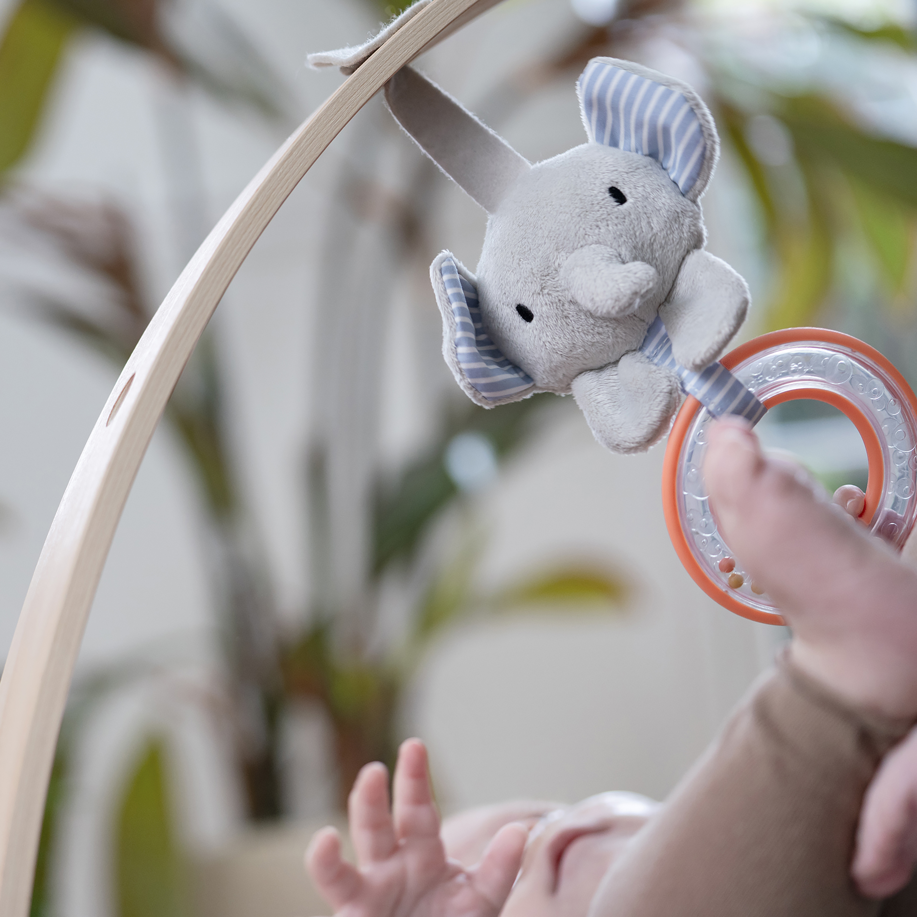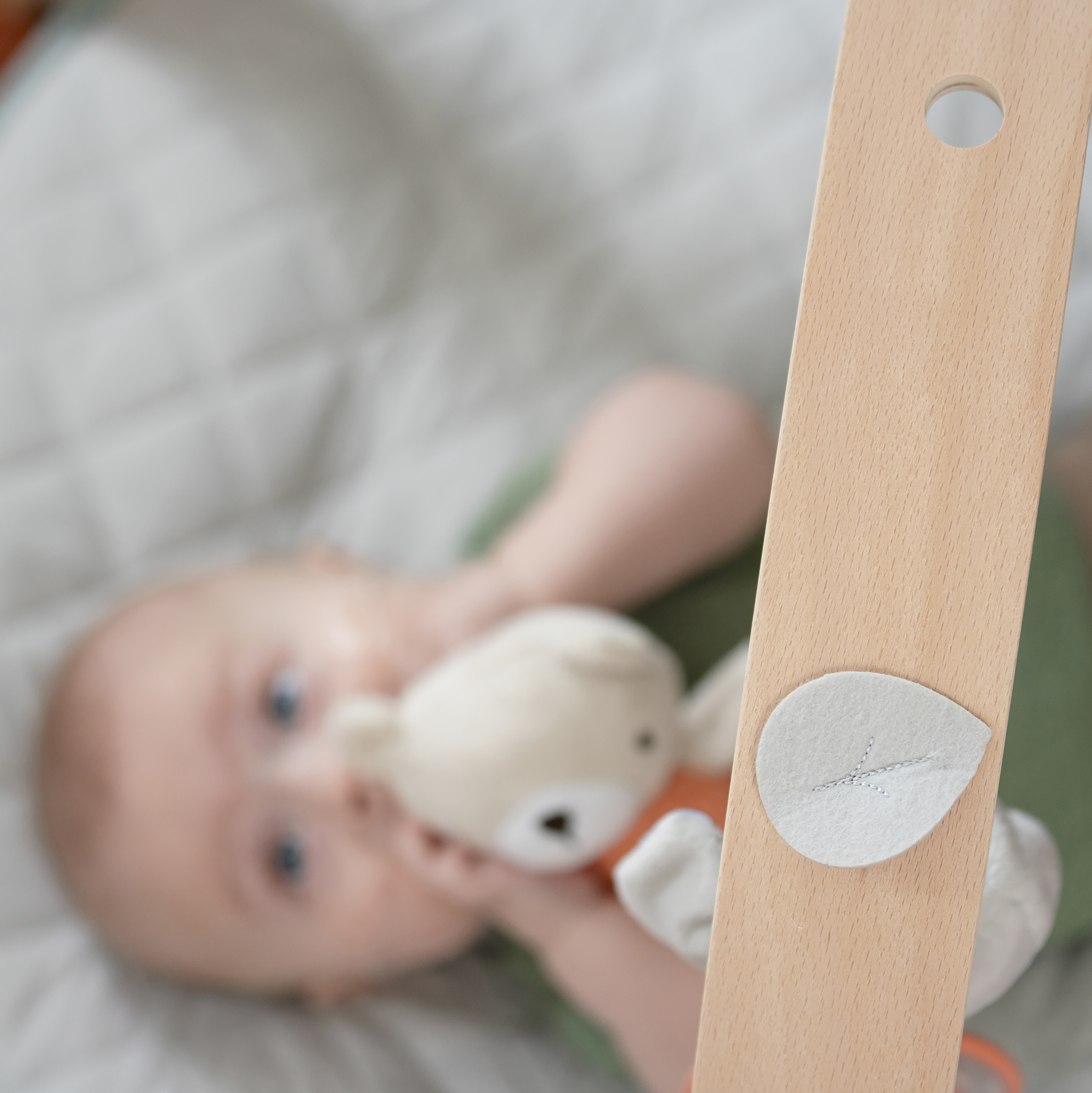 - Las barras de madera SlimFold y los juguetes extraíbles se pliegan para guardarse