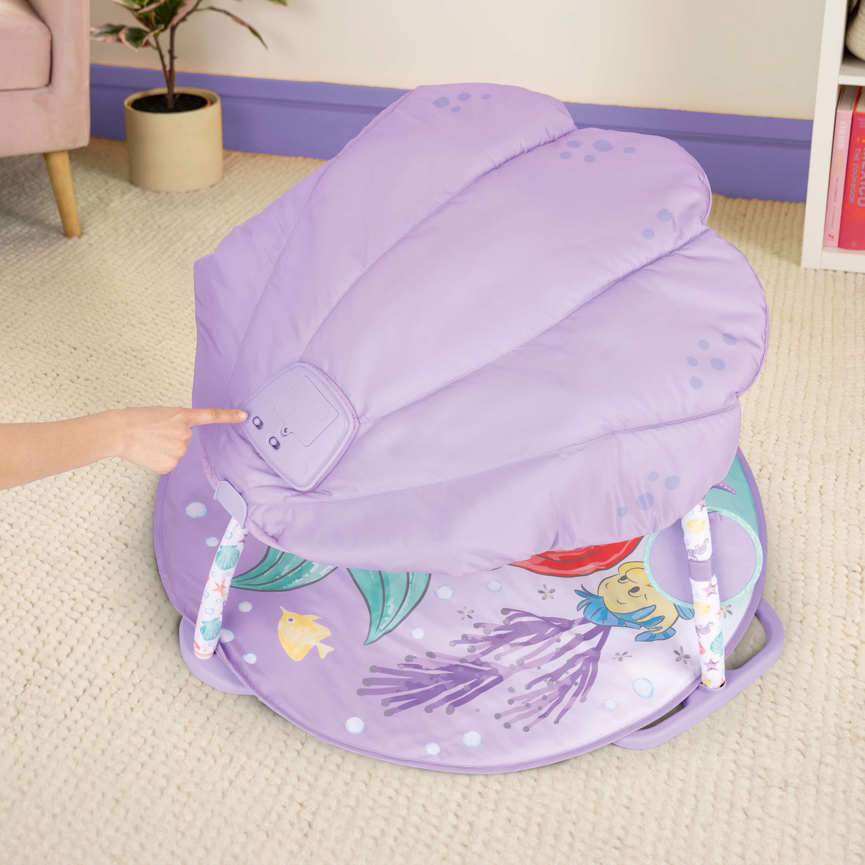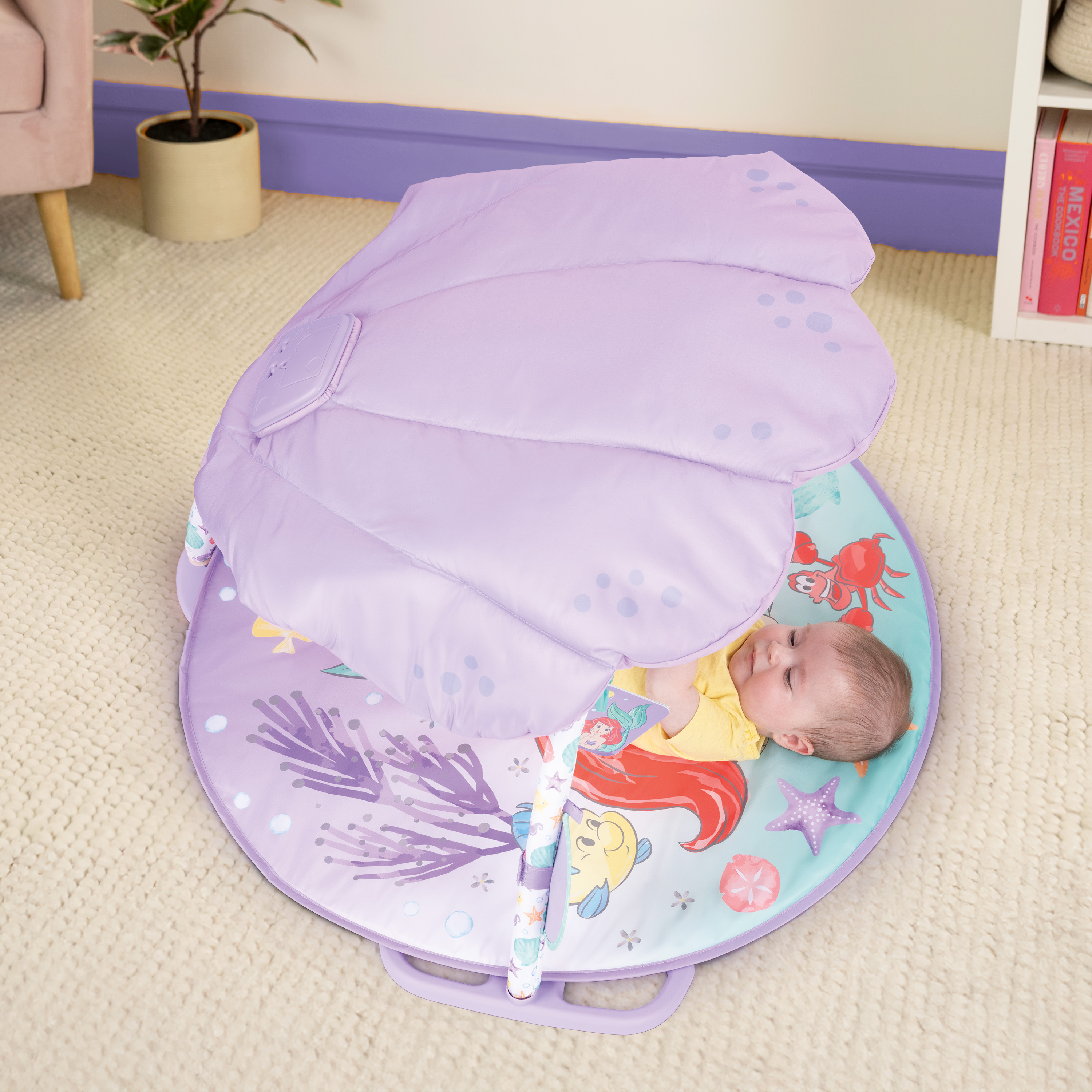 - Manta La sirenita, de Disney, con luces: A tu bebé le encantará el espectáculo bioluminiscente que disfrutará bajo su concha-dosel arcoíris. Sus luces resplandecientes cautivarán al bebé y crearán una experiencia inmersiva