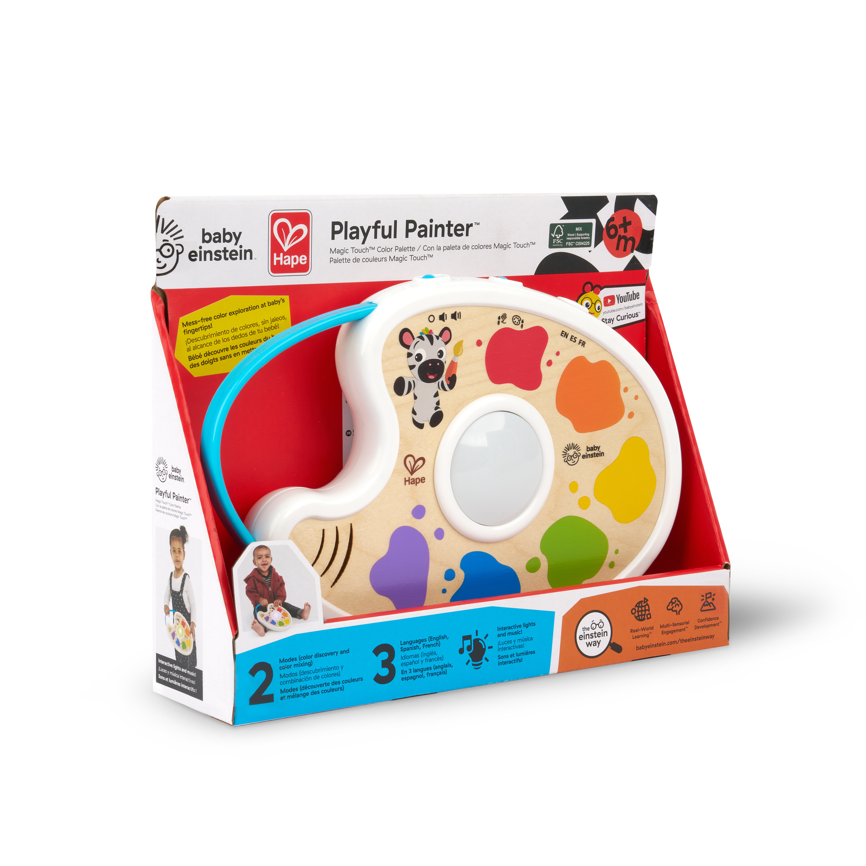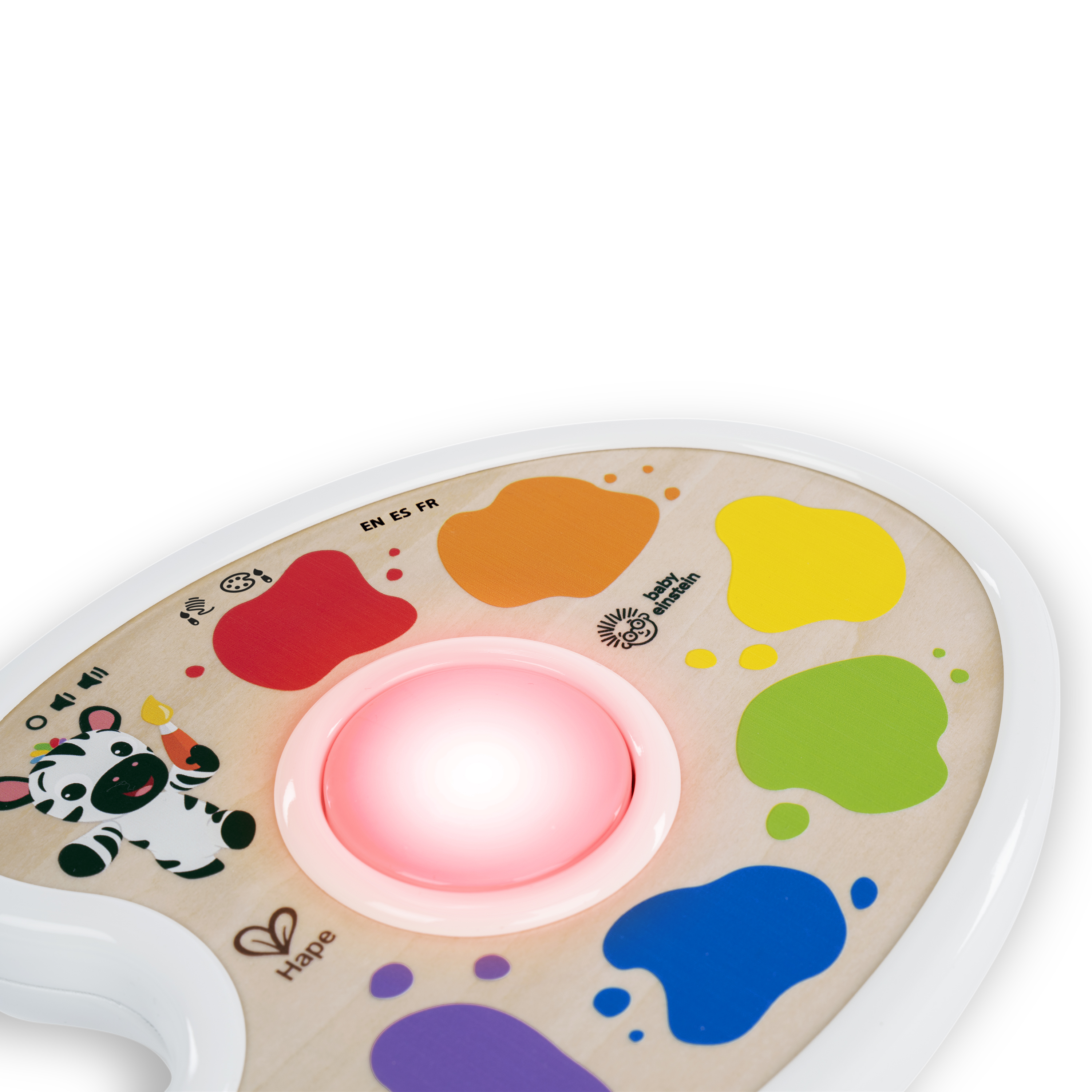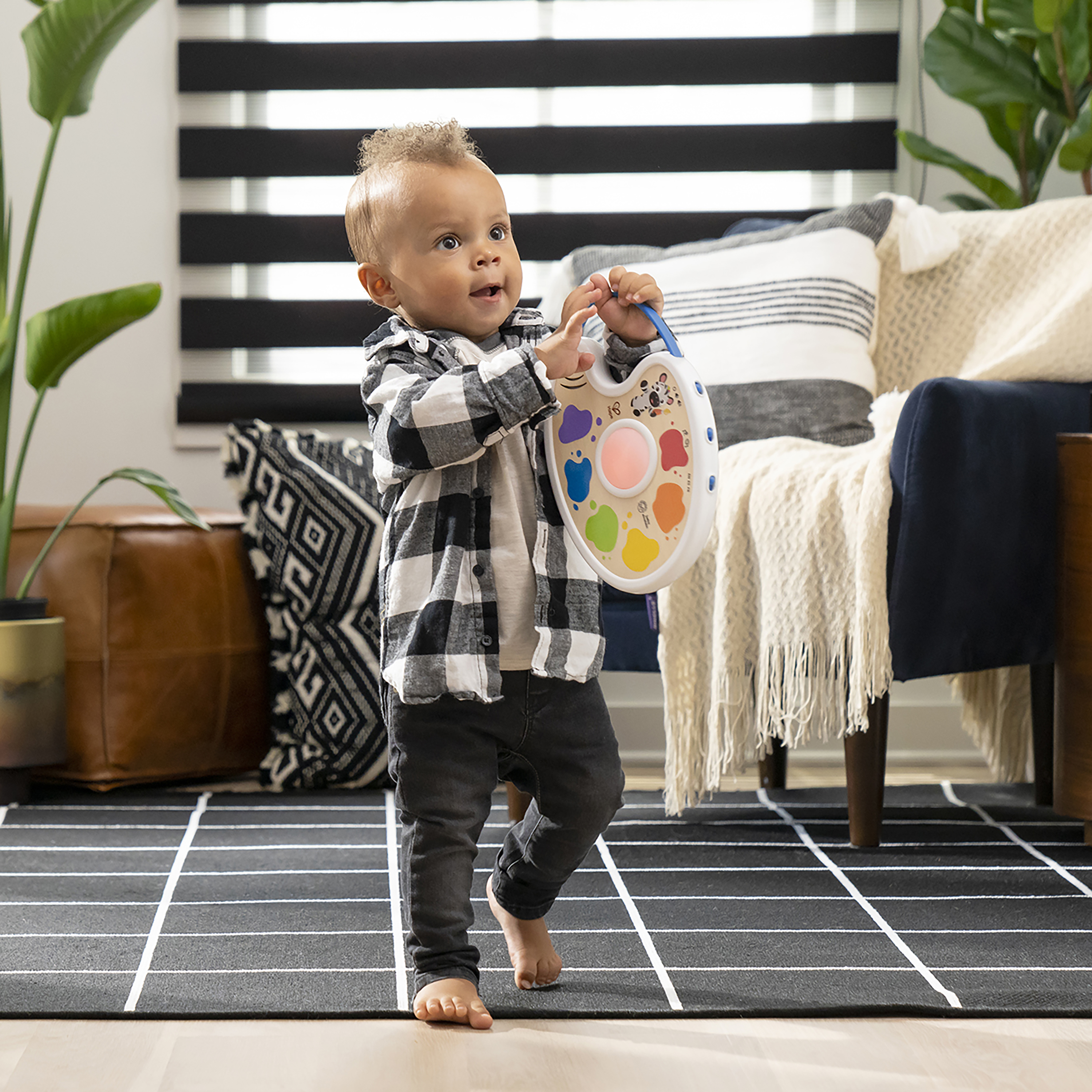 - 2 modos de juego creativo. Pulsa cada color para presentar los colores primarios y secundarios, en el modo de Exploración de colores, o cambia al Modo de mezcla de colores para que el bebé disfrute de sus luces interactivas que combinan varios colores y su música.