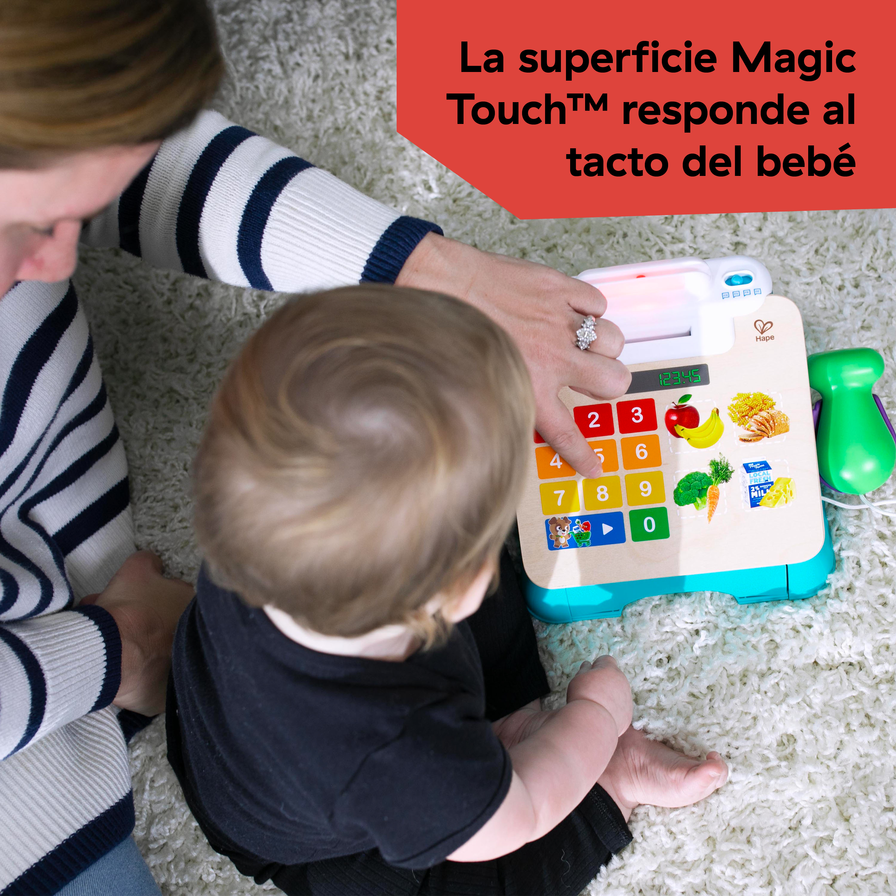 - La caja registradora Magic Touch de Baby Einstein es un juguete para el juego de simulación con luces, música, sonidos de compras y frases que favorecen el aprendizaje del mundo real y el desarrollo de la motricidad fina desde los 9 meses hasta los 4 años.