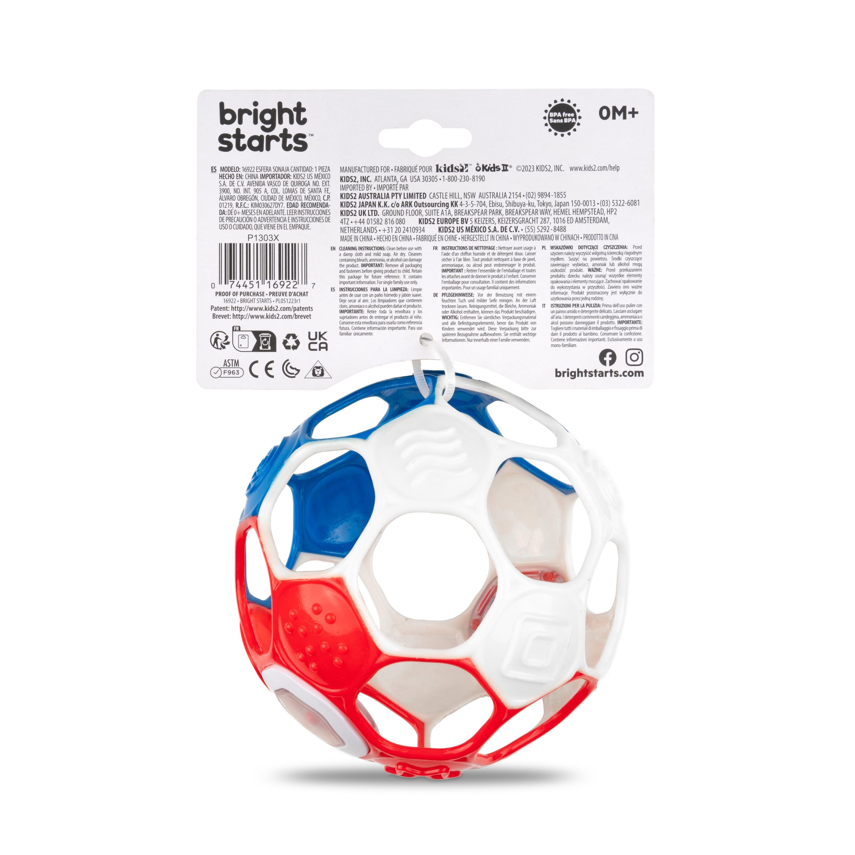 Pelota de fútbol sonora Oball Grippin' Goals de Bright Starts - Rojo, Blanco y Azul