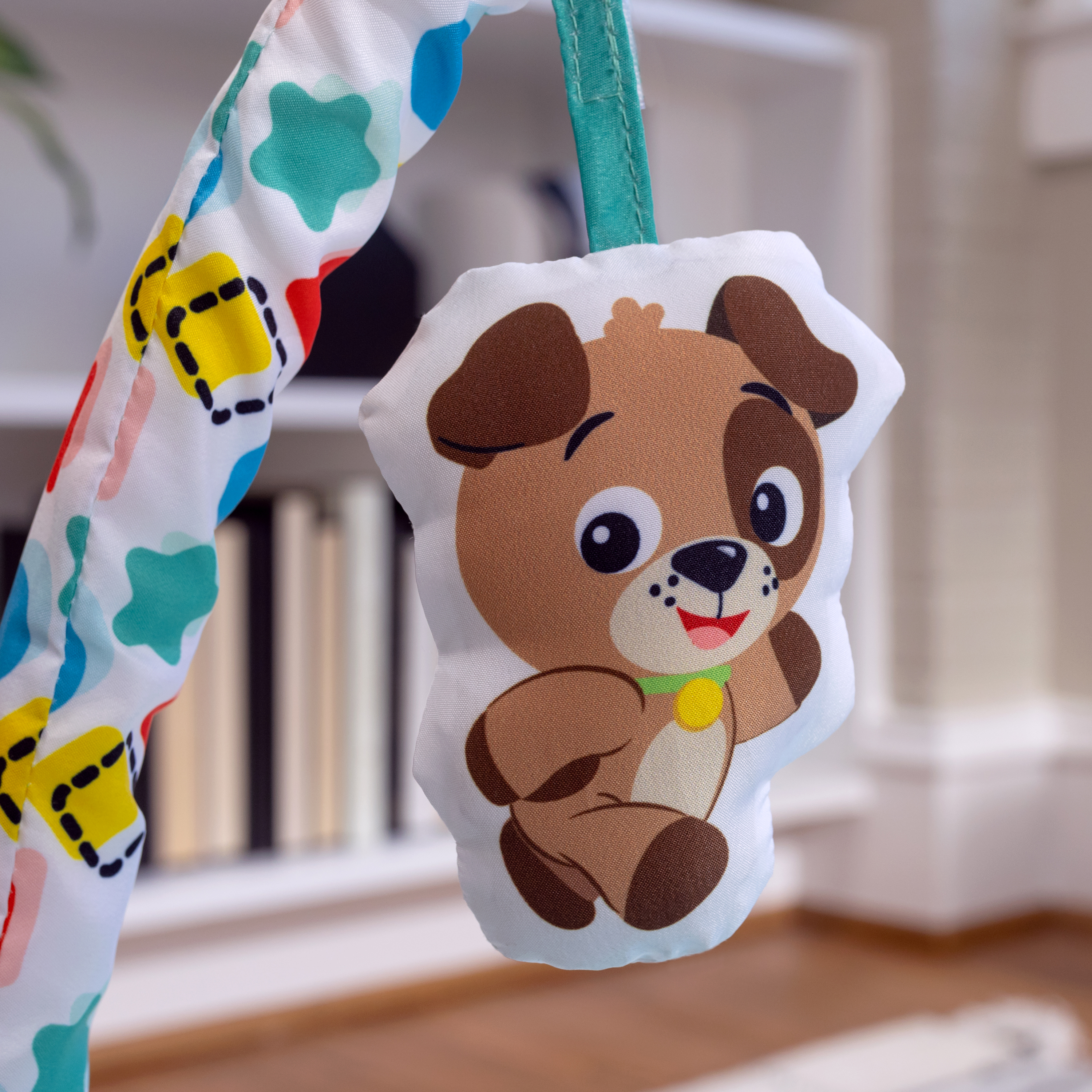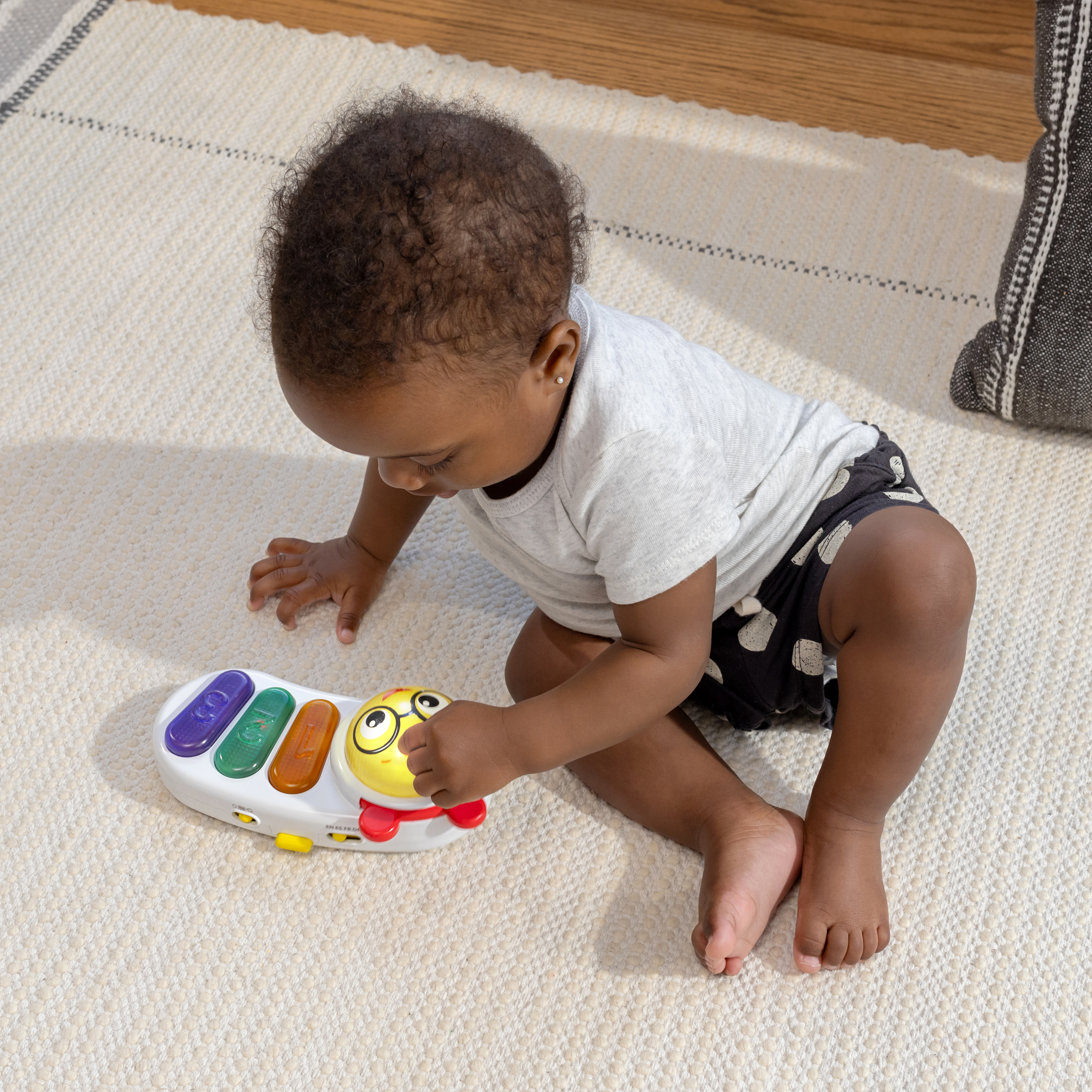 - Asiento de actividades: involucra al bebé mientras aprende; el piano desmontable de la oruga Cal reproduce melodías y enseña los números y los colores hasta en 4 idiomas; incluye una barra de juguetes, juguetes colgantes, un explotador de burbujas y engranajes giratorios