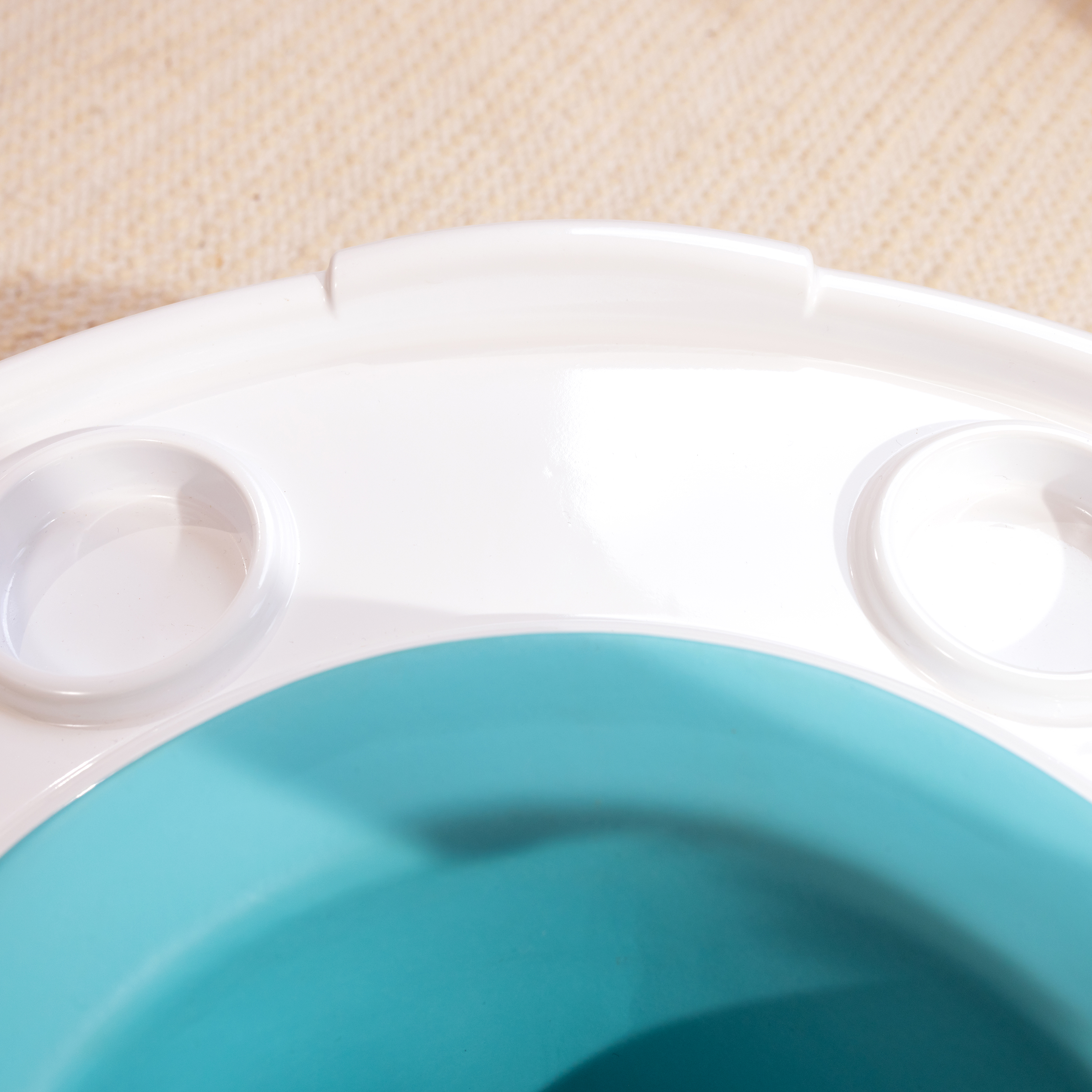 - Asiento de apoyo en el suelo: ofrece al bebé un lugar seguro para sentarse o merendar girando la bandeja 360 grados con 2 compartimentos incorporados; la bandeja desmontable para la merienda no contiene BPA y se puede meter en el lavavajillas