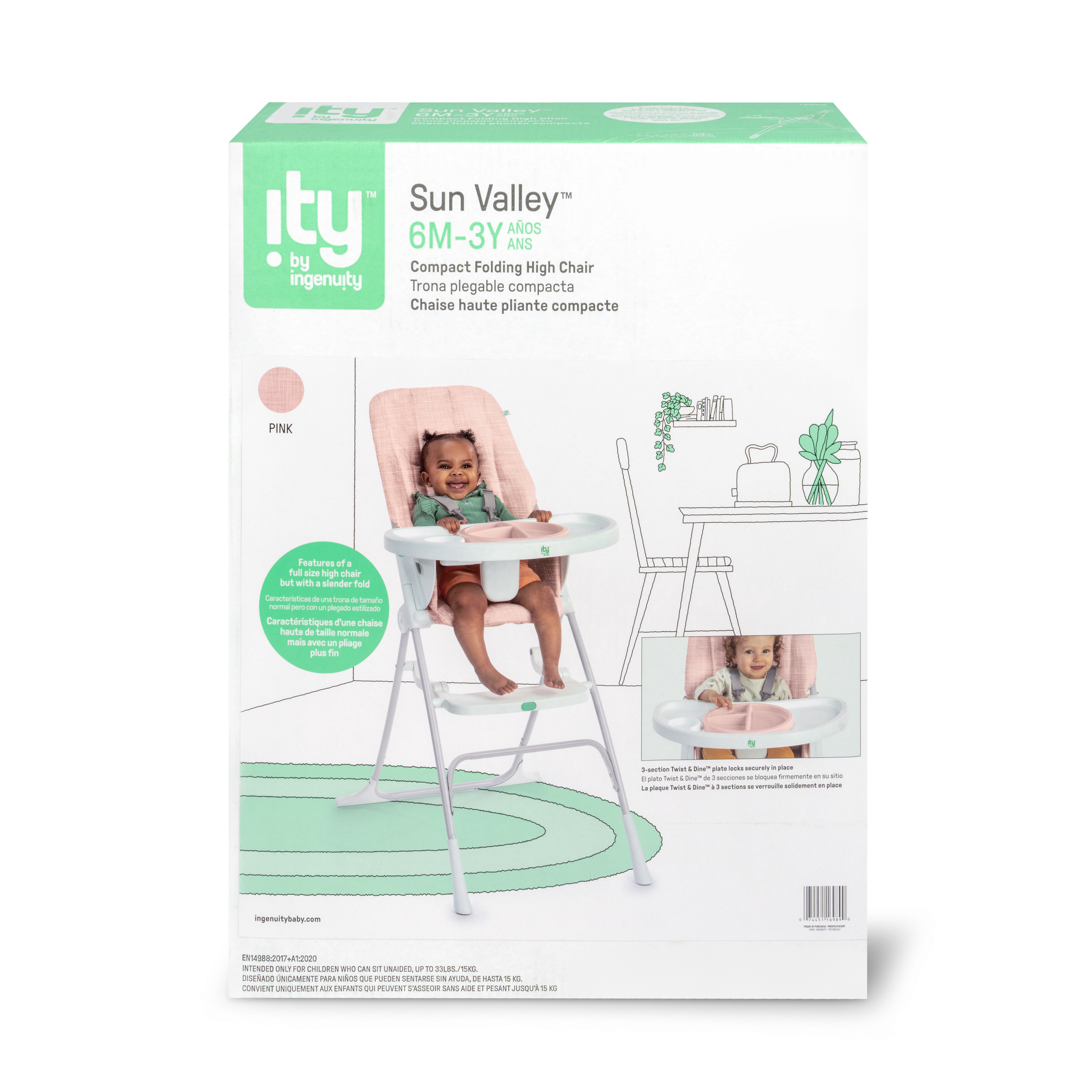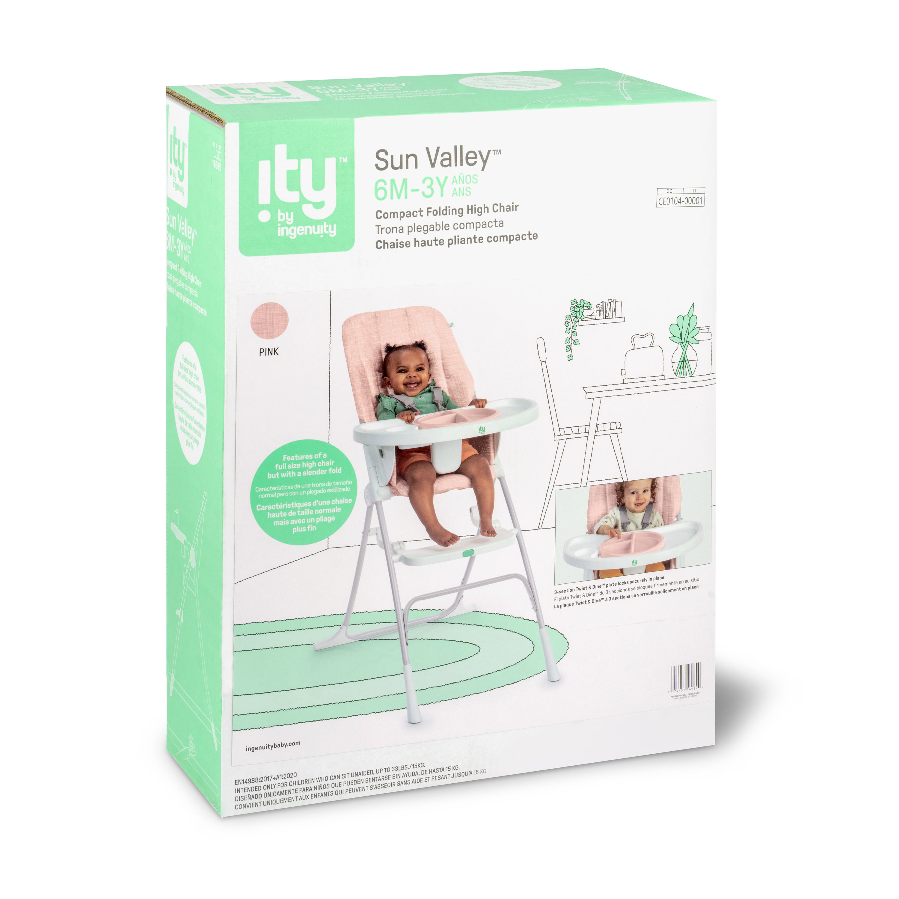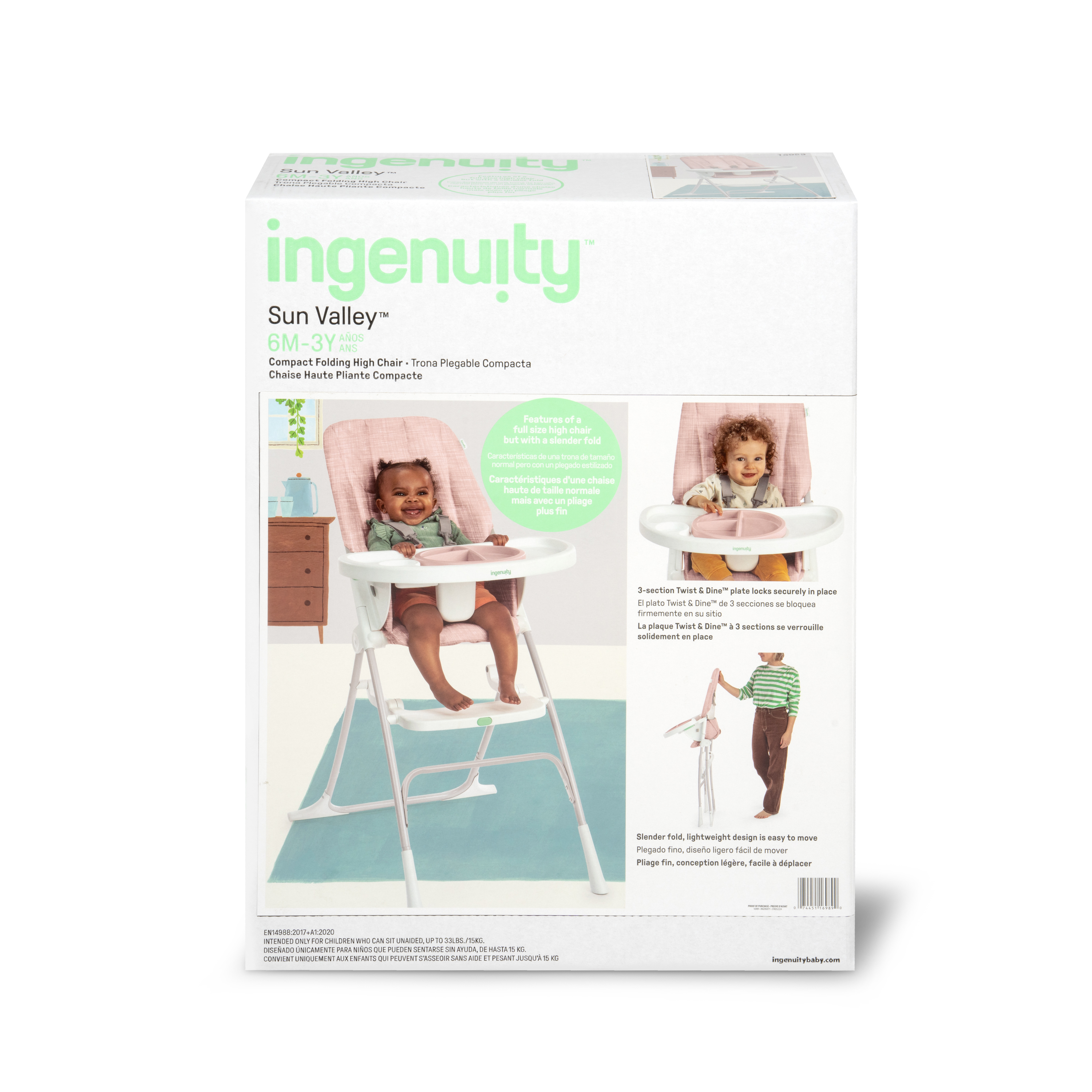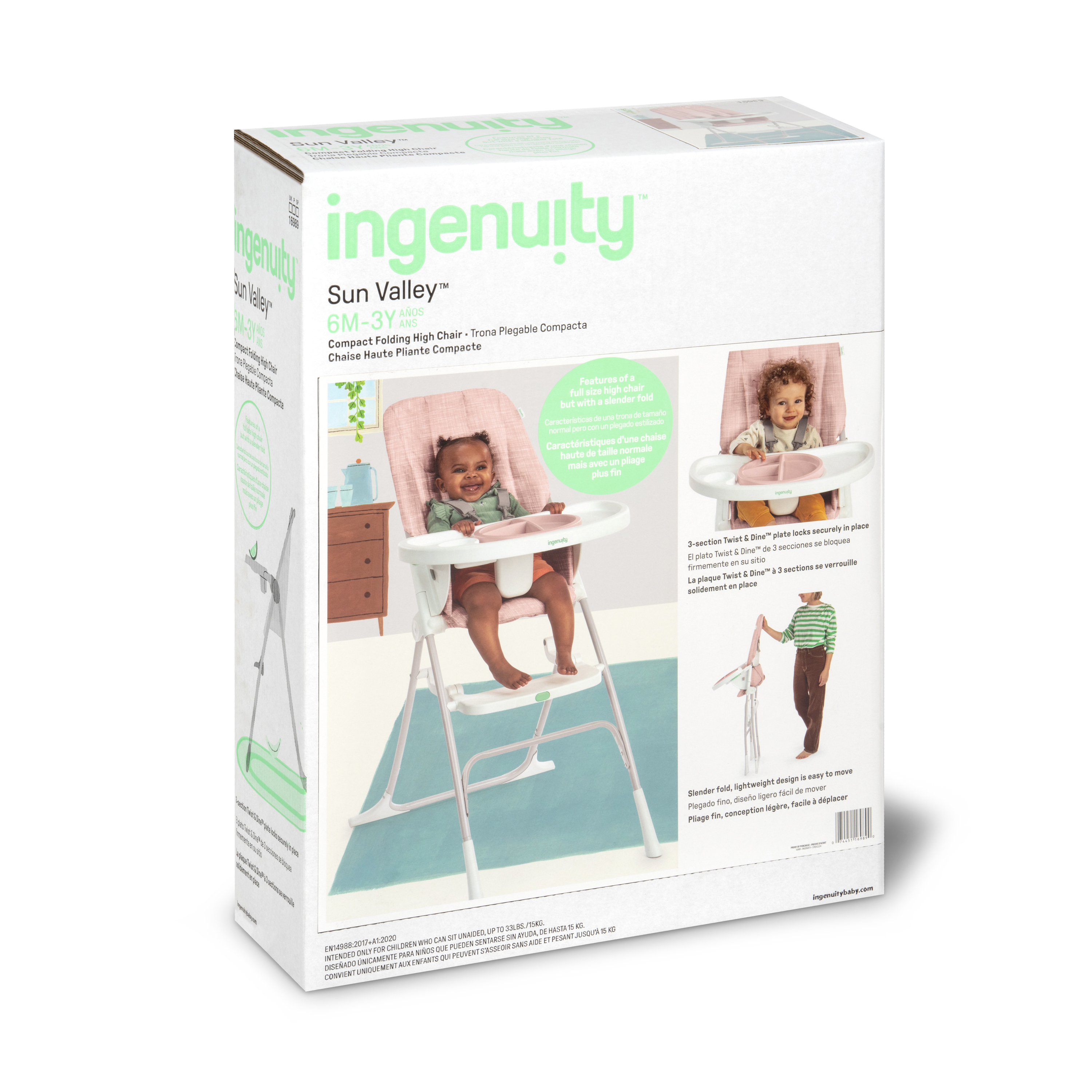- Cuando un bebé llega al mundo, también lo hace una serie de artículos esenciales para el niño. Ahorra espacio en tu hogar y ofrece a tu bebé una mejor experiencia a la hora de comer con la trona plegable y compacta Sun Valley de Ingenuity - Rosa.