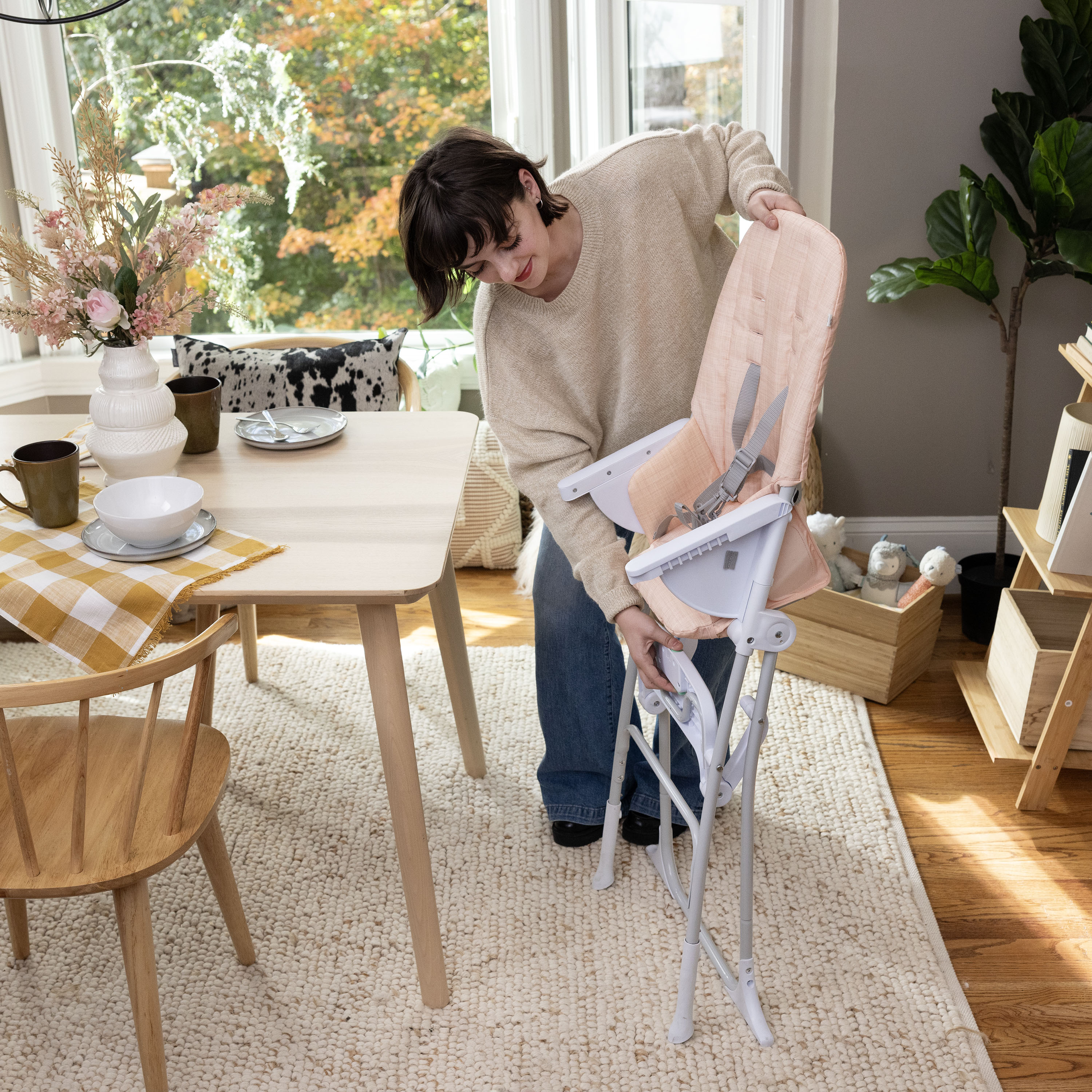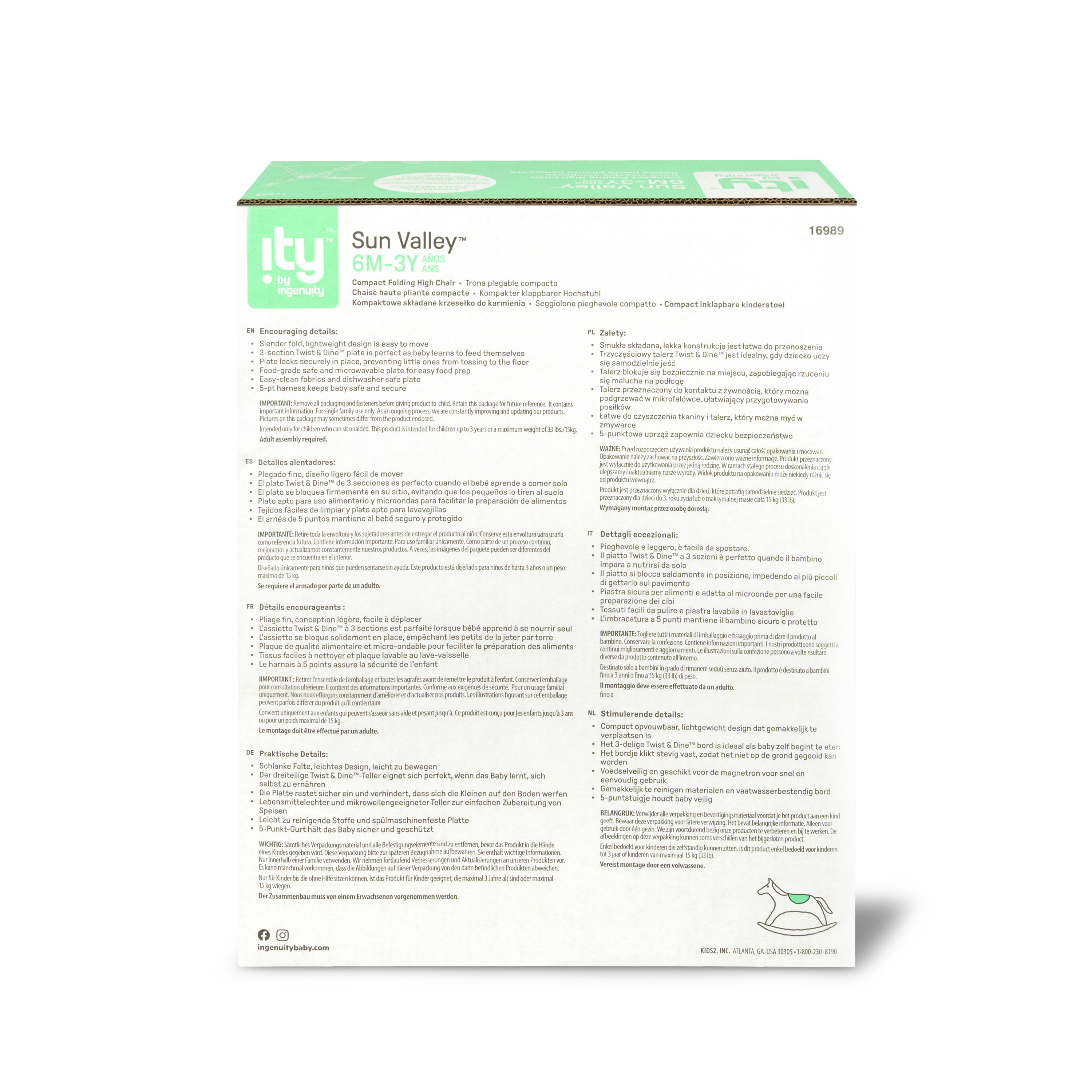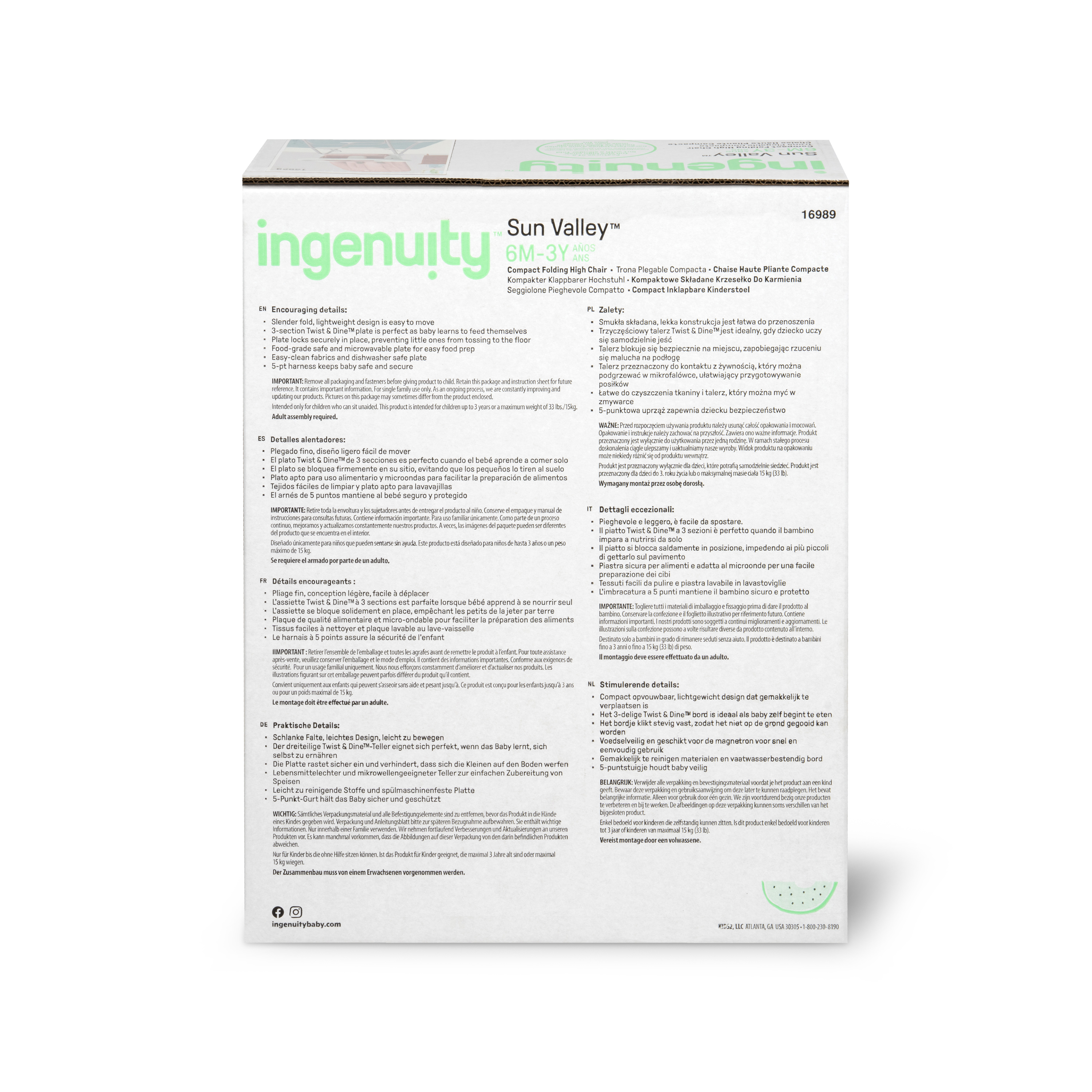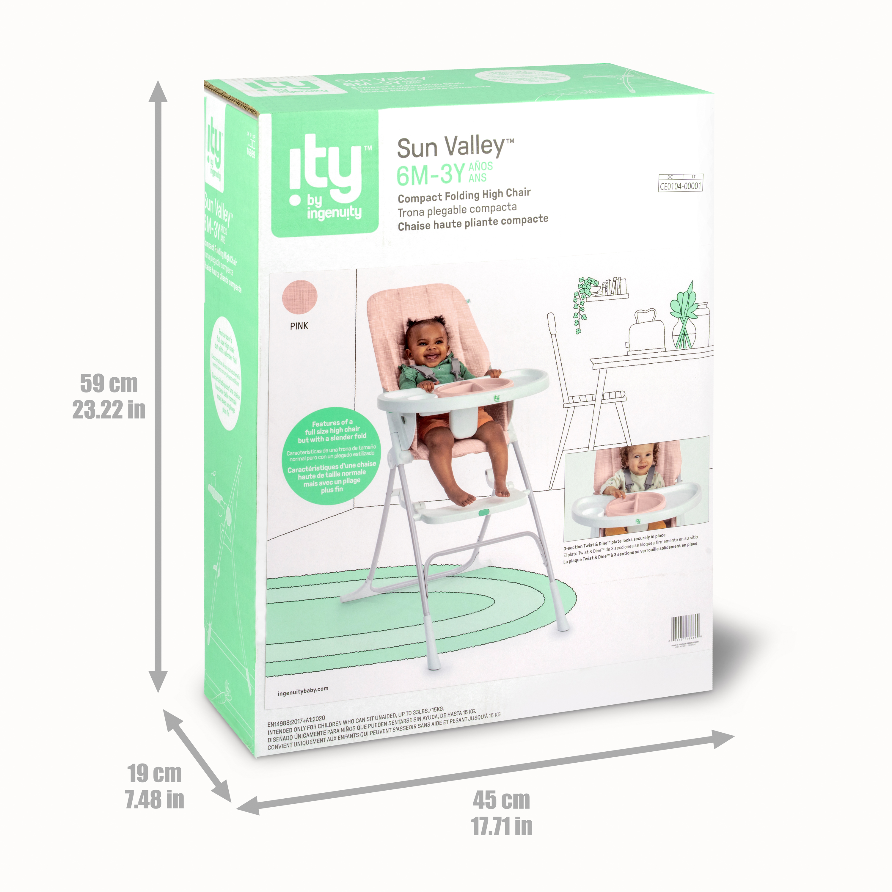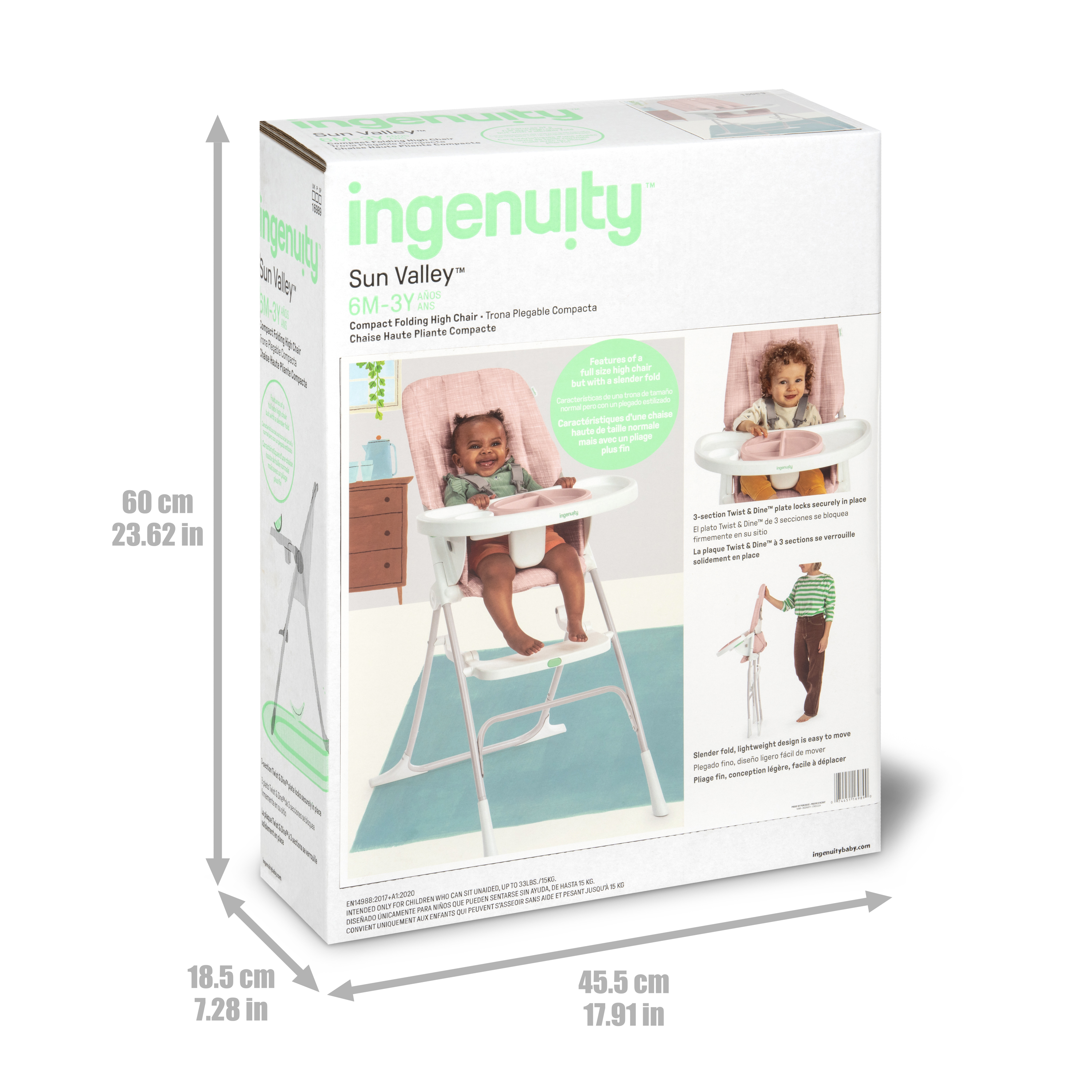 - Cuando un bebé llega al mundo, también lo hace una serie de artículos esenciales para el niño. Ahorra espacio en tu hogar y ofrece a tu bebé una mejor experiencia a la hora de comer con la trona plegable y compacta Sun Valley de Ingenuity - Rosa.