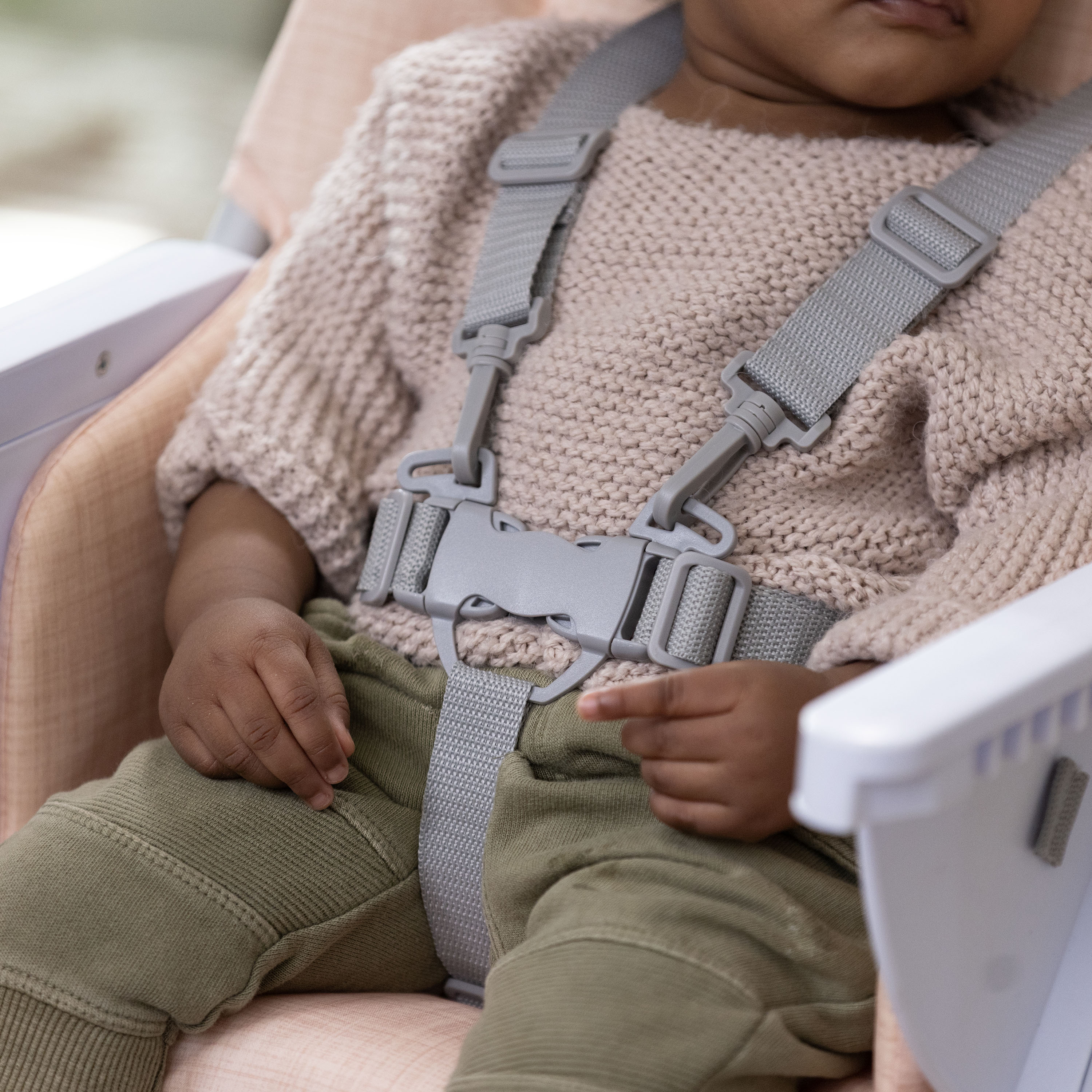 - El suave cojín del asiento es extraíble y fácil de limpiar. El bebé se mantendrá seguro y protegido con un arnés de 5 puntos de anclaje; para edades de 6 meses a 3 años, o hasta 15 kilos, lo que sea antes