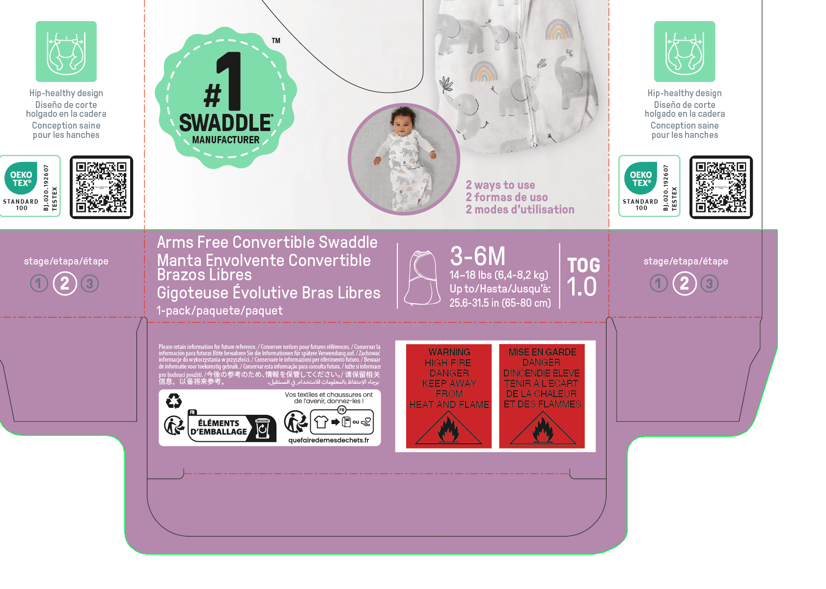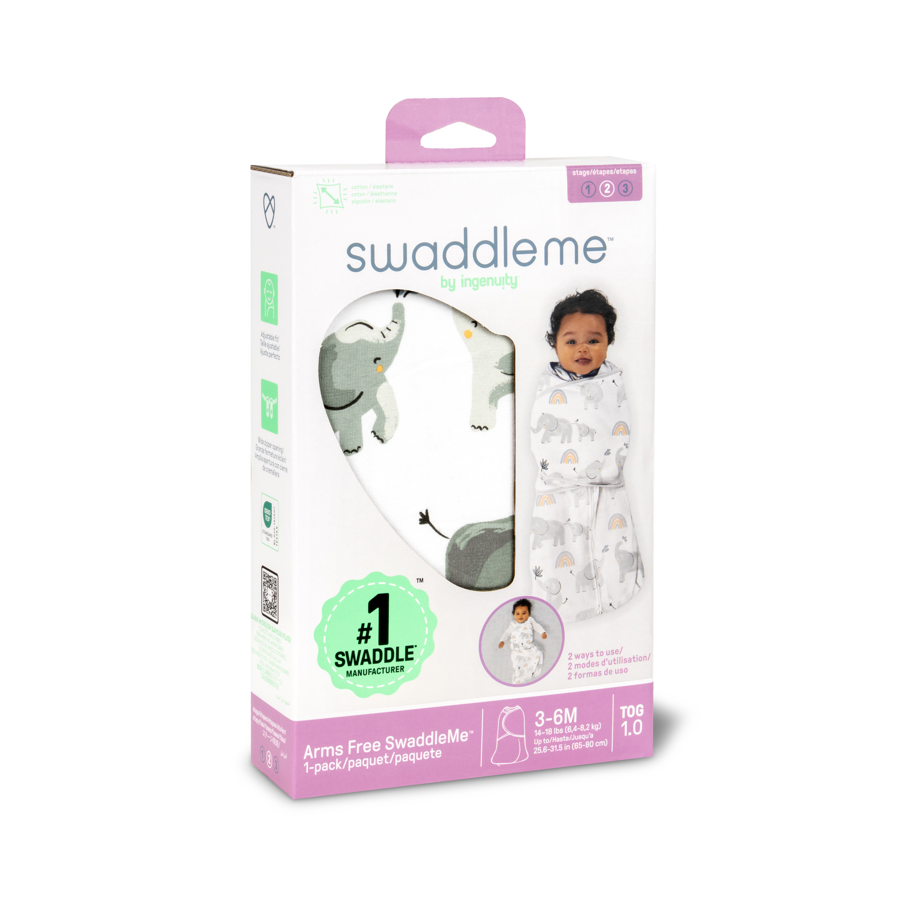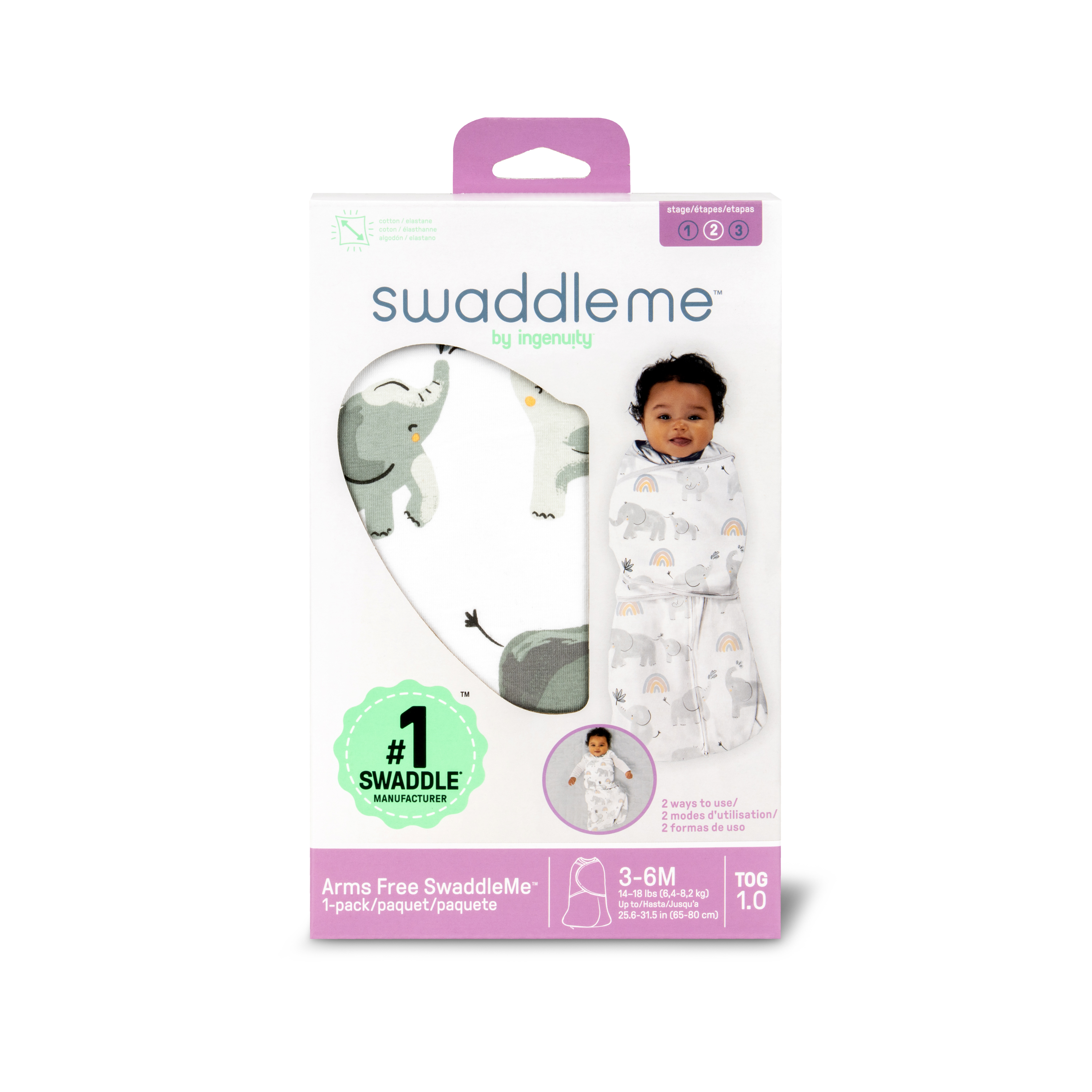 - La manta convertible Arms Free de la colección SwaddleMe de Ingenuity forma parte de la Etapa 2 de las Etapas del Sueño Saludable de SwaddleMe, pensada para bebés que están aprendiendo a rodar y a calmarse por sí mismos