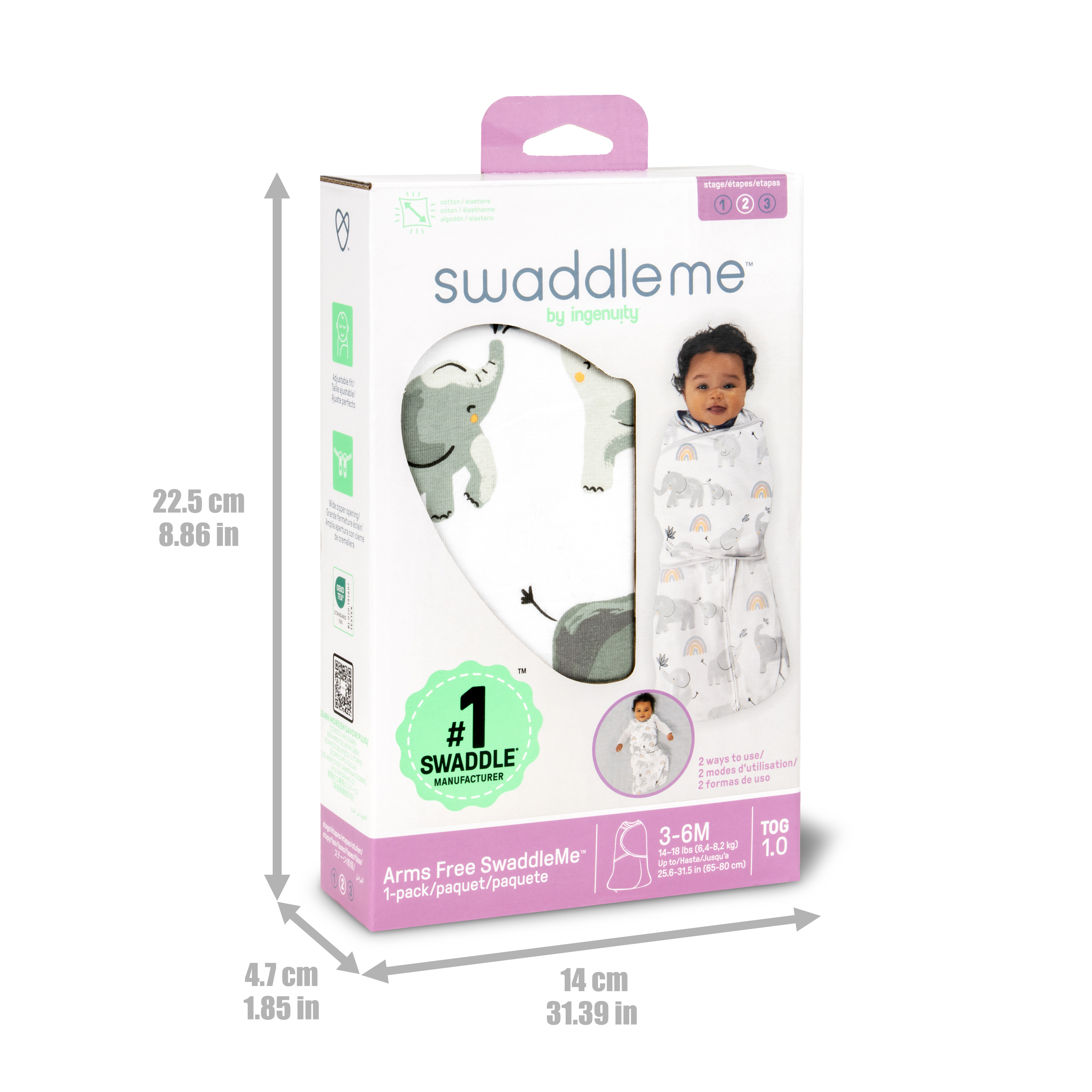 - Fácil transición con la manta convertible Arms Free de la colección SwaddleMe de Ingenuity, para bebés de 3 a 6 meses, con un peso de entre 6.3 y 8.1 kilos y hasta 76 centímetros de largo; 0.5 TOG