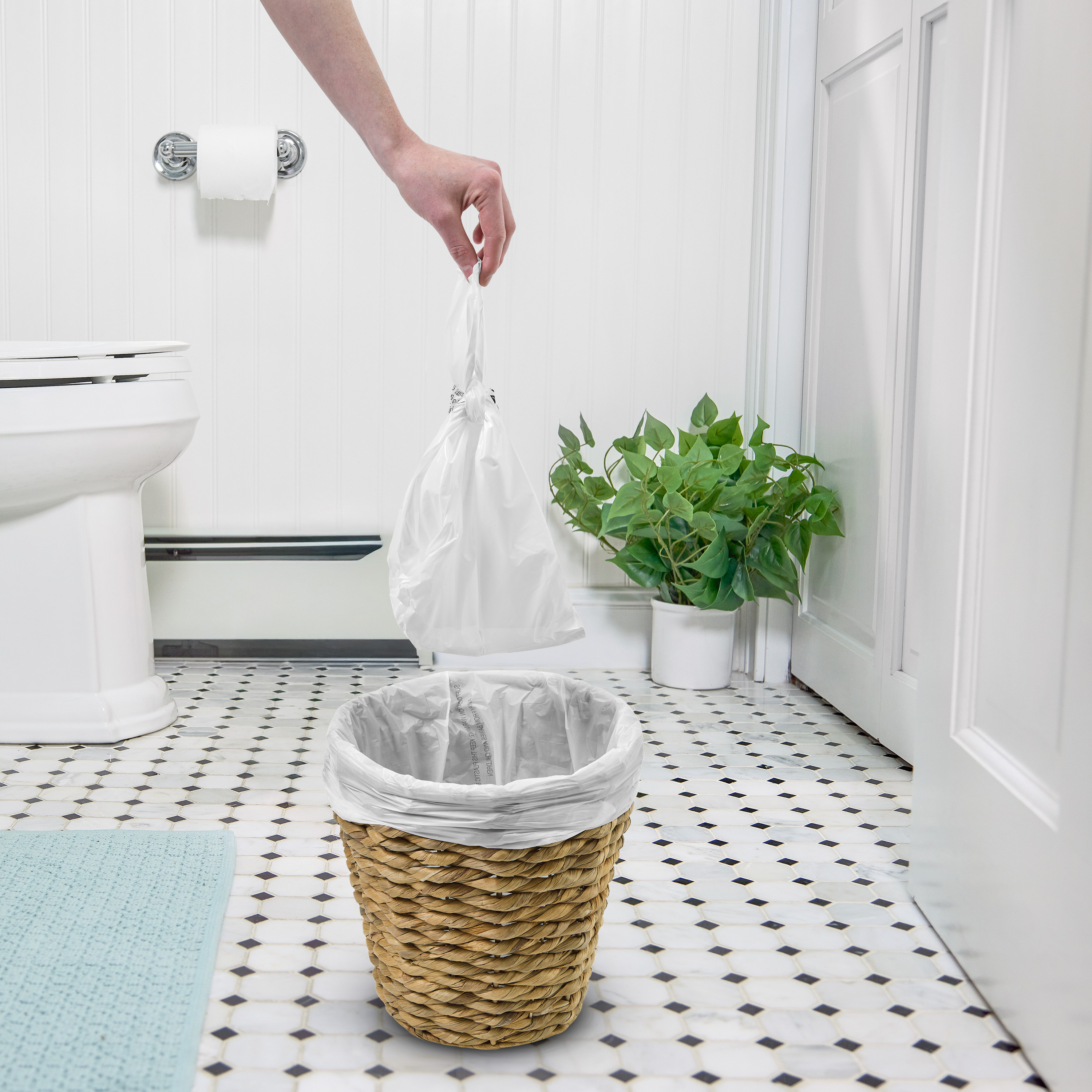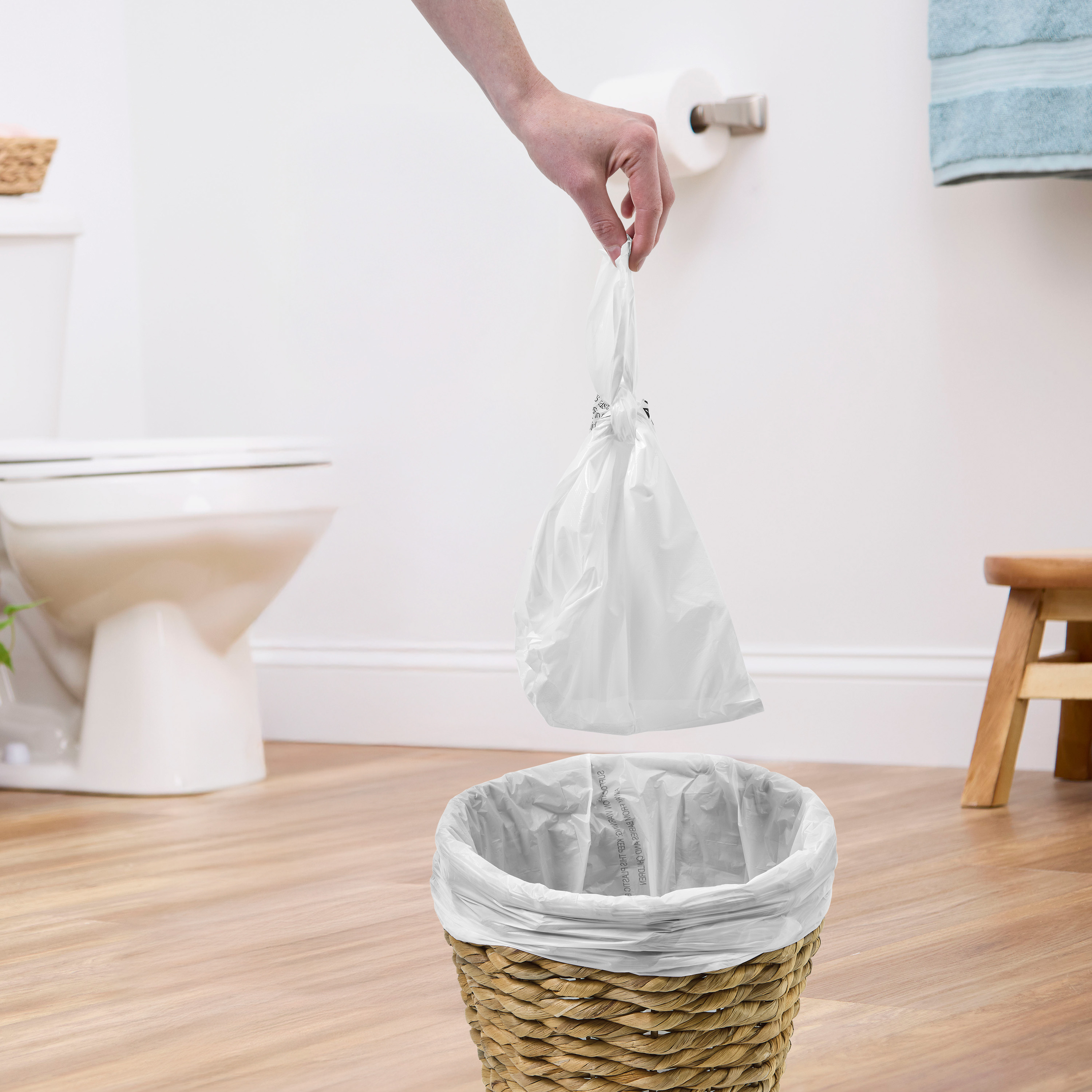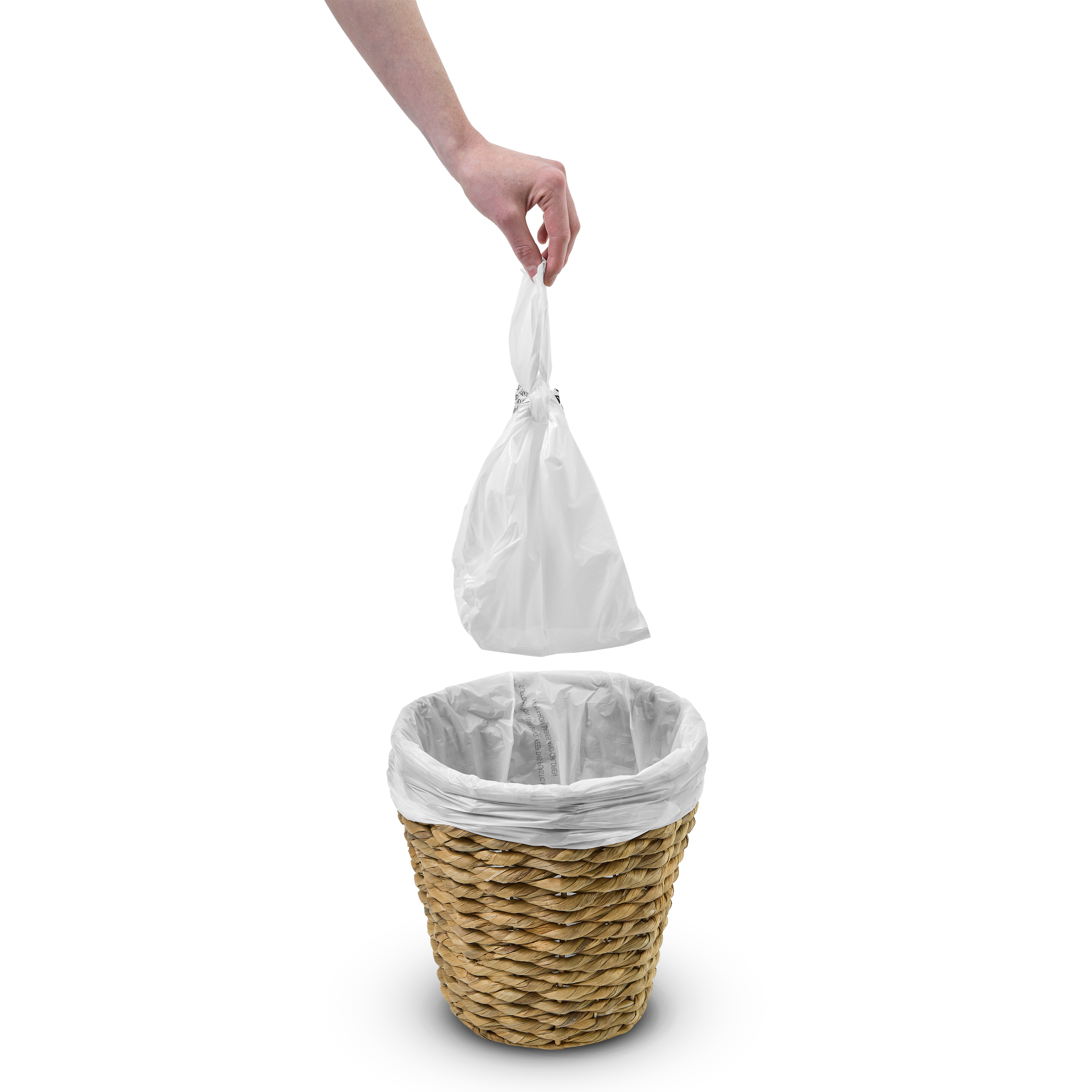 - Las asas fáciles de amarrar permiten desechar todo de manera rápida e higiénica, sin tener que tocar ni vaciar el contenido.