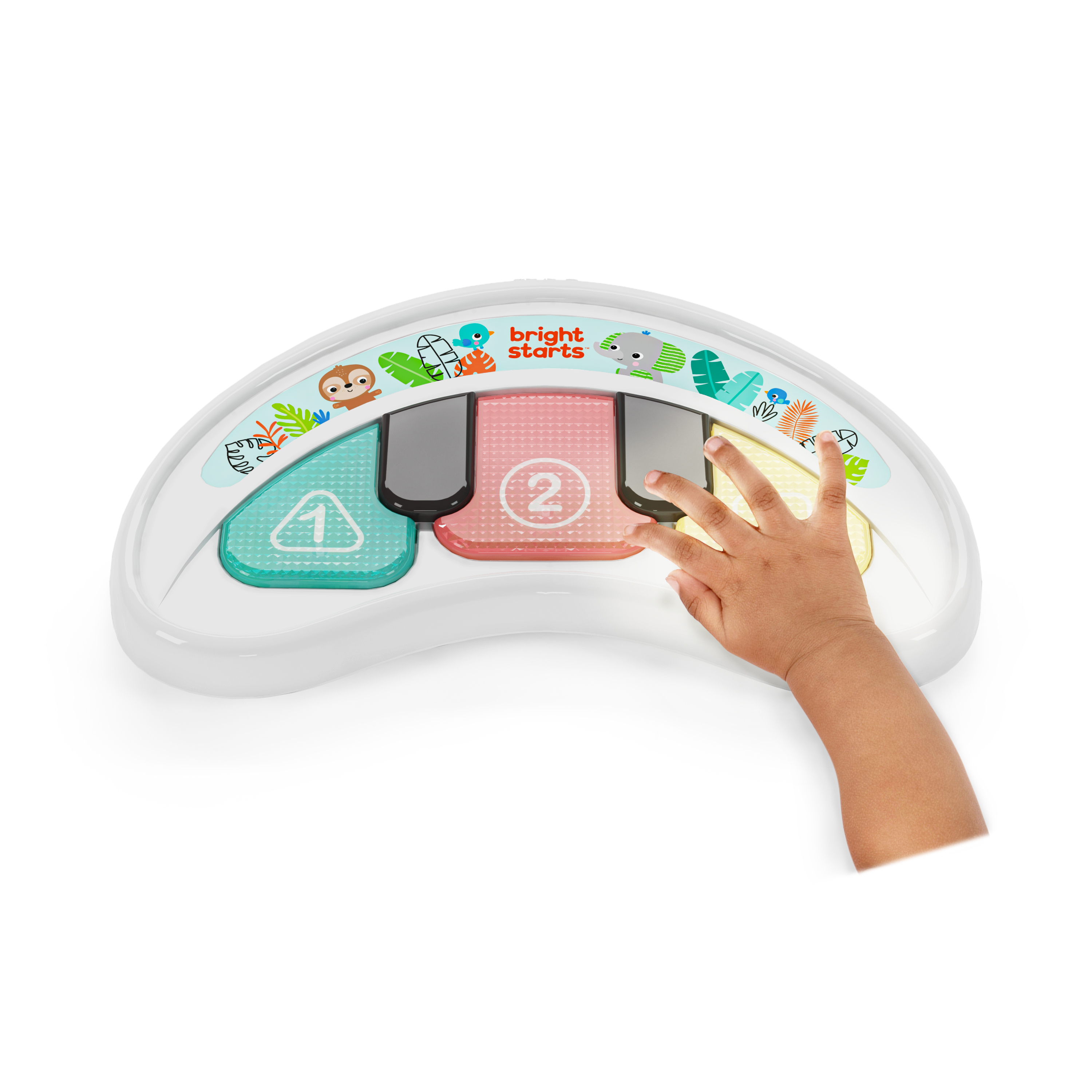 - El entretenimiento en esta andadera con temática de la selva es imparable, con luces, canciones y sonidos; el piano de juguete reproduce sonidos de animales y de la naturaleza, además de música divertida; conecta otros juguetes favoritos con 2 aros que se enlazan.