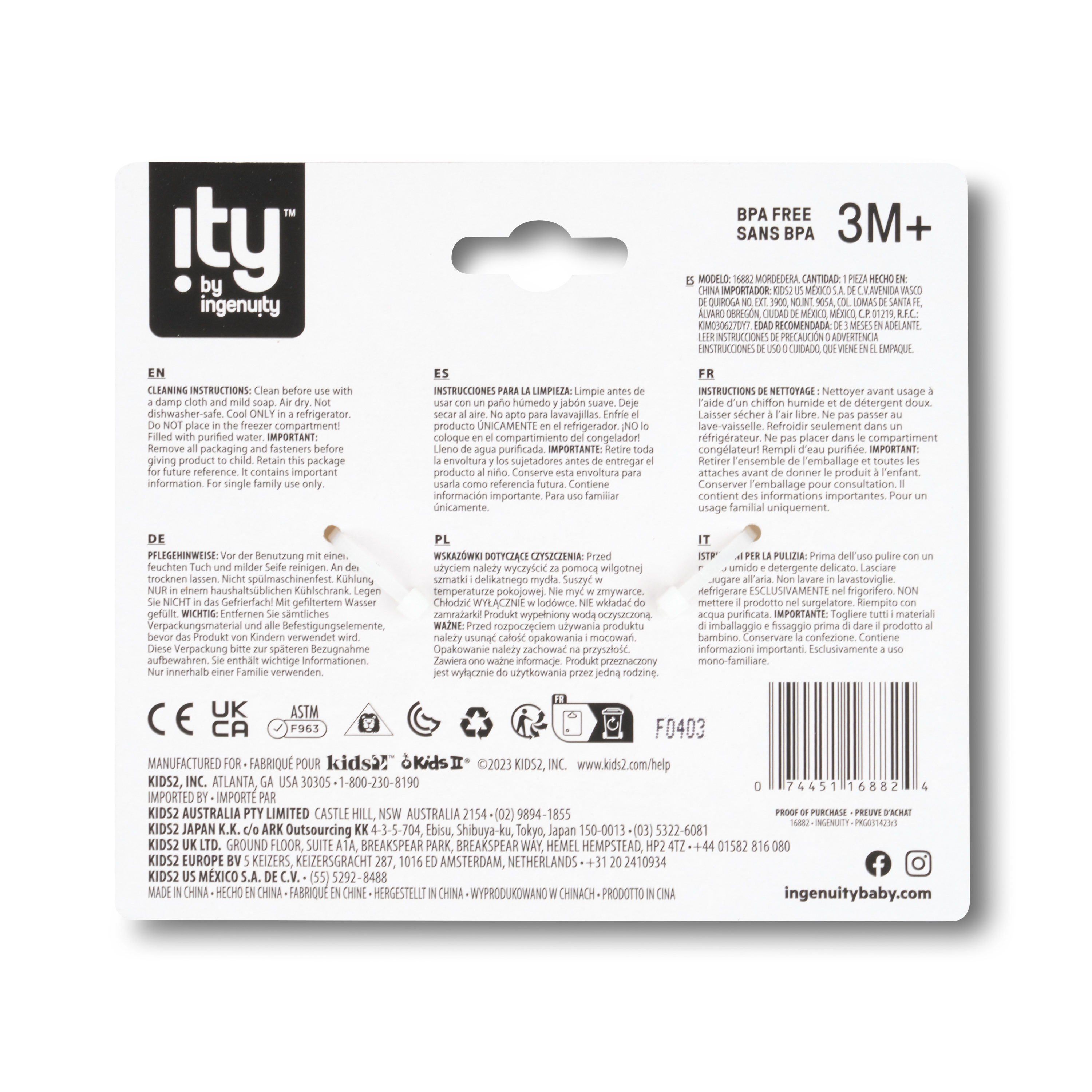 - Esta mordedera forma parte de una colección de divertidos juguetes inspirados en el bosque Ity de Ingenuity y combina a la perfección con los personajes del chupón Cozy Coo, el búho Nally y el abejorro Bomby.