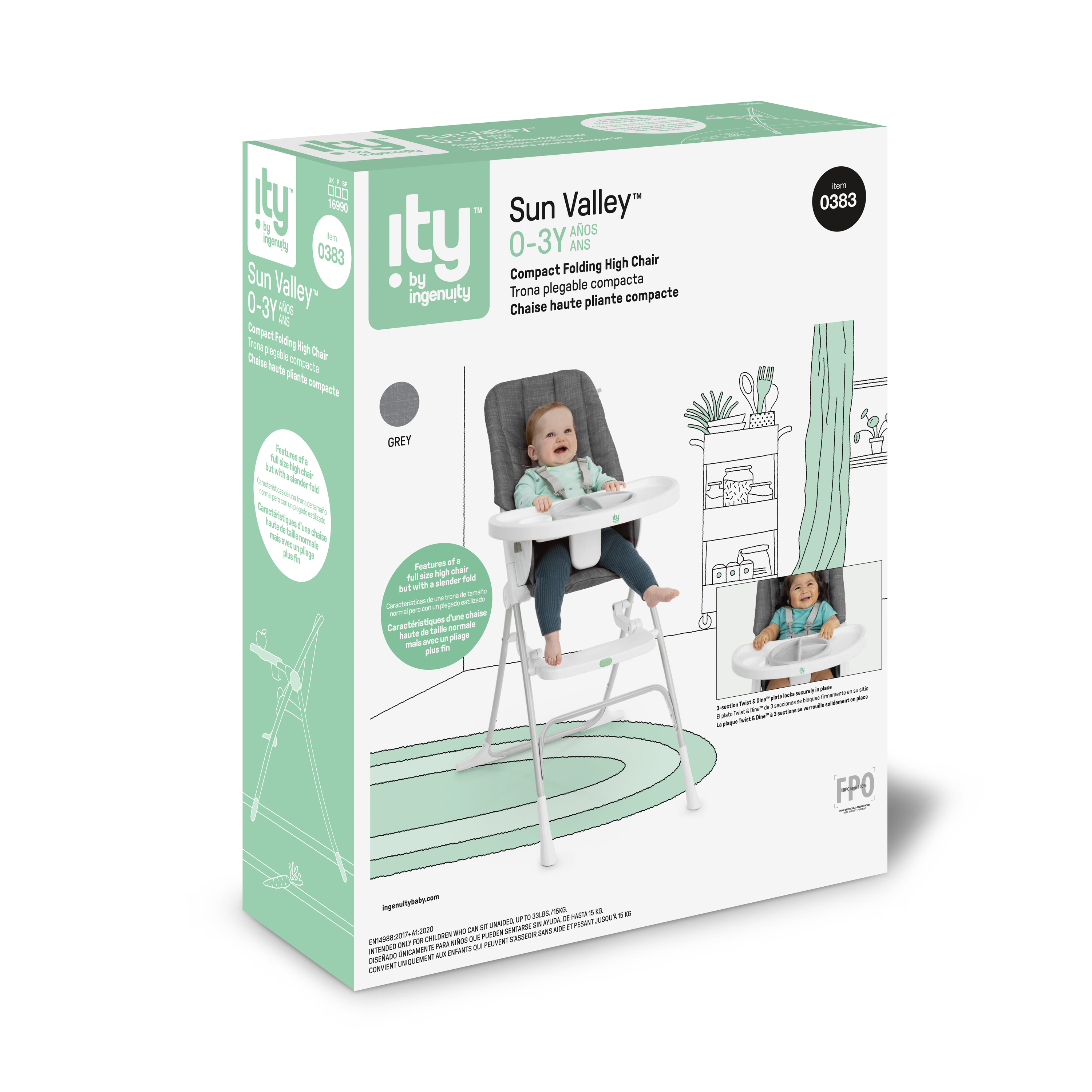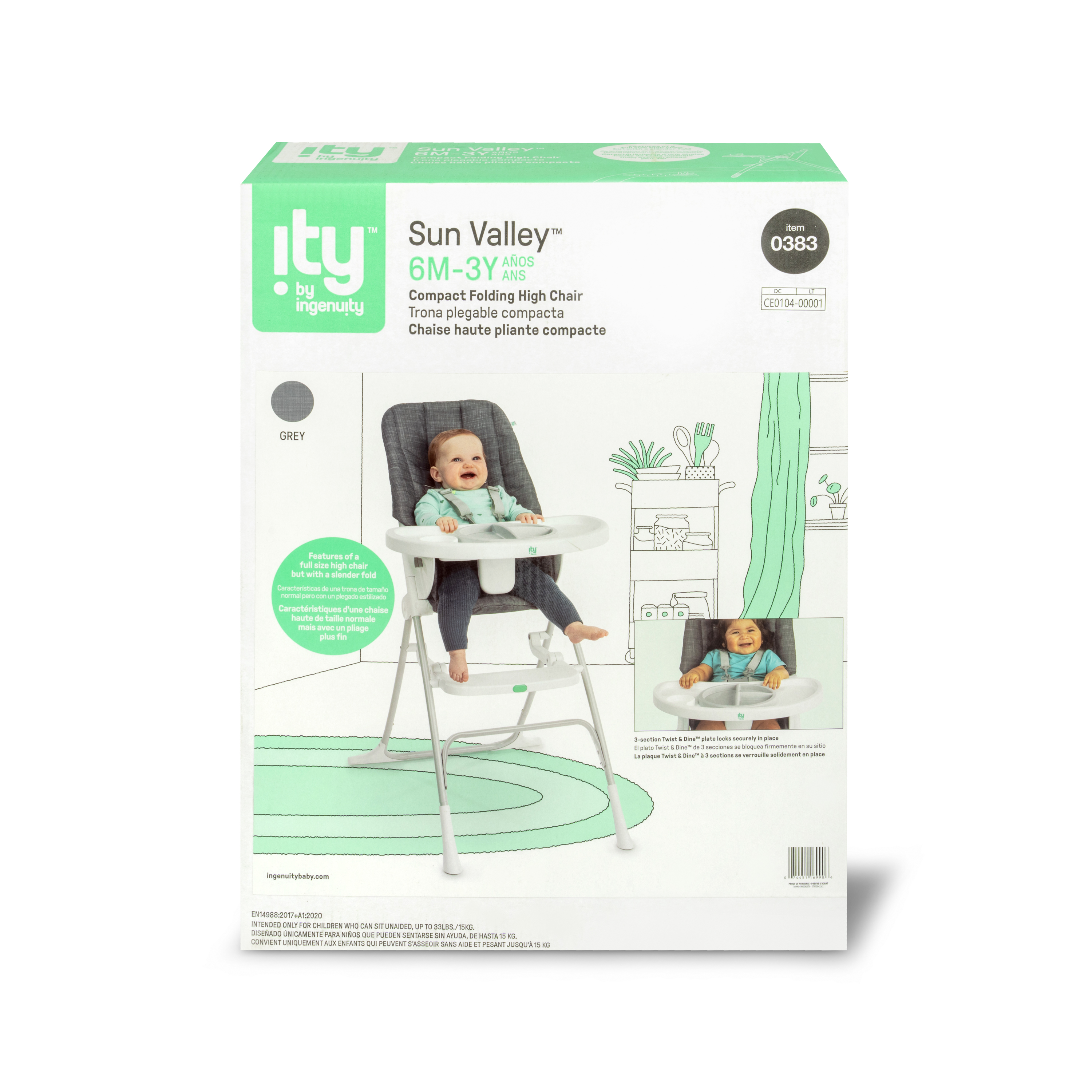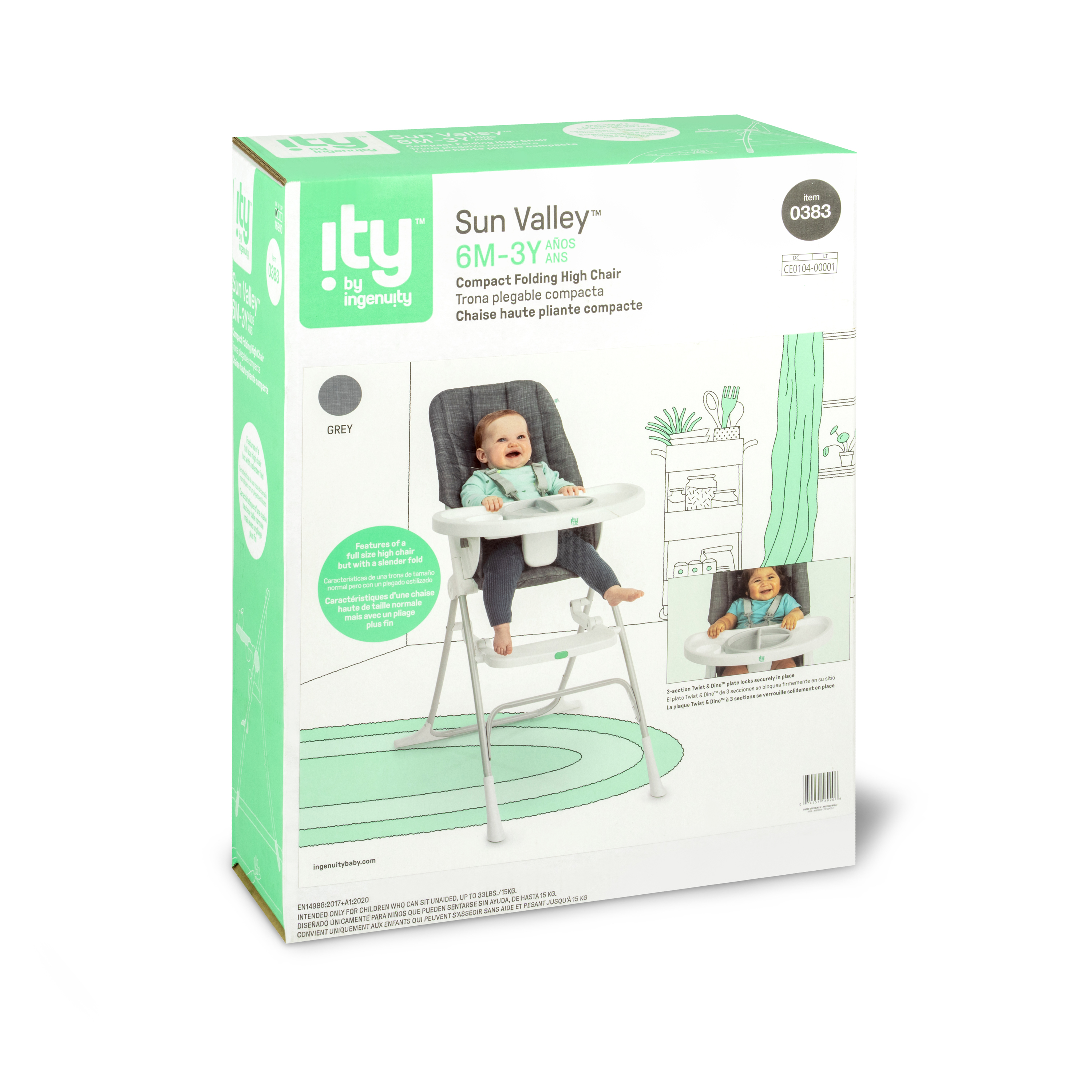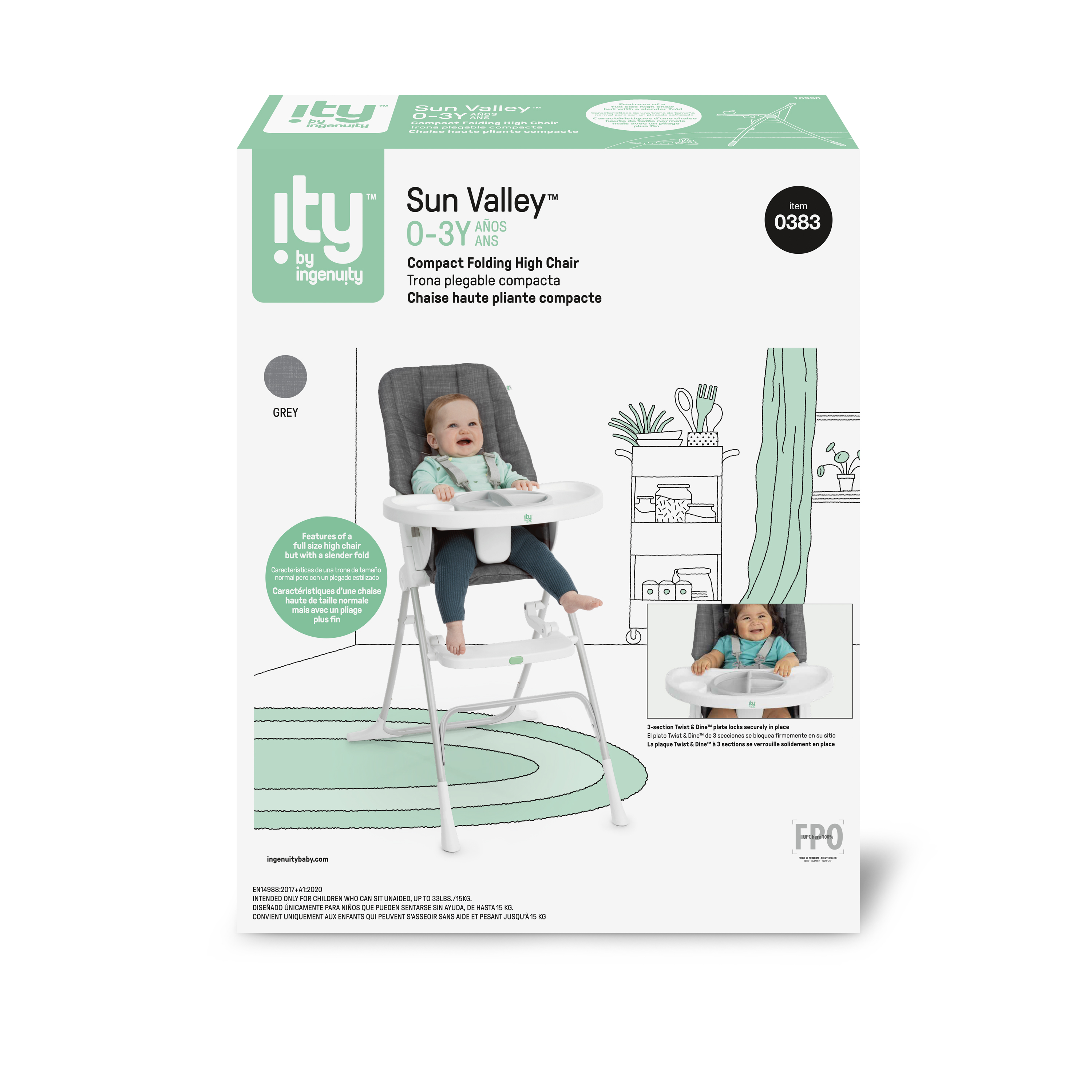 - Cuando el bebé llega al mundo, también lo hacen una serie de artículos esenciales para el pequeño. ¡Ahorra espacio en tu hogar y ofrece al bebé una experiencia excepcional a la hora de comer con la silla alta plegable compacta ity por Ingenuity Sun Valley en gris!