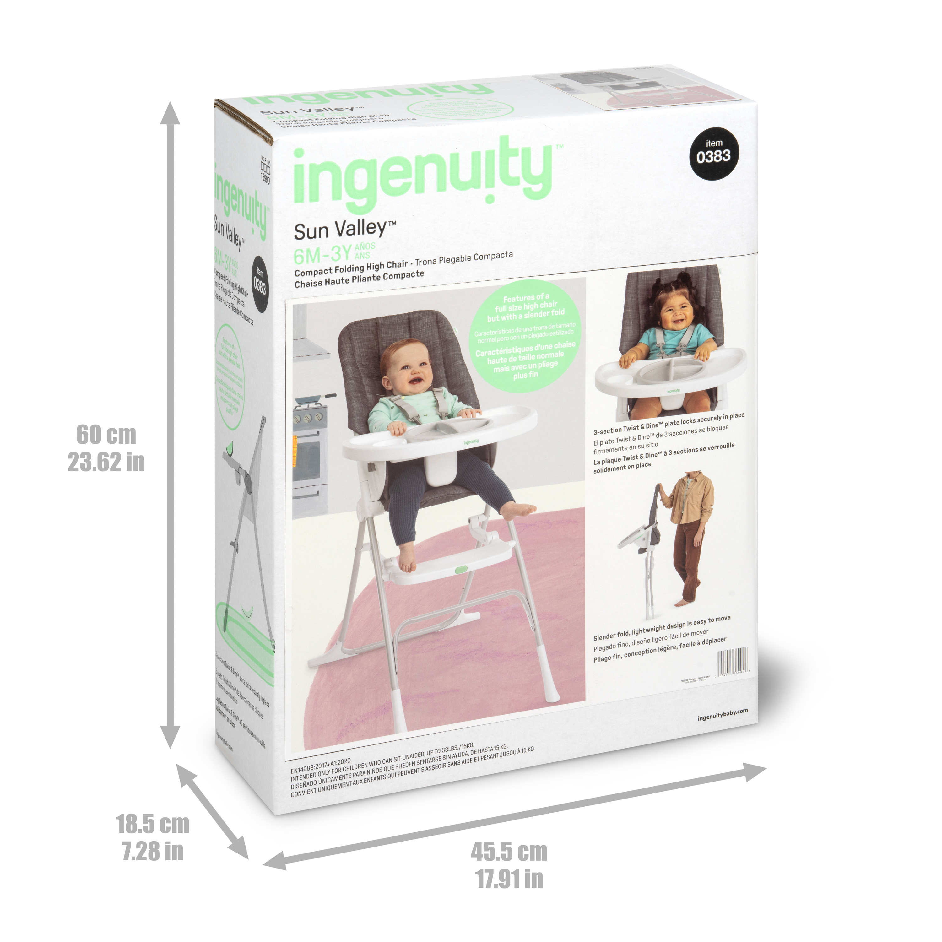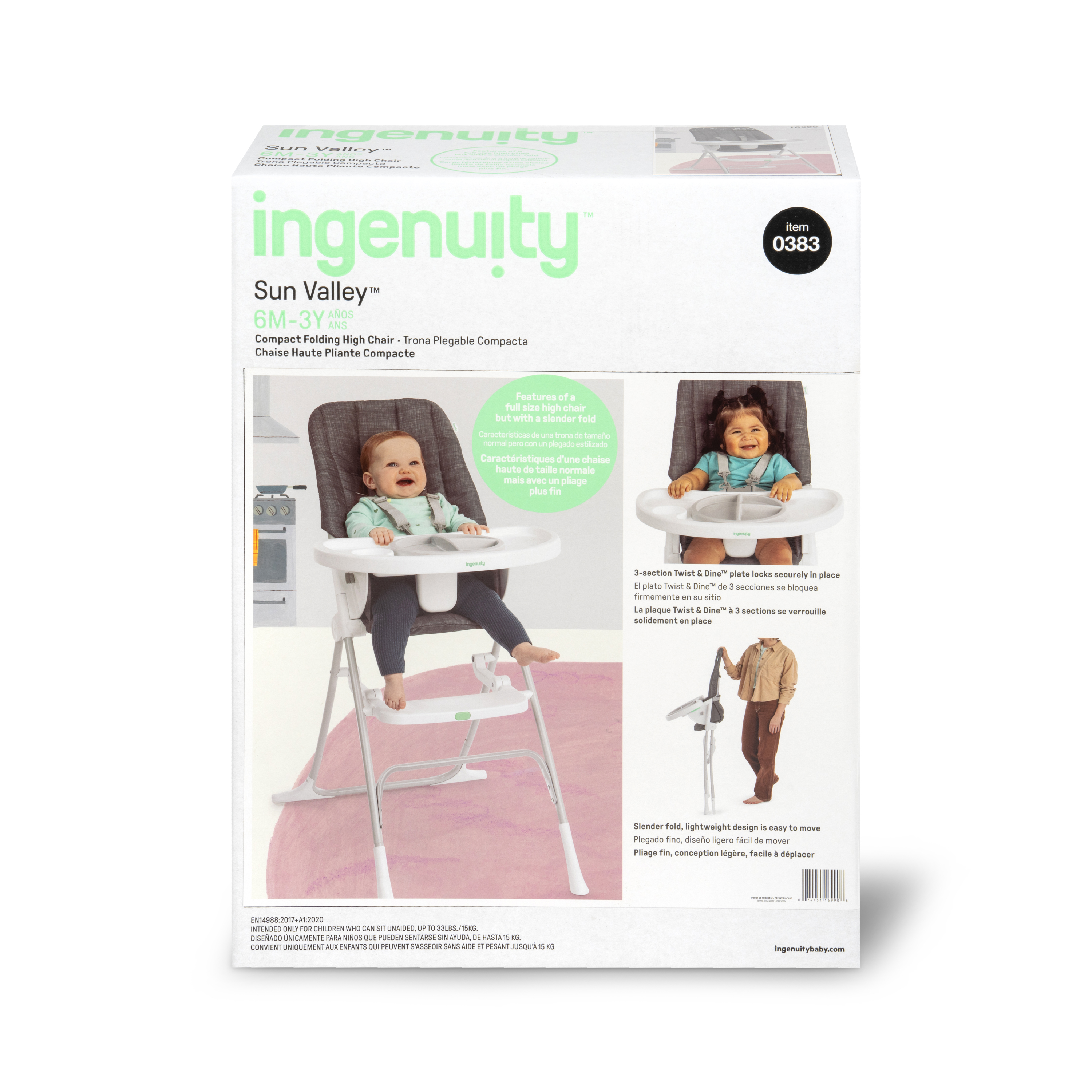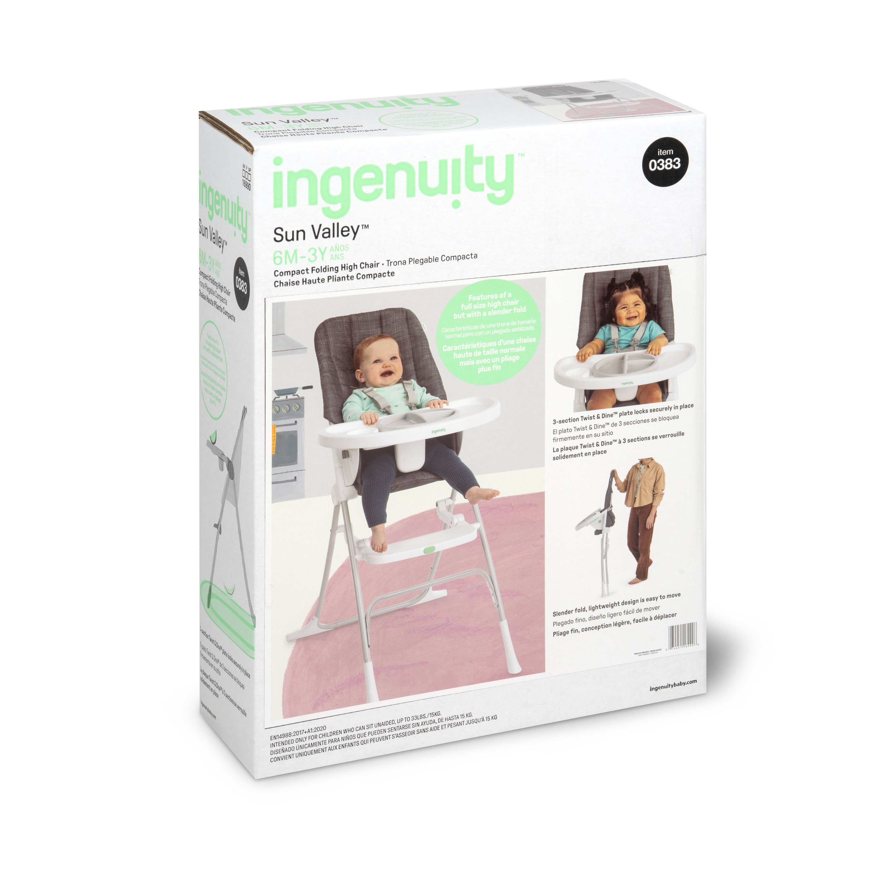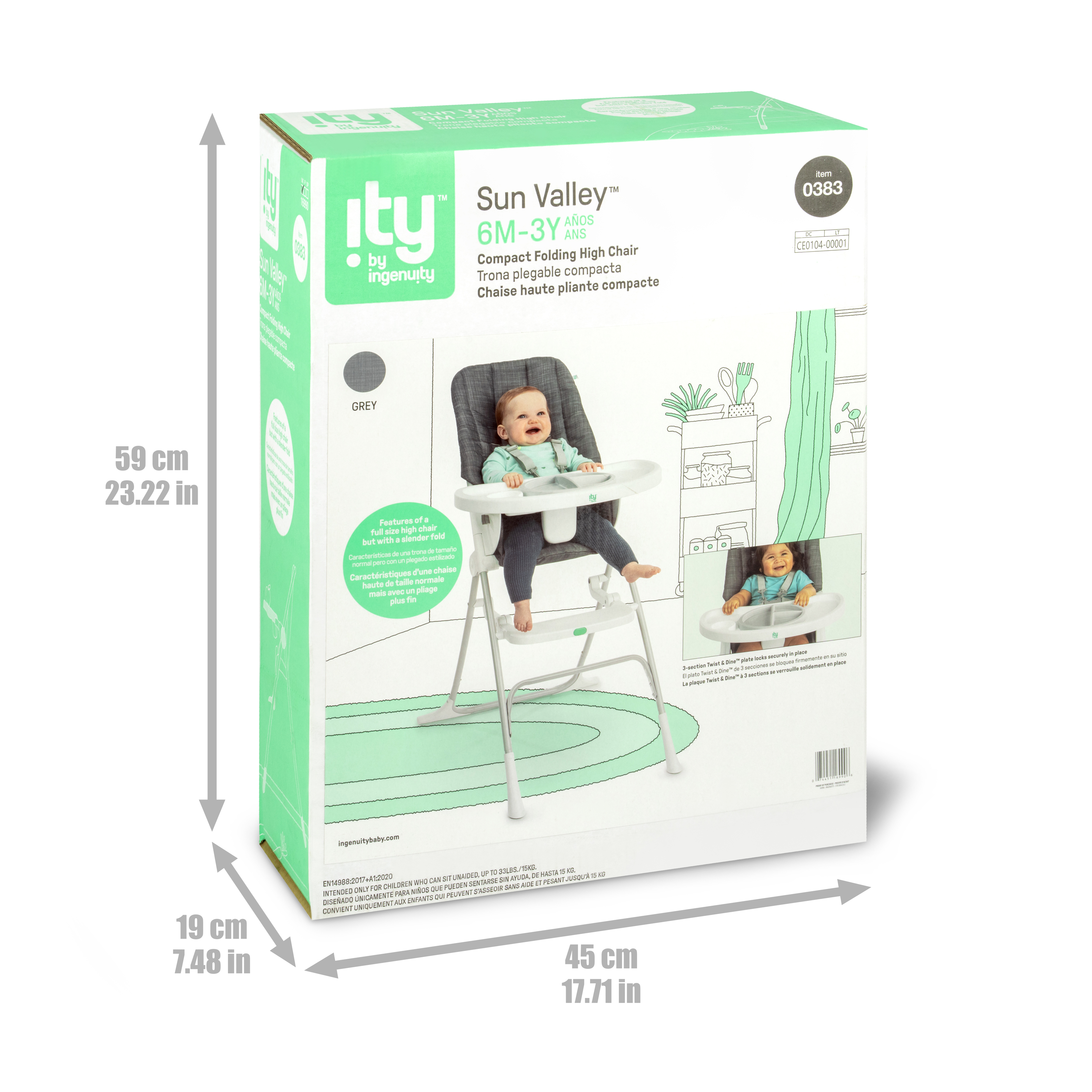 - Cuando el bebé llega al mundo, también lo hacen una serie de artículos esenciales para el pequeño. ¡Ahorra espacio en tu hogar y ofrece al bebé una experiencia excepcional a la hora de comer con la silla alta plegable compacta ity por Ingenuity Sun Valley en gris!