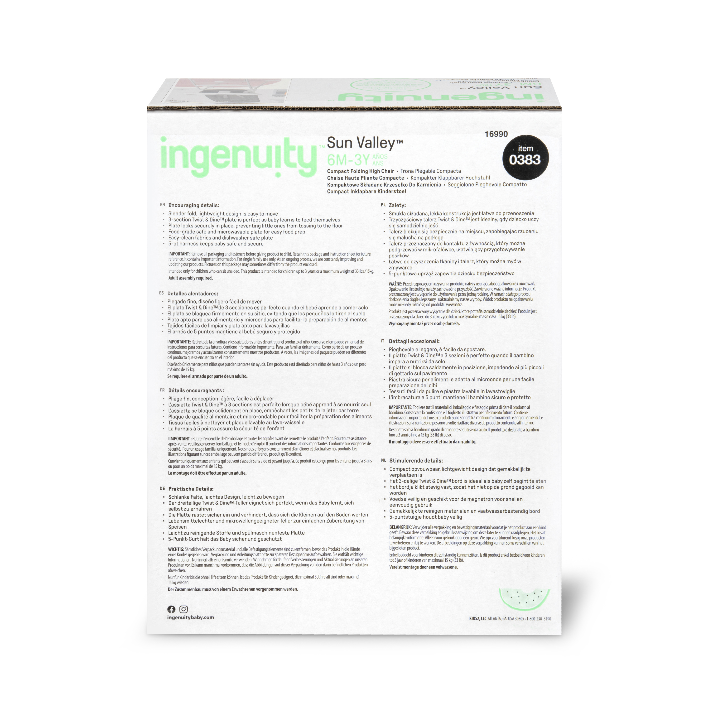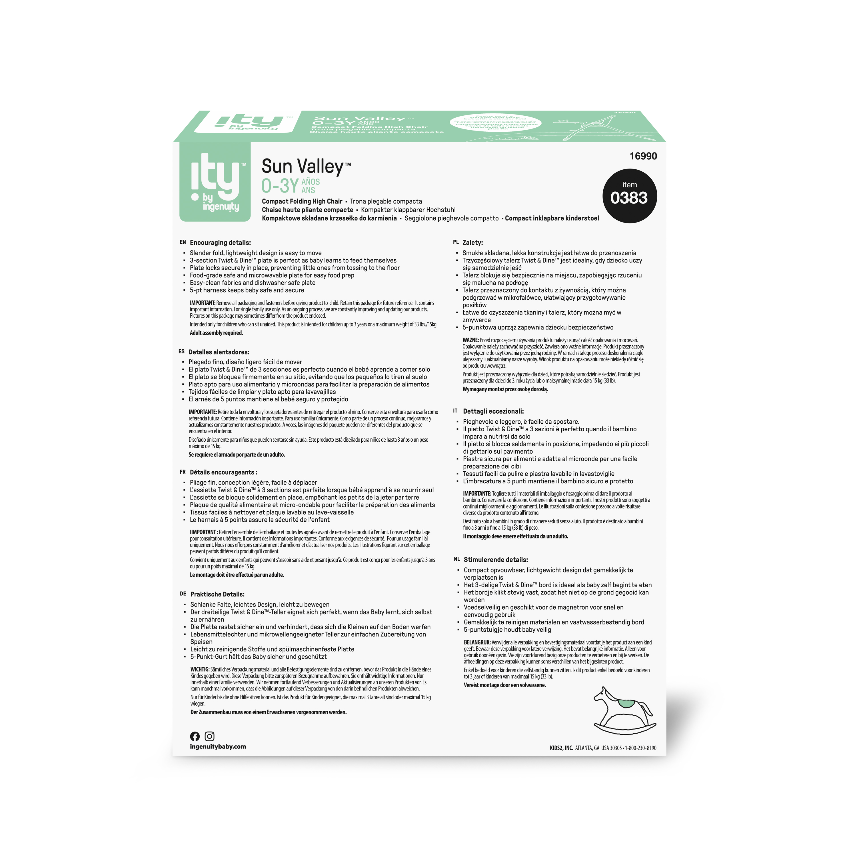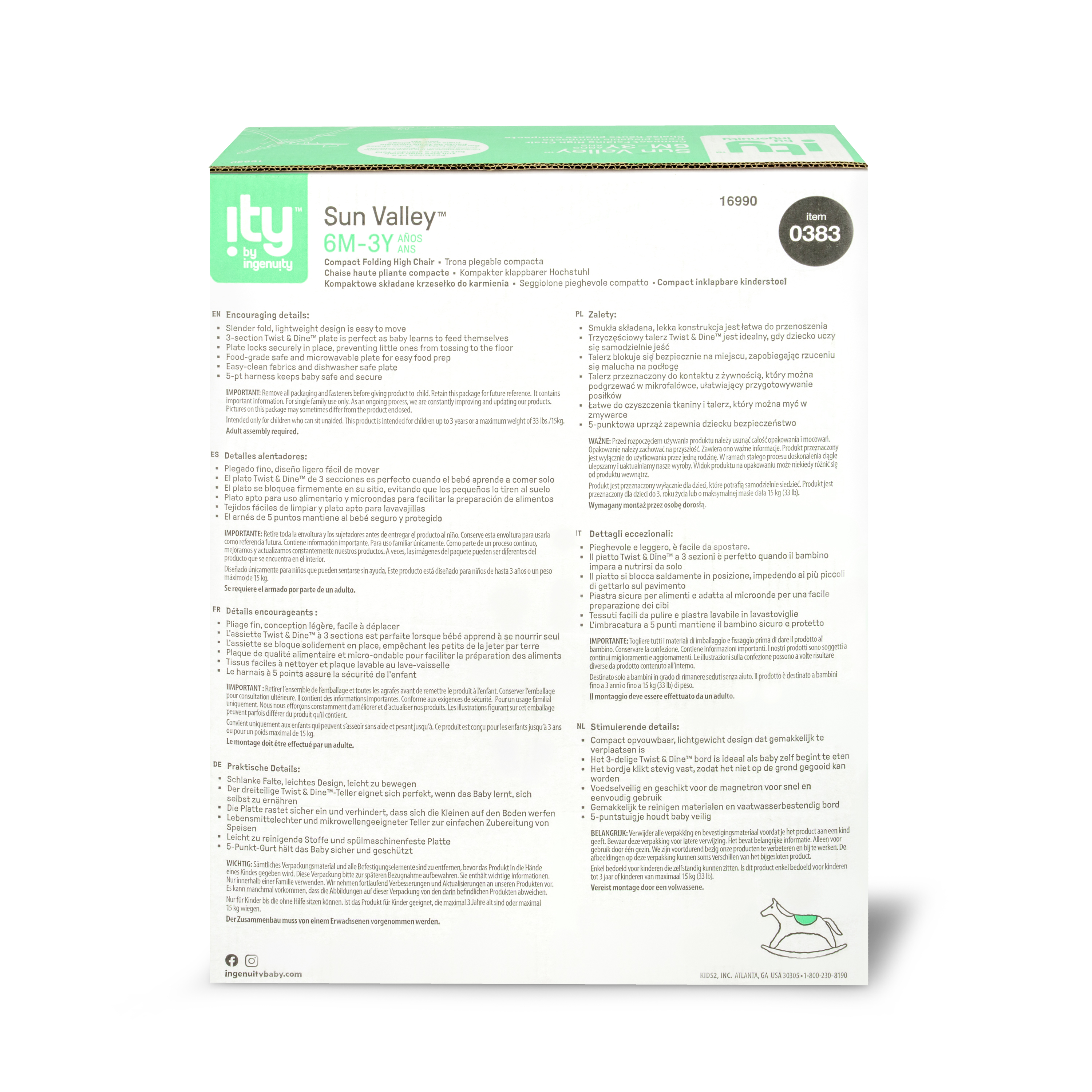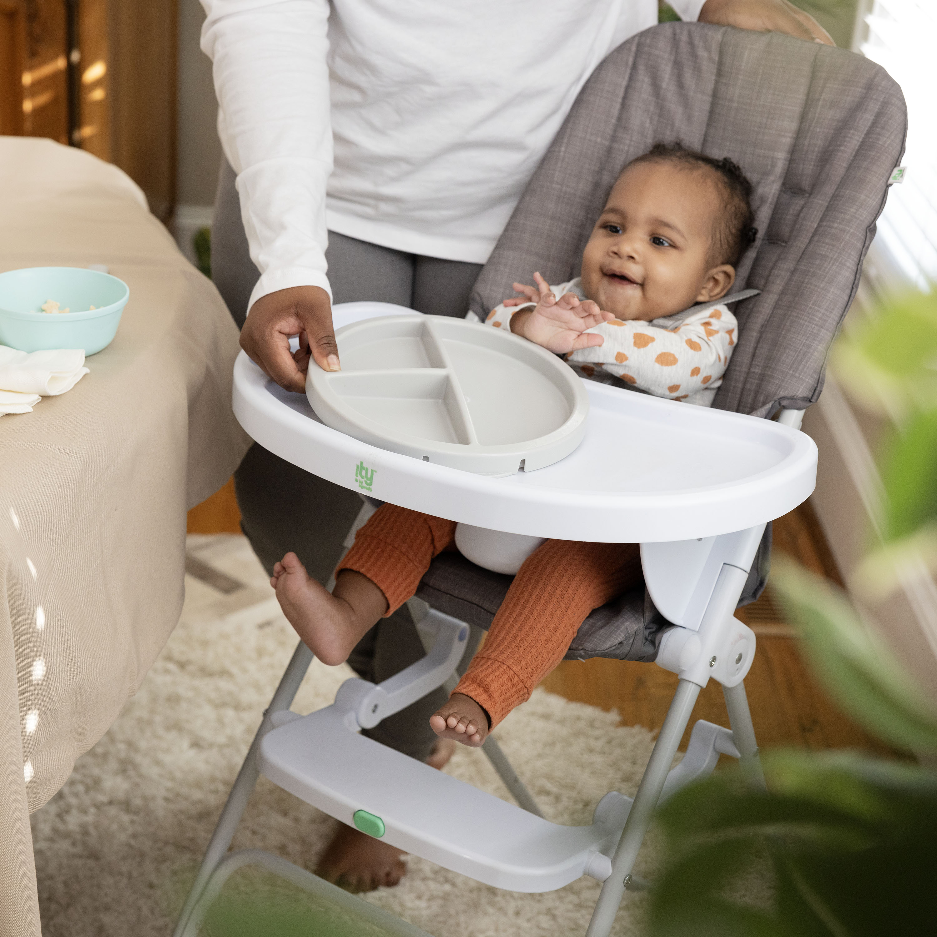 - Cuando el bebé llega al mundo, también lo hacen una serie de artículos esenciales para el pequeño. ¡Ahorra espacio en tu hogar y ofrece al bebé una experiencia excepcional a la hora de comer con la silla alta plegable compacta ity por Ingenuity Sun Valley en gris!