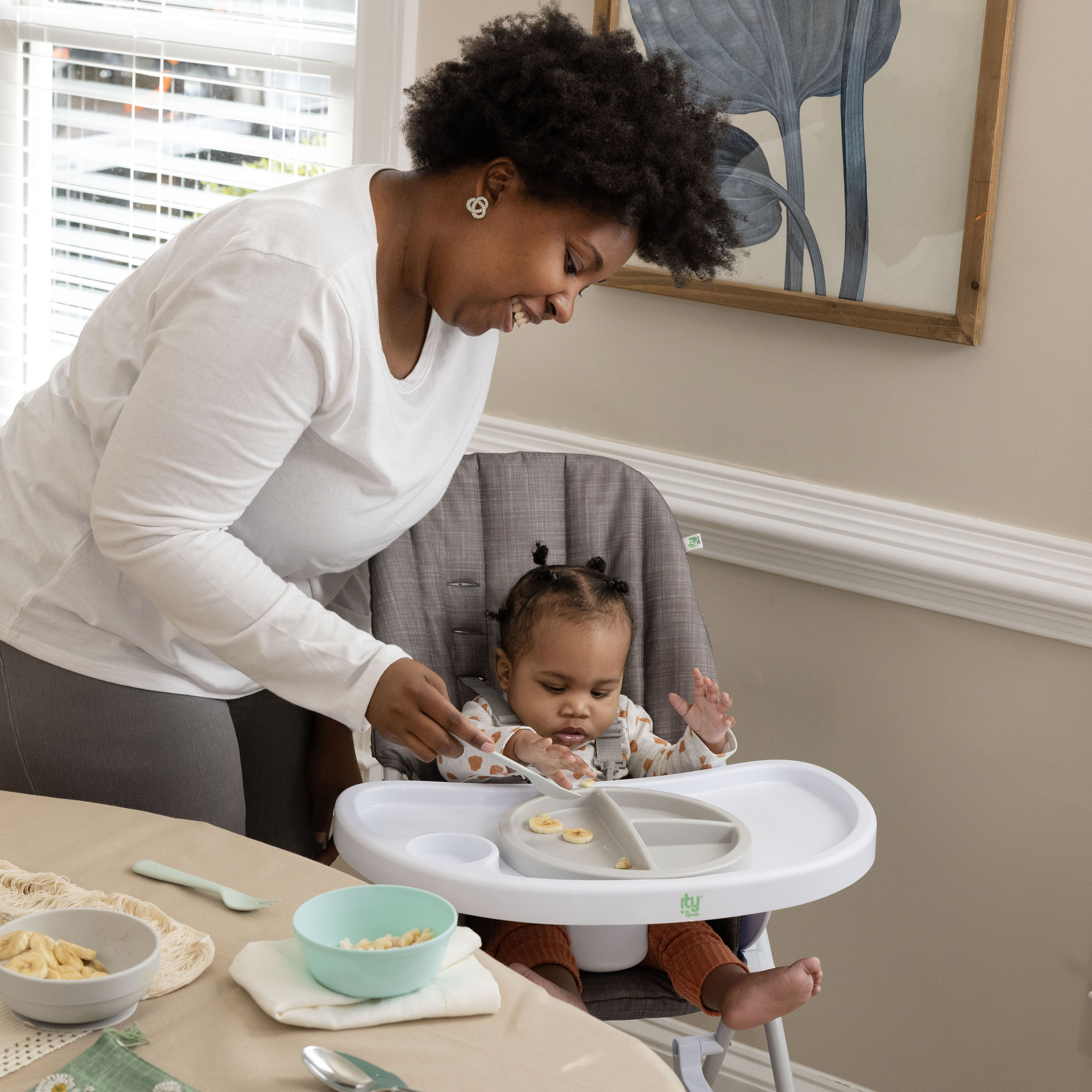 - El exclusivo plato Twist & Dine de 3 secciones es perfecto para que el bebé aprenda a comer de forma independiente, es de grado alimanticio y seguro y se fija firmemente en su sitio, evitando que los más pequeños lo tiren al piso.