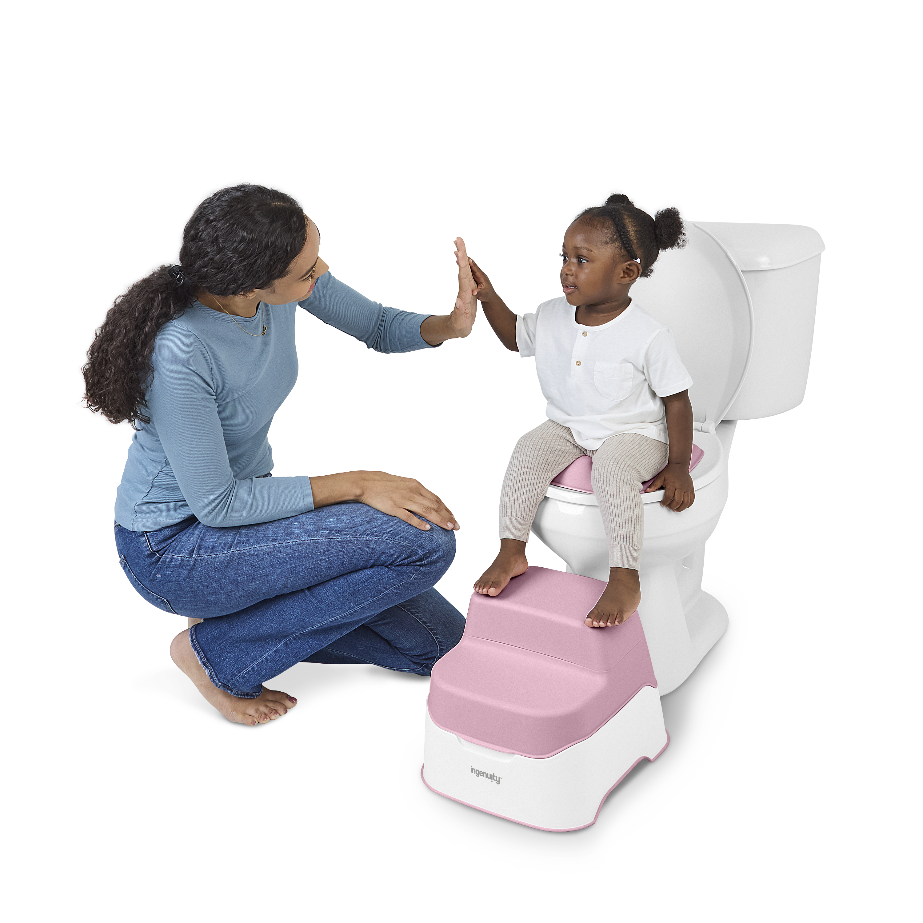 - Observa cómo tu hijo o hija pasa por todas las etapas de aprender a ir al baño con esta bacinica 3 en 1 que pasa de ser una bacinica independiente a una tapa de inodoro para adultos y a un taburete con escalones.