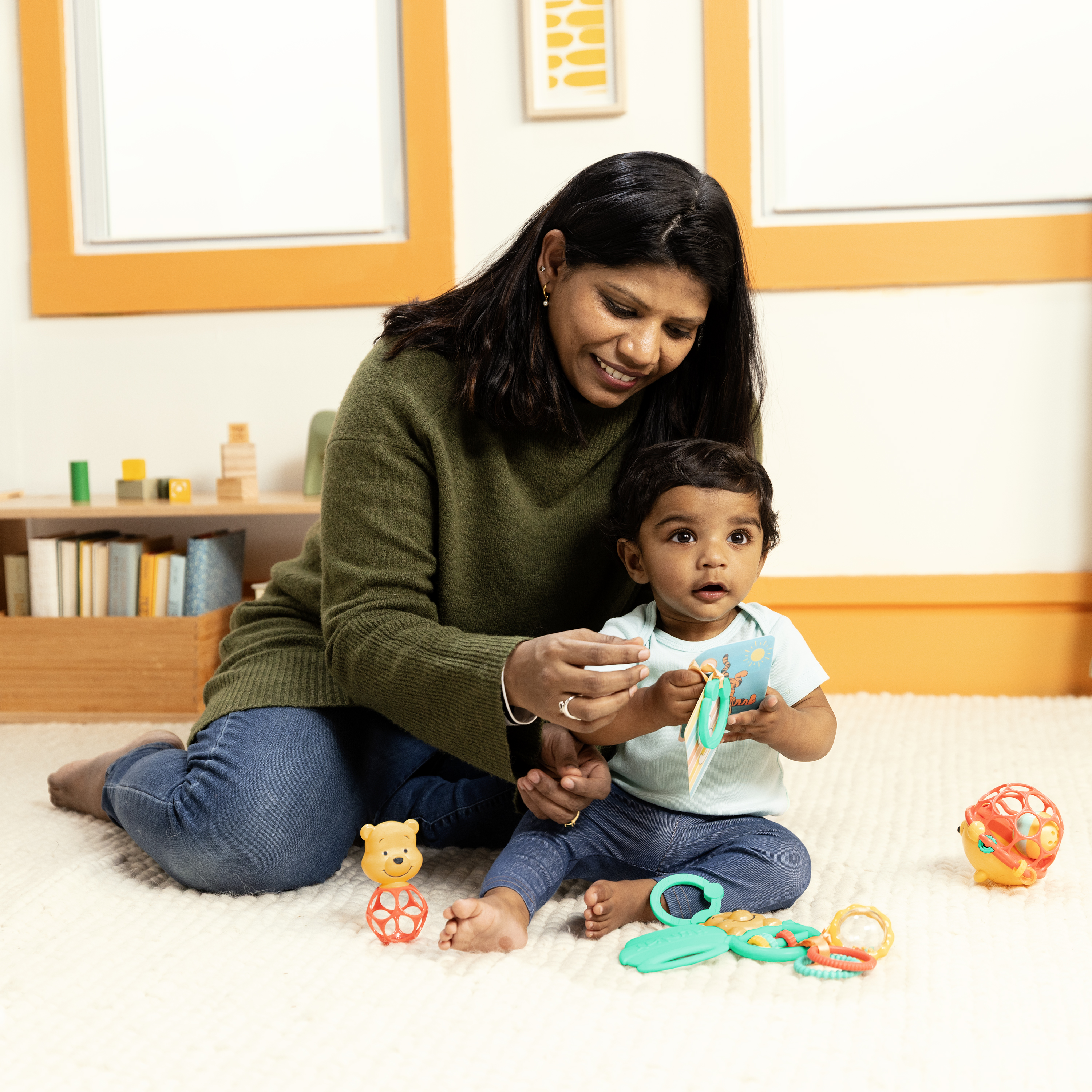 - Gira y desliza las coloridas cuentas, agita la sonaja, toca los anillos con texturas, agarra la pelota flexible Oball, explora las tarjetas didácticas y calma las encías doloridas de forma segura con la mordedera incluido; mantén al bebé entretenido mientras juega y explora.